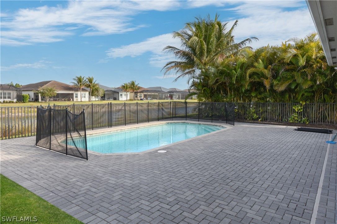 An exceptional Cabernet model elevated 22 feet above sea level — no flood insurance required — offering rare, high-end upgrades and refined indoor-outdoor living that set it apart from the rest. Enhanced beyond builder standards, this home features high-impact glass windows, double glass entry doors, upgraded tile flooring in the den and all bedrooms, and added designer lighting. The chef’s kitchen is a true centerpiece with a dramatic 4’ x 10’ island, upgraded cabinetry with interior and under-cabinet lighting, custom coffee station, wet bar, designer backsplash, gas stove, upgraded wine fridge and oven, plus a new refrigerator (2026). The spa-inspired primary bath showcases ceiling-height tile, mirrors to the ceiling, and frosted privacy glass for a sleek, modern finish. Outdoors, the property becomes extraordinary — a saltwater pool with gas heater and auto water leveling, expanded entertaining patio, extended fencing, custom retaining wall for added flood protection, enhanced landscape lighting, and gas-ready BBQ area. A dedicated garage outlet for golf cart charging adds further convenience. Offered fully furnished (excluding select personal items), this is a rare turnkey opportunity in a community featuring a 45,000 sq. ft. clubhouse and the 5-star restaurant, The Oasis. Elevated. Upgraded. Truly one of a kind.