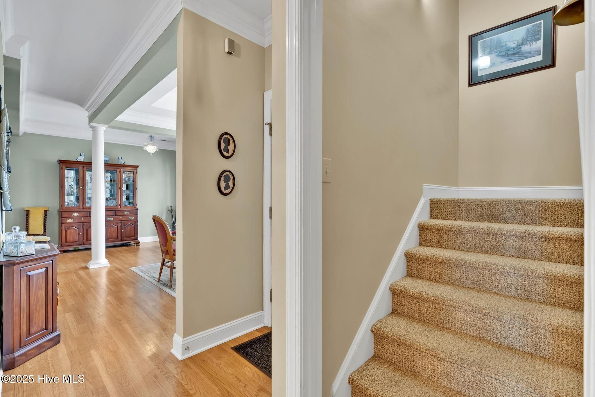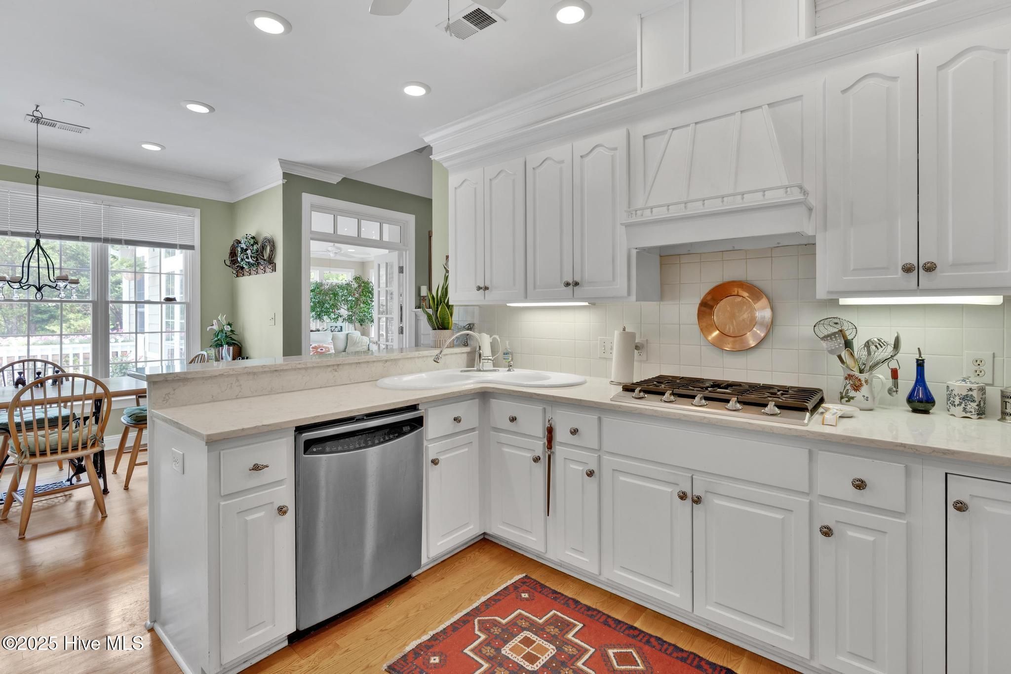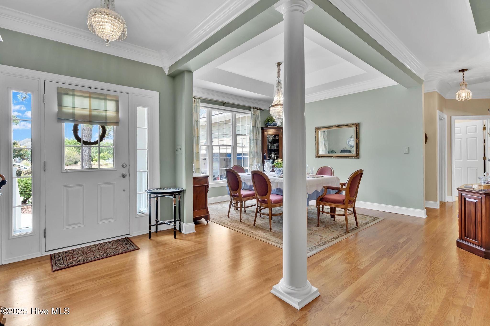 PRICE REDUCED! Discover exceptional value at 2856 Trailwood Drive—an elegant 4-bedroom, 3-bath home nestled in the amenity-rich, gated community of St. James Plantation. This beautifully maintained residence offers timeless curb appeal with manicured landscaping, mature trees, and a welcoming front porch. Inside, you'll find a spacious, light-filled layout featuring hardwood floors, crown molding, tray ceilings, and decorative columns. The formal dining room sets the stage for memorable gatherings, while the recently updated kitchen showcases Viatera Quartz countertops, a 5-burner gourmet gas cooktop, stainless appliances including a combo microwave and self-cleaning oven, crisp white cabinetry, and abundant storage. Natural light pours into the cheerful breakfast nook overlooking the landscaped backyard. A sunroom with beadboard ceiling and walls of windows opens to the back deck—ideal for al fresco dining or quiet mornings surrounded by nature. The vaulted living room centers around a see-through gas fireplace shared with the sunroom. The primary suite offers deck access, a large walk-in closet, and a spa-like ensuite. A finished room over the garage serves as a private fourth bedroom with full bath. On an oversized lot, this Certified Wildlife Habitat features a charming English garden attracting butterflies and bluebirds. The built-in gas line provides effortless grilling, and the oversized garage offers extra storage. As an extra bonus, the entire crawl space was recently cleaned out with all new encapsulation (see photo). Enjoy St. James' world-class amenities: four golf clubhouses, 81 holes of golf, tennis, pickleball, indoor and outdoor pools, fitness centers, marina, and the private Oak Island Beach Club. This home is a short walk to the marina, and its popular restaurant is open for breakfast, lunch, and dinner. With its reduced price, this home offers an unbeatable opportunity to enjoy the perfect blend of comfort, elegance, and coastal living.