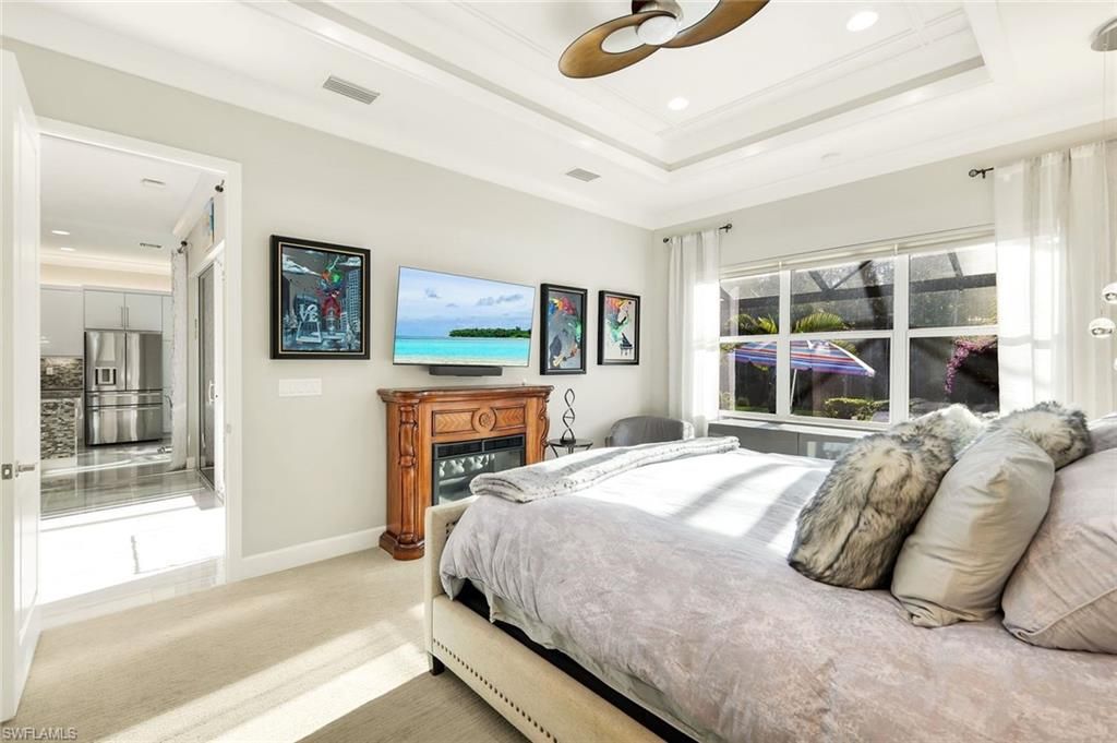 If you’ve been searching for the perfect place to call home, look no further! Thisstunning home perfectly blends comfort, style, and functionality. From the momentyou step inside, you’ll appreciate the thoughtful layout of this popular Cabernetfloor plan. Enter to the abundant natural light and quality finishes throughout.Whether you’re relaxing in the inviting living spaces or enjoying the gorgeousresort-style pool area this home is a show stopper. The outdoor area is plentifulwith outdoor living space, a fantastic outdoor summer kitchen with grill, griddle,vented hood, refrigerator, and Italian tile. This home and outdoor area are designedfor both everyday living and entertaining. The heated saltwater pool and spa issurrounded by a cool-to-the-touch shell stone tile pool deck. The backyard is lushand features elegant lighting, an outdoor shower. The Ideally located home sports aprivate wooded view and lush lawn. The open and airy floor features 3 bedrooms, aspacious den, 2 full baths and a meticulous 3 car garage sporting epoxy floors,insulated doors and ceiling, overhead storage, mini split A/C, electric bike lift, and a240V EV charger. There are numerous fine appointments such as customlandscaping and outdoor lighting, an extended paver driveway and widenedsidewalk. You will step into Level 7 porcelain tile through main areas, customlighting, wallpapered feature walls, mirrors, sconces, tailored window treatments,and a Sonos whole-home sound system. The kitchen takes it to another levelfeaturing Level 7 cabinetry, quartz countertops, upgraded Profile stainless steelappliances, a large island with breakfast bar, under- and upper-cabinet lighting.Enjoy your mornings next to the coffee bar sitting at your breakfast nook and yourlovely outdoor view. There is a formal dining area perfect for gatherings with friendsand family. The Master suite offers plenty of space, his and hers closets with built-ins. Your bath is complete with a lovely tiled walk-in shower w/dual shower headsone being an upgraded rain shower, dual sinks and a private water closet. Withabout $300,000 in custom upgrades, this home offers peace of mind with impact-resistant windows, accordion and electric roll-down shutters, tinted windows, aKohler whole-house generator, solar panels, and a whole-house water filtrationsystem. Valencia Bonita is an active 55+ community offering resort-style amenitiesan incredible clubhouse with restaurant, pools, fitness center, pickleball and tenniscourts. Social events, activities, art classes and other club activities. Thismeticulously maintained property is truly move-in ready and waiting for you to call home.