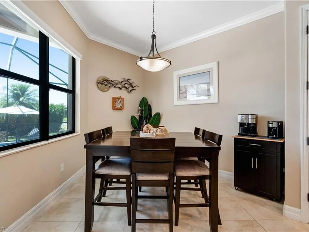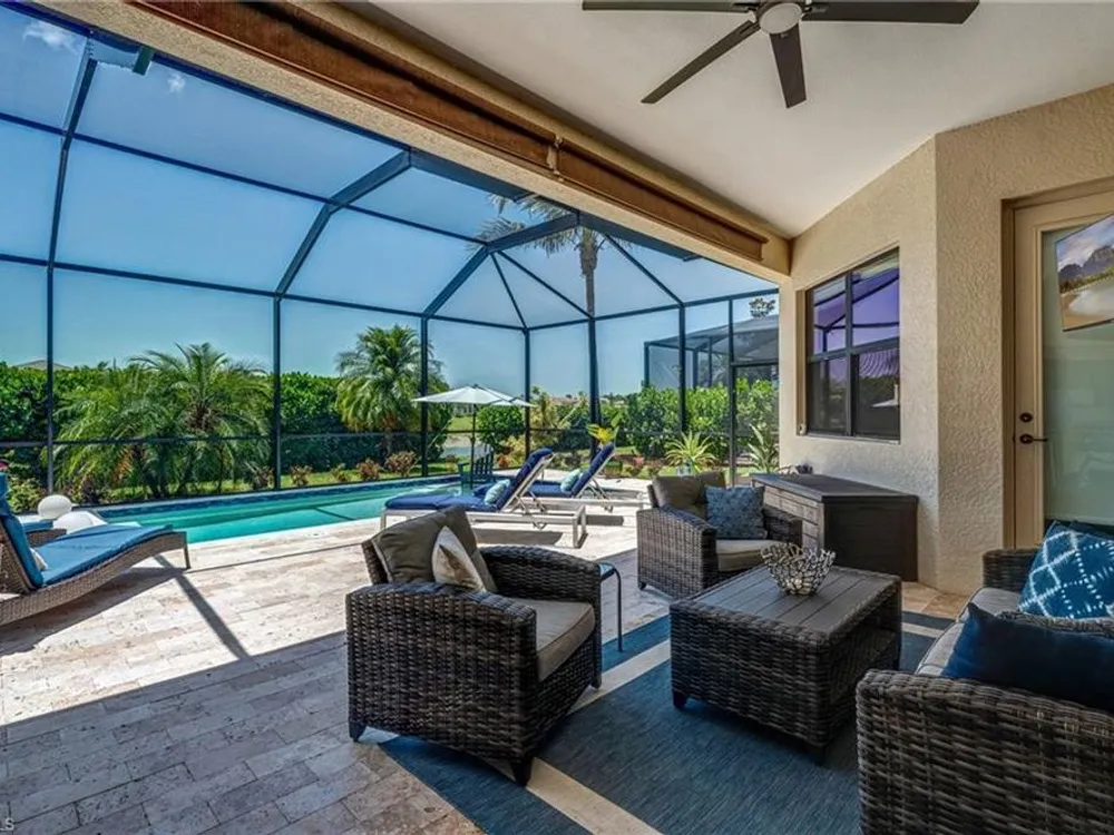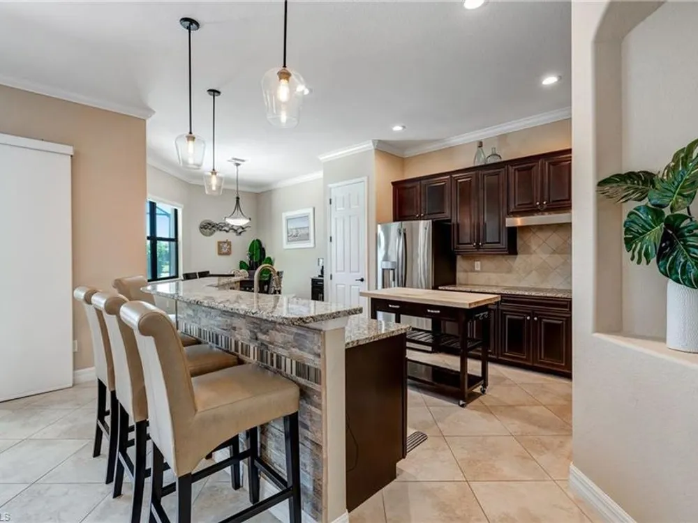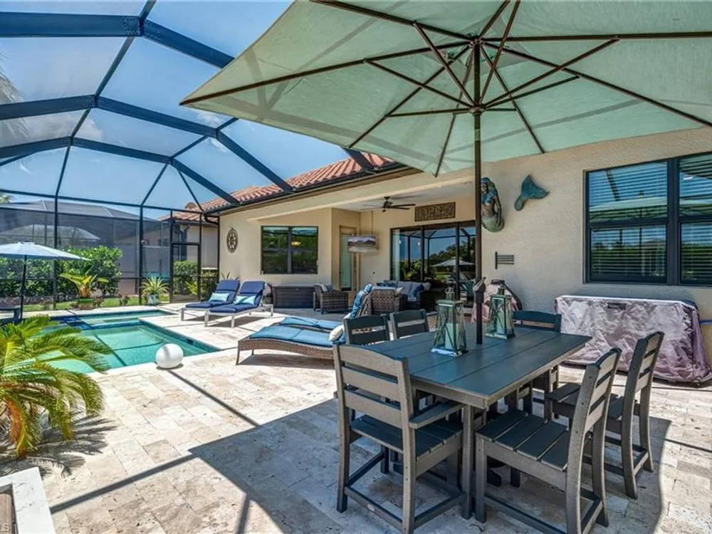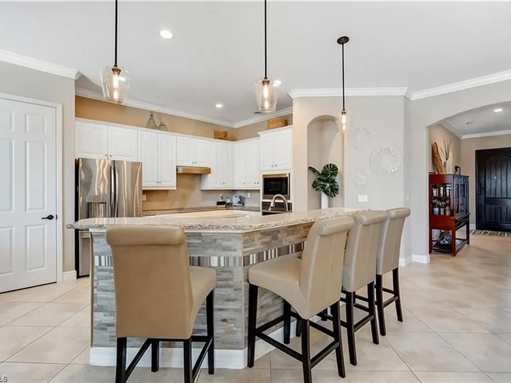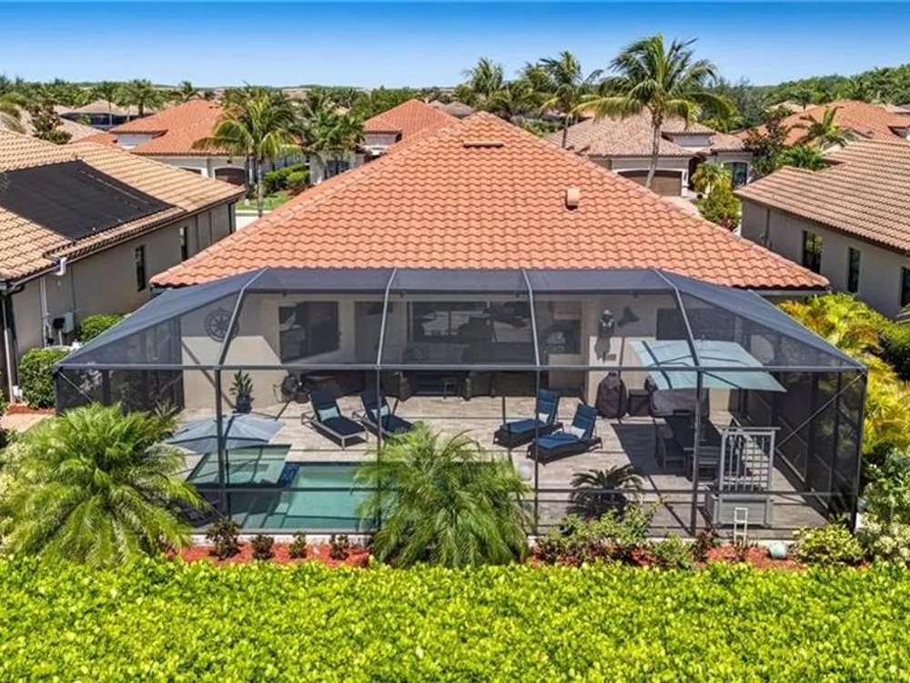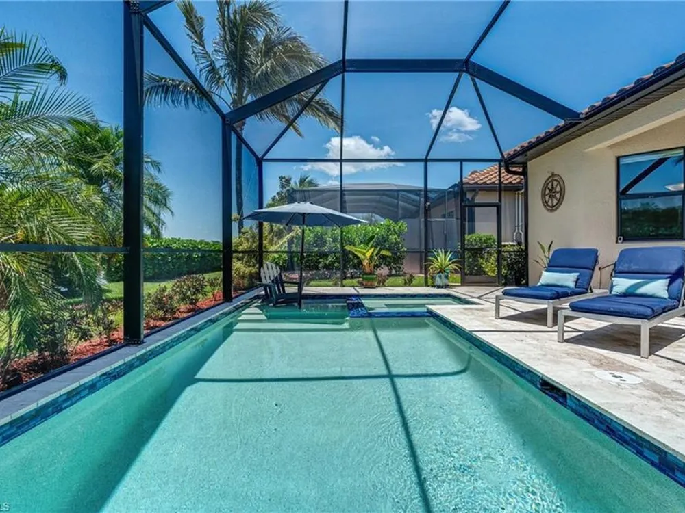 GOLF MEMBERSHIP INCLUDED! Now offered fully furnished, this beautifully appointed 4-bedroom, 2-bath single-family Princeton model features a spacious 3-car garage and comes with bundled golf, giving you full access to the Gordon Lewis designed golf course and resort-style amenities. A modern kitchen with freshly painted white cabinets feels crisp and inviting, with the clean lines and bright finish instantly opening up the space. Featuring crown molding, coffered ceilings, impact windows, and plantation shutters and Brand NEW AC installed Sept 2025. Step outside to your private outdoor retreat, complete with a custom sparkling pool, sunken relaxing hot tub, upgraded travertine paver lanai, and an outdoor summer kitchen—perfect for entertaining or unwinding in style. Sparkling beaches are just a short drive away. Bonita National Golf Club offers an aqua driving range, practice putting green, and a chipping area with a sand bunker that will help you prepare for your round. Bonita National also offers clubhouse dining, poolside cafe, attended fitness center, tennis courts, pickleball, sauna, U-Topia Spa, golf shop, tennis shop, main pool, lap pool, hot tub, and an onsite administration office. Live the Florida lifestyle with luxury, comfort, and endless recreation right at your doorstep.