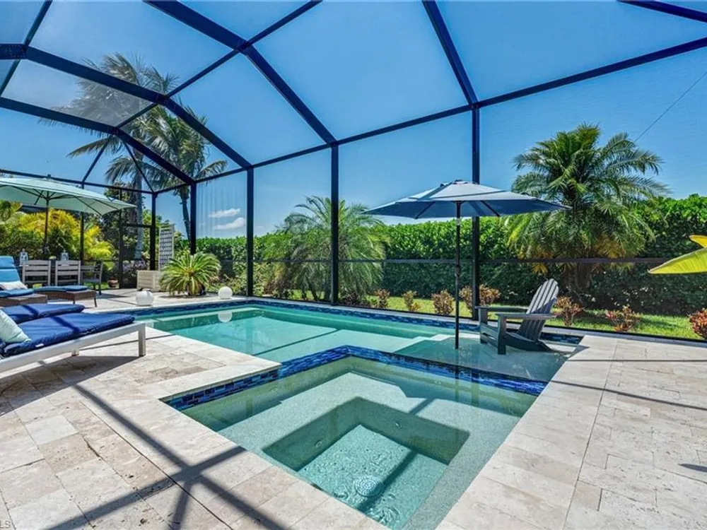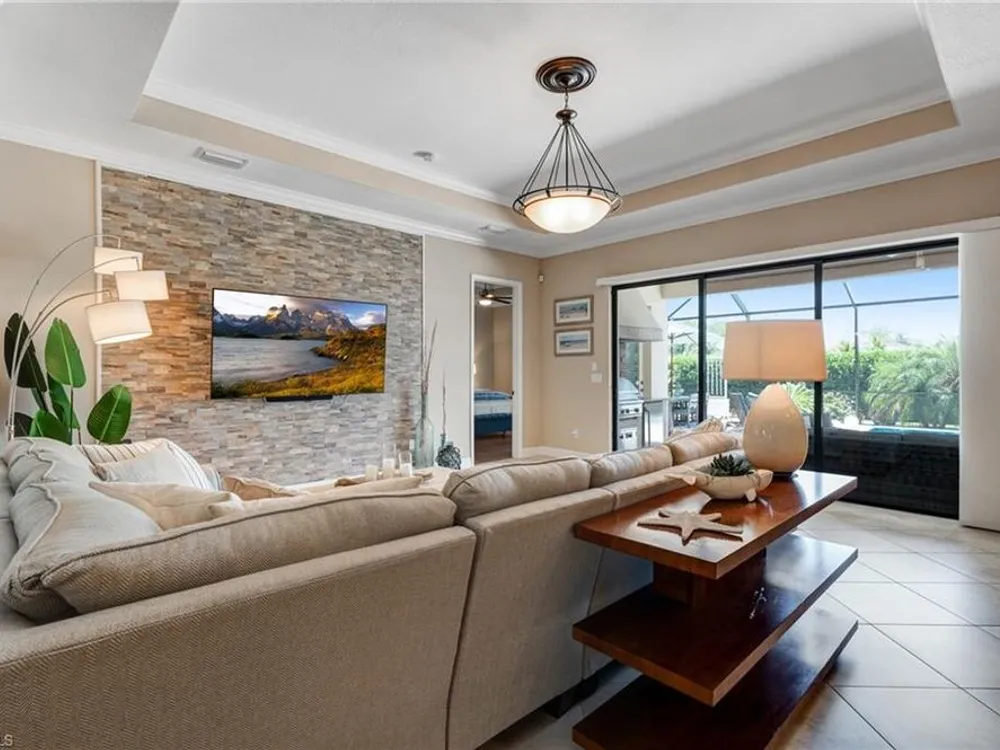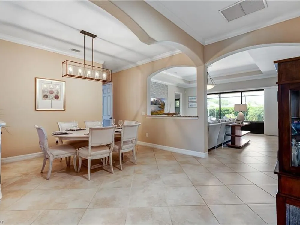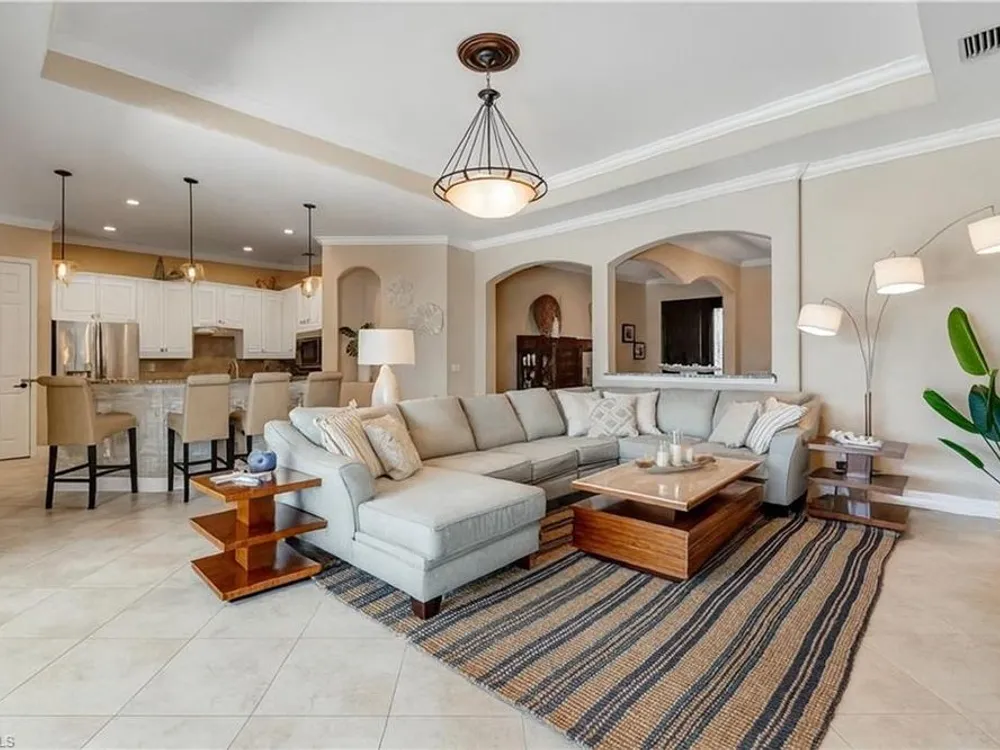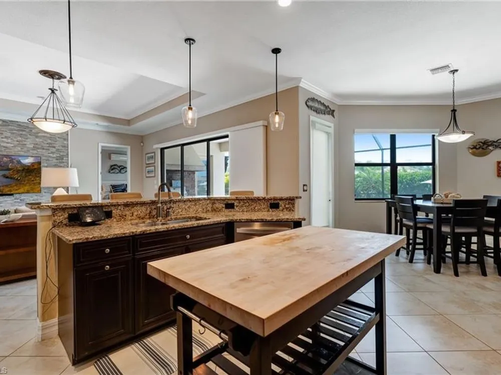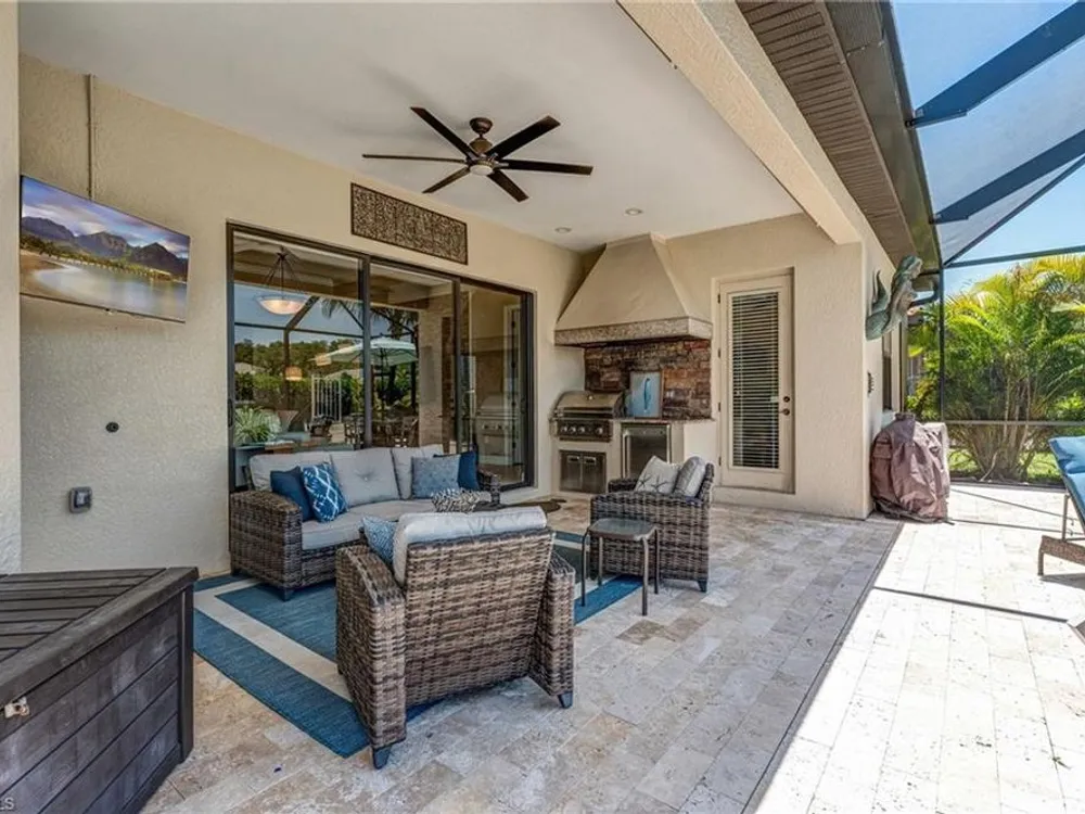 GOLF MEMBERSHIP INCLUDED! Now offered fully furnished, this beautifully appointed 4-bedroom, 2-bath single-family Princeton model features a spacious 3-car garage and comes with bundled golf, giving you full access to the Gordon Lewis designed golf course and resort-style amenities. A modern kitchen with freshly painted white cabinets feels crisp and inviting, with the clean lines and bright finish instantly opening up the space. Featuring crown molding, coffered ceilings, impact windows, and plantation shutters and Brand NEW AC installed Sept 2025. Step outside to your private outdoor retreat, complete with a custom sparkling pool, sunken relaxing hot tub, upgraded travertine paver lanai, and an outdoor summer kitchen—perfect for entertaining or unwinding in style. Sparkling beaches are just a short drive away. Bonita National Golf Club offers an aqua driving range, practice putting green, and a chipping area with a sand bunker that will help you prepare for your round. Bonita National also offers clubhouse dining, poolside cafe, attended fitness center, tennis courts, pickleball, sauna, U-Topia Spa, golf shop, tennis shop, main pool, lap pool, hot tub, and an onsite administration office. Live the Florida lifestyle with luxury, comfort, and endless recreation right at your doorstep.