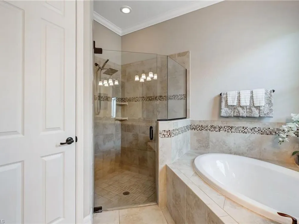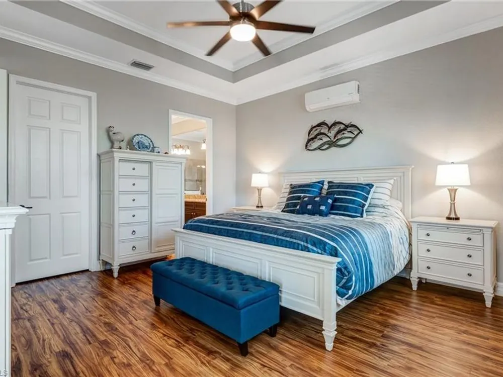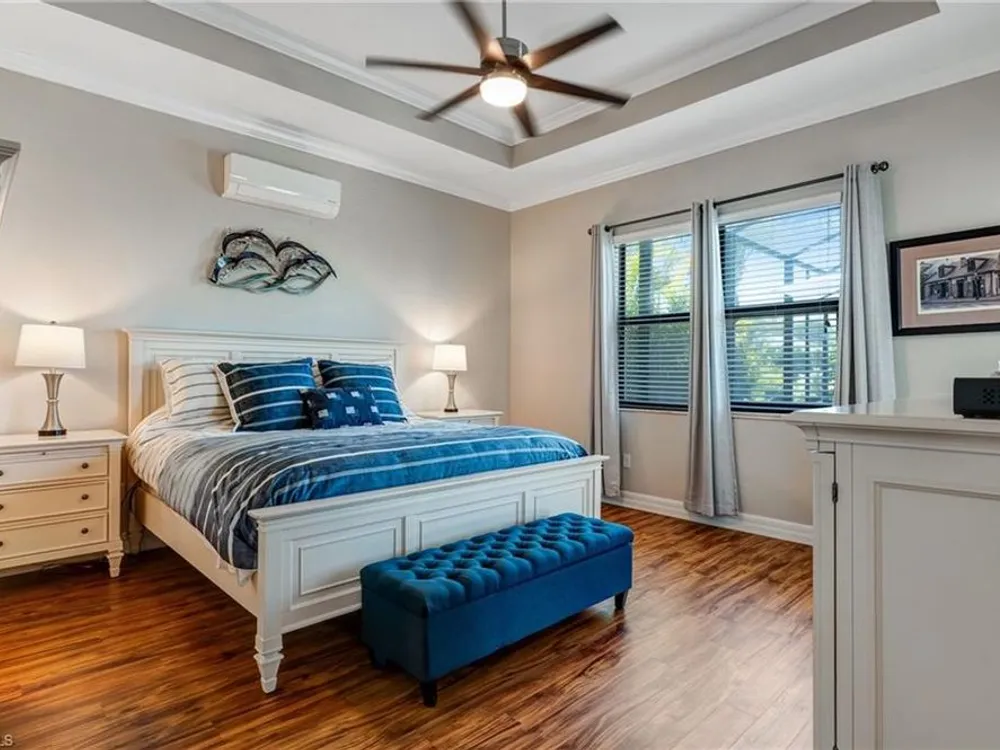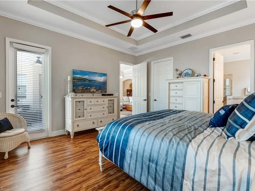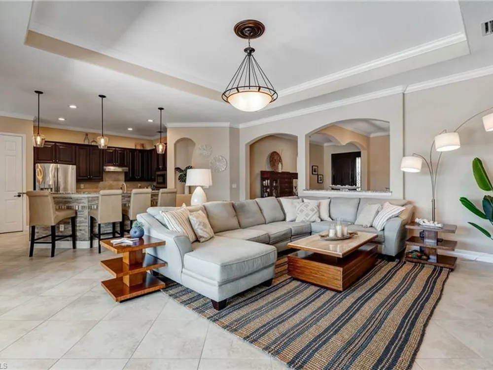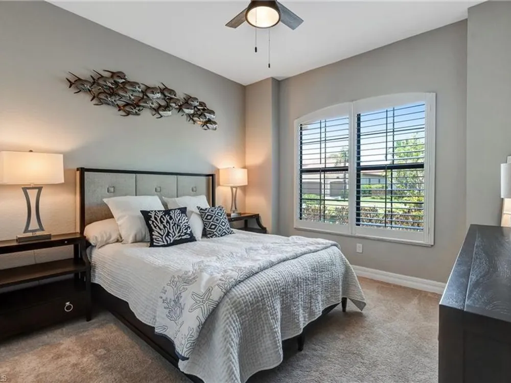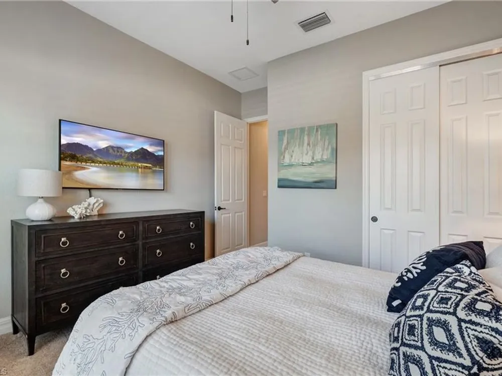 GOLF MEMBERSHIP INCLUDED! Now offered fully furnished, this beautifully appointed 4-bedroom, 2-bath single-family Princeton model features a spacious 3-car garage and comes with bundled golf, giving you full access to the Gordon Lewis designed golf course and resort-style amenities. A modern kitchen with freshly painted white cabinets feels crisp and inviting, with the clean lines and bright finish instantly opening up the space. Featuring crown molding, coffered ceilings, impact windows, and plantation shutters and Brand NEW AC installed Sept 2025. Step outside to your private outdoor retreat, complete with a custom sparkling pool, sunken relaxing hot tub, upgraded travertine paver lanai, and an outdoor summer kitchen—perfect for entertaining or unwinding in style. Sparkling beaches are just a short drive away. Bonita National Golf Club offers an aqua driving range, practice putting green, and a chipping area with a sand bunker that will help you prepare for your round. Bonita National also offers clubhouse dining, poolside cafe, attended fitness center, tennis courts, pickleball, sauna, U-Topia Spa, golf shop, tennis shop, main pool, lap pool, hot tub, and an onsite administration office. Live the Florida lifestyle with luxury, comfort, and endless recreation right at your doorstep.
