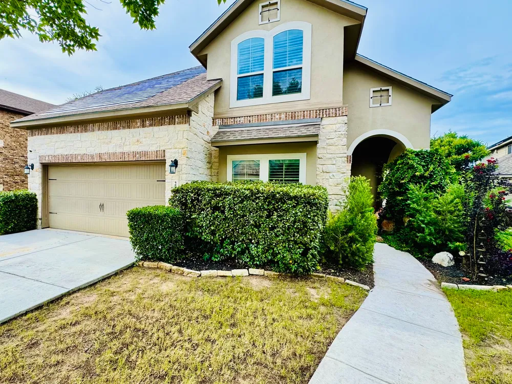 This is a stunning 4 bedroom, 2.5 bath, 2675 sq. feet, 2 car garage sitting on one of the most desirable greenbelt lots in the neighborhood with lots of privacy and beautifully landscaped. Immaculate home shows like a model home w/many upgrades to include covered porch w/full stone fireplace, outdoor kitchen, porch swing and beautiful views. Beautifully designed home w/an open floor plan, outstanding kitchen w/granite counters, tile backsplash, large island w/breakfast bar, stainless appliances, gas cooktop, double ovens, built-in microwave, dishwasher, walk-in pantry and lots of cabinets! Additional interior features include high ceilings, CF in all rooms, interior stone accents, wood exposed beams, ,shutters on front windows, blinds throughout, large family room up, master bedroom down, master bath w/separate tub and shower and tankless water heater. Additional features include sprinkler system, fencing, solar shingles, heavy composition roof, spray foam insulation, garage door opener and beautiful landscaping. This home has so much to offer so come on out and fall in love!