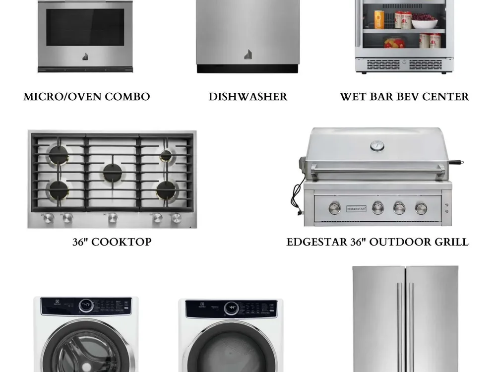 - Built-In Microwave, Refrigerator, Wall Oven, Vented Exhaust Fan, Self Cleaning Oven, Ice Maker, Gas Cooktop, Electric Oven, Disposal, Dishwasher, Convection Oven