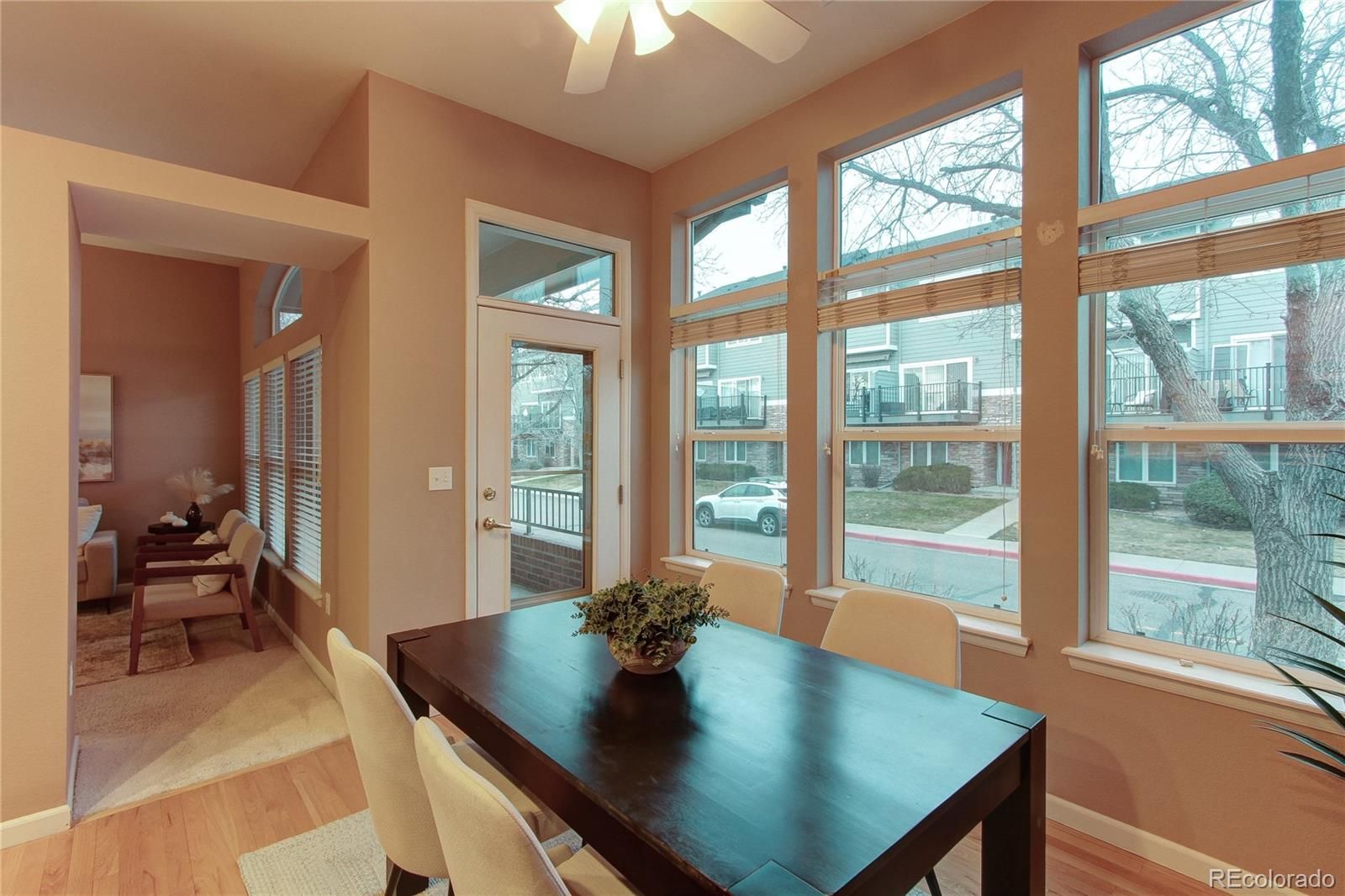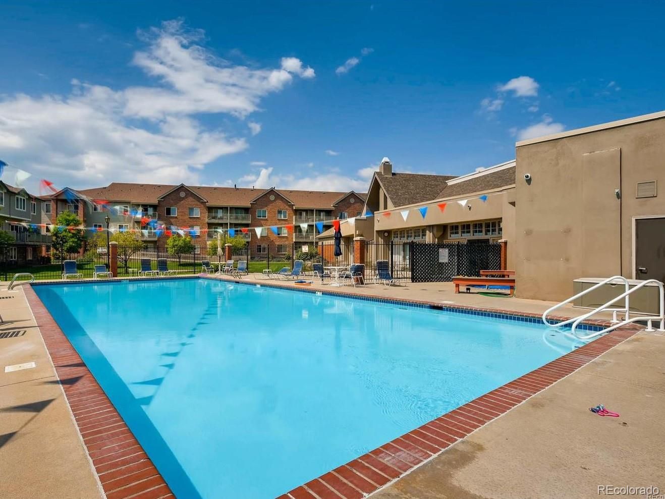 Adorable patio home in the desirable Lakeshore at Riverwalk Community. Enjoy one-level, low-maintenance living in the heart of Littleton. This well-kept patio home features a bright, spacious living room with large windows, a cozy fireplace, and built-in shelving. The adjacent kitchen and dining area offer hardwood flooring, abundant cabinet space, a breakfast bar, and newer appliances. The dining area provides direct access to the private back patio. The main-floor primary suite includes large windows, a generous walk-in closet, and an ensuite bath with a step-in shower, double sinks and excellent storage. A secondary bedroom is located on the opposite side of the home for added privacy, accompanied by a full guest bathroom. The laundry room includes cabinets, a washer, dryer, and freezer. An attached two-car garage provides extra storage space. Riverwalk amenities include a 12,000 sq. ft. clubhouse with a pool, spa, fitness center, billiards room, and banquet facilities. This golf-course community offers convenient access to Downtown Littleton, the RTD Light Rail station, the Platte Valley Greenway trail, and the Aspen Grove shopping center. Maintenance-free living in a prime Littleton location.