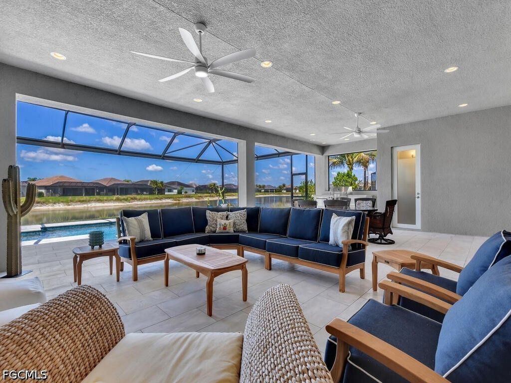 Step into unparalleled Florida living in this exceptional single family residence set on a pristine lakefront lot within the premier gated community of Valencia Bonita. This 55+ Active Adult neighborhood home is where thoughtful design and refined finishes create an inviting yet sophisticated atmosphere for modern living. Expansive interiors seamlessly connect to the outdoors, showcasing stunning water views from nearly every room and an open layout centered around a gourmet kitchen with premium appliances, abundant cabinetry, and a large island ideal for entertaining. Natural light fills the elegant living spaces, while the luxurious primary suite offers a private retreat with a spa-inspired bath, scenic vistas, and the rare benefit of three walk-in closets. Designed for both comfort and peace of mind, the home features full impact windows and doors, Storm Smart electric roll-down screens across the back, and a full-home Generac gas generator that also heats the pool for year-round enjoyment. Step outside to a private outdoor oasis with an oversized patio, heated pool, and beautifully landscaped yard overlooking tranquil lake waters, perfect for alfresco dining and sunset views. Complete with a three-car garage, smart storage and quality craftsmanship throughout, this residence offers convenient access to world-class beaches, dining and shopping while delivering a seamless blend of luxury, functionality and timeless Florida appeal.