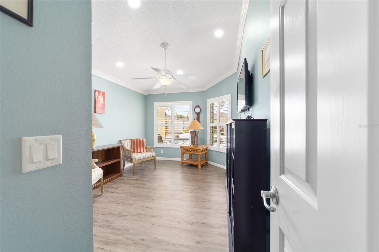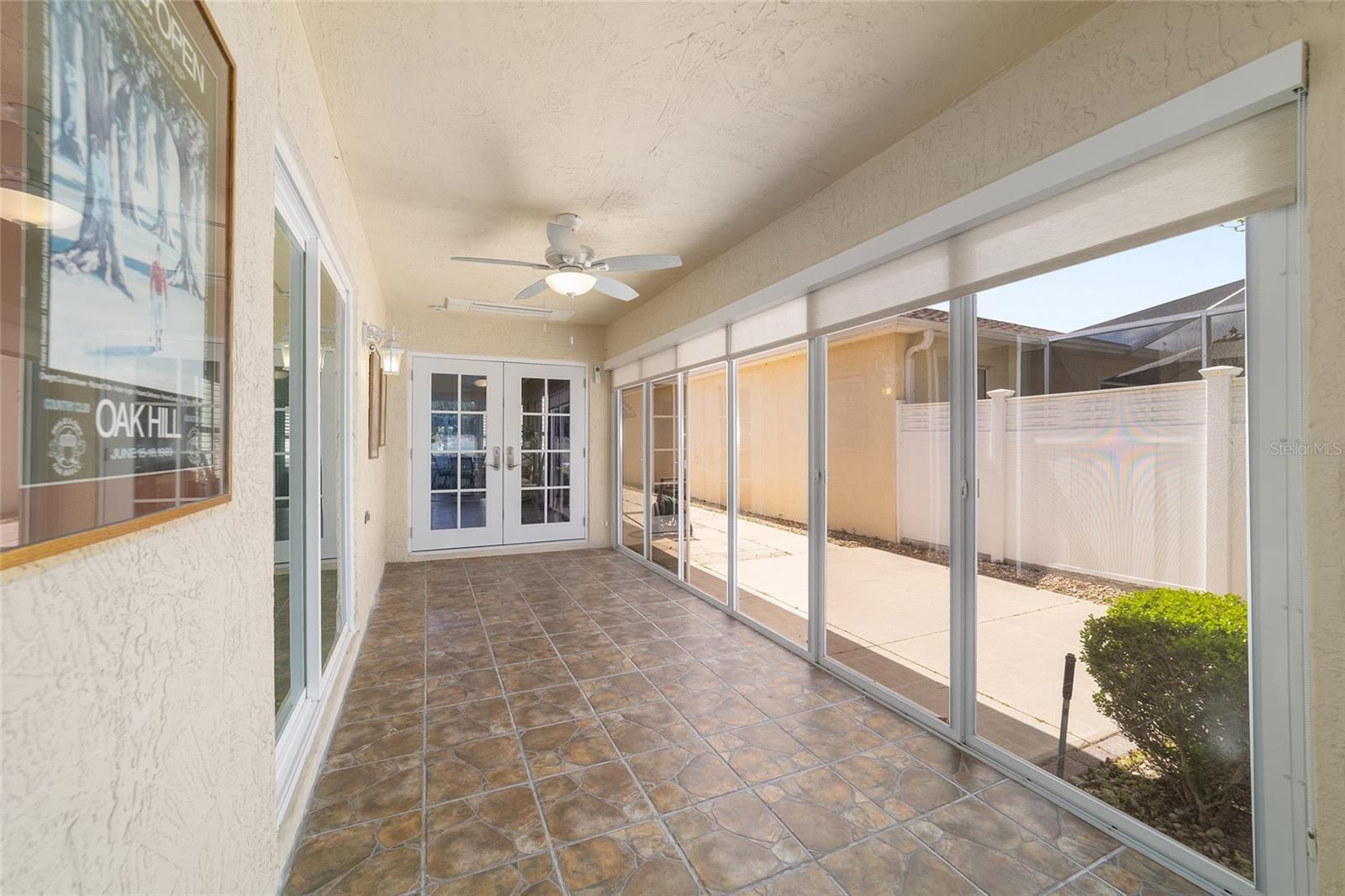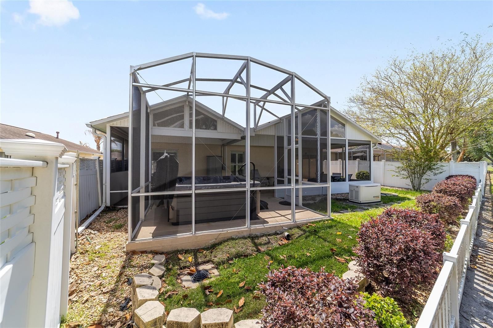 TURNKEY AND BOND IS PAID! This lovely block and stucco Grantham courtyard villa is located in Belmont Villas in The Village of Belvedere. It is a 3/2 with a climate controlled enclosed lanai and a large screened lanai with a roof on the golf course with a Premier Care Walk-In Jacuzzi Tub (AS-IS). The flooring is all luxury vinyl plank. As you enter the home you will notice the vaulted ceilings with crown molding and an open floor plan. This home is being sold Turnkey to include all furniture and furnishings in the home with the exception of items with a green sticker and some staging items. This home also has plantation shutters, a fireplace in the living room and granite in the kitchen and both bathrooms. The kitchen has stainless steel appliances, a tiled backsplash, white cabinets with pull outs and a gas range. There is also a granite breakfast bar to enjoy your morning coffee. The dining room has a lovely table with 6 chairs and matching sideboard. The primary bedroom has a queen sized bed with a dresser and chest. There is also a walk-in closet and a large bathroom with granite counters and tiled step-in shower. The guest bedroom has a full bed with a dresser, 2 nightstands and a TV mounted on the wall. The third bedroom could be used as an office, there are storage cabinets and a TV. Both guest rooms have built-in closets. The guest bathroom has granite counters and an upgraded shower. Both bathrooms have a bidet. There is a linen closet in the hallway. The laundry room has a newer washer and dryer and is located inside the home. Items in the garage do not convey, except for the Pelican Water Filtration System and the gas golf cart, included AS-IS! The garage has an epoxy flooring and has a remote controlled screen door. There is a 2019 GENERAC generator, 2020 Roof, 2018 HVAC and water heater is original. Taxes $3,884.32, Maint $261.78, Fire $320.71 and bond is paid!