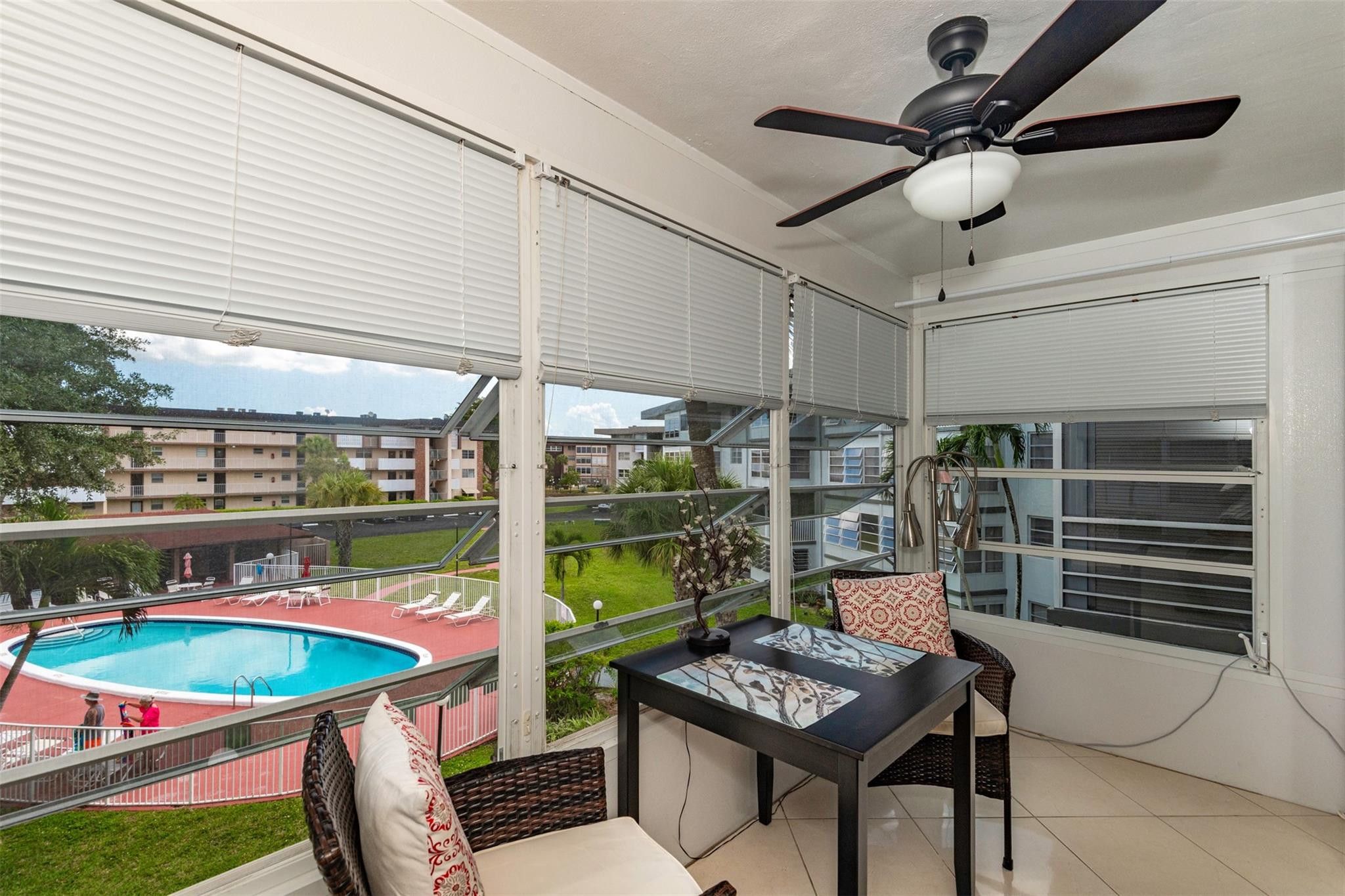 Very nice 1 bedroom, 1 bath condo, a adult community in Lauderdale Oaks. Come all furnish and turnkey. Update kitchen and bathroom, tiles through out, beautiful view of the pool, hurricane windows, hurricane shutter in the patio door, 2 cameras view inside unit and parking area. Amenities are: Heated pool, shuffleboard, Petanque, pickle ball, exercise and billiard room. Good location, close to main road, shops, airport, hospital, beach.