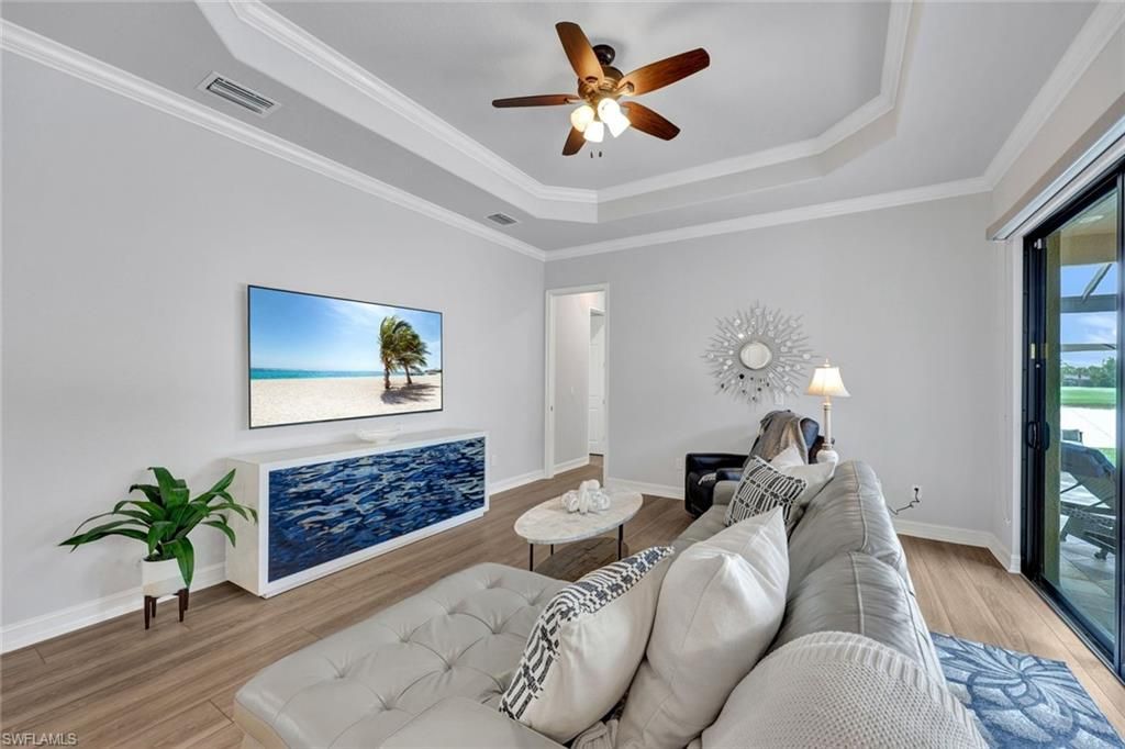 Experience luxury living in this beautifully updated Toscana model overlooking the 14th hole in the highly sought-after Bonita National Golf and Country Club. This open-concept floor plan has been thoughtfully redesigned to create a bright, spacious atmosphere perfect for entertaining and everyday living. The home features a stunning updated kitchen (w/ added pantry, painted cabinets, countertops & backsplash) brand new LVP flooring throughout, stylish plantation shutters, and fresh interior paint that enhances the light and airy feel. Step through the sliding glass doors to your own custom pool enjoy year-round sunshine in the heart of SWFL. Bonita National offers resort-style amenities including three restaurants, a lagoon style pool with pool service for food and beverage, Har Tru tennis courts, Gordon Lewis 18 hole golf course, a fully equipped fitness center, a relaxing spa, and sauna. Bocce ball and racquetball are also being added to the vibrant list of activities. Nestled within the tranquil embrace of a natural wildlife preserve, this premier residence offers exceptional privacy and a serene escape from noise, all while placing you at the heart of Southwest Florida’s most coveted conveniences. Revel in peaceful mornings surrounded by protected landscapes, and then take advantage of easy access to the best of the region—Barefoot Beach is only 12 miles away or enjoy a night out in downtown Naples, while RSW is a short drive, ensuring effortless travel for business or leisure. The vibrant new Midtown district, poised to become a hotspot for dining, shopping, and entertainment, is just moments away, guaranteeing the perfect balance of secluded luxury and urban excitement in Bonita National Golf and Country Club.
