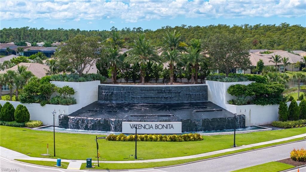 SELLER SAYS SELL! Price improvement! Now $785,000. This beautifully maintained 4 bedroom 3 bath Chandon floor plan home with water views is filled with thoughtful upgrades and custom details throughout. The open living area features new durable luxury vinyl plank flooring, NEW CARPET IN ALL BEDROOMS INSTALLED 03/07/26, a den with custom built-in bookcases, shelves, desks, and cabinets. Abundant natural light enhanced by designer chandeliers, including a crystal chandelier over the dining room, and a MacKenzie-Childs centerpiece in the kitchen. The front entry features newly installed cut glass windows in the door and sidelight.The kitchen is equipped with under cabinet and above cabinet lighting and a state of the art refrigerator featuring a built-in coffee maker, with an additional refrigerator conveniently located in the epoxy floored garage. A completely remodeled guest bathroom, a custom master closet, and laundry room with cabinets and tub add both style and functionality.Comfort is ensured with ceiling fans in all bedrooms, den, living room, and lanai. For peace of mind, the home includes new Storm Smart hurricane screens and a WHOLE HOUSE GENERAC GENERATOR.Outdoor living is a true highlight with an outdoor kitchen featuring a gas grill and refrigerator, perfect for entertaining.This home combines elegance, comfort, and practicality and is move-in ready with upgrades that make all the difference.Valencia Bonita is a 55+ community with a 45,000 sq ft Clubhouse, Resort style pool, spa, & lap pool, state of the art fitness center, indoor/outdoor restaurants, tennis, pickleball, bocce, dog park, fire pits, nail salon, full social calendar, all in a gated community. Close to white sandy beaches, restaurants, shopping, and all the best SWFL has to offer.NEW CARPET IN ALL 3 BEDROOMS!