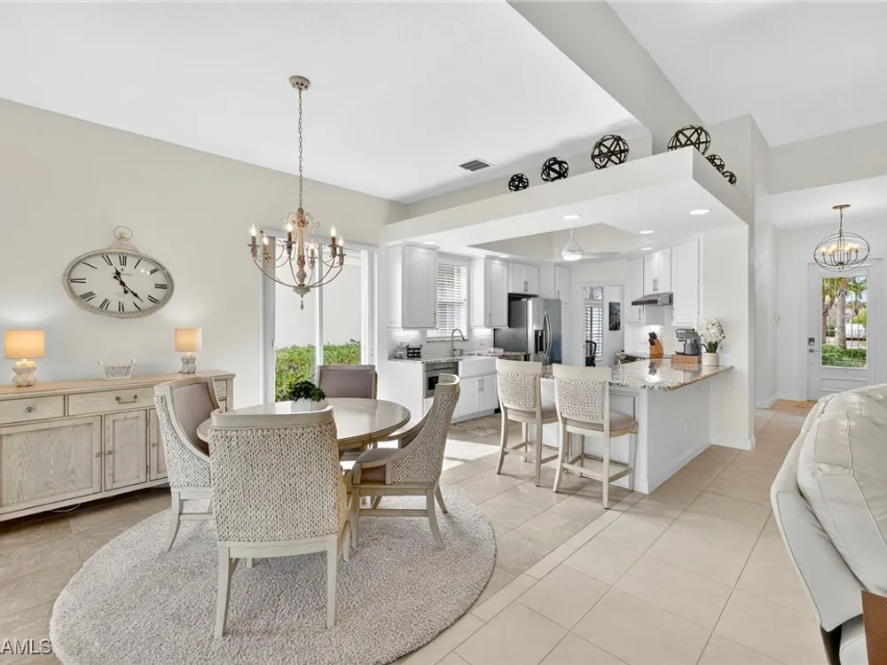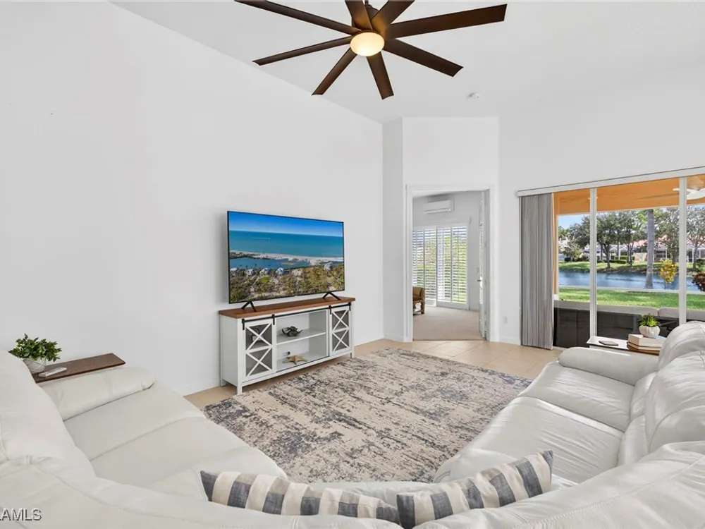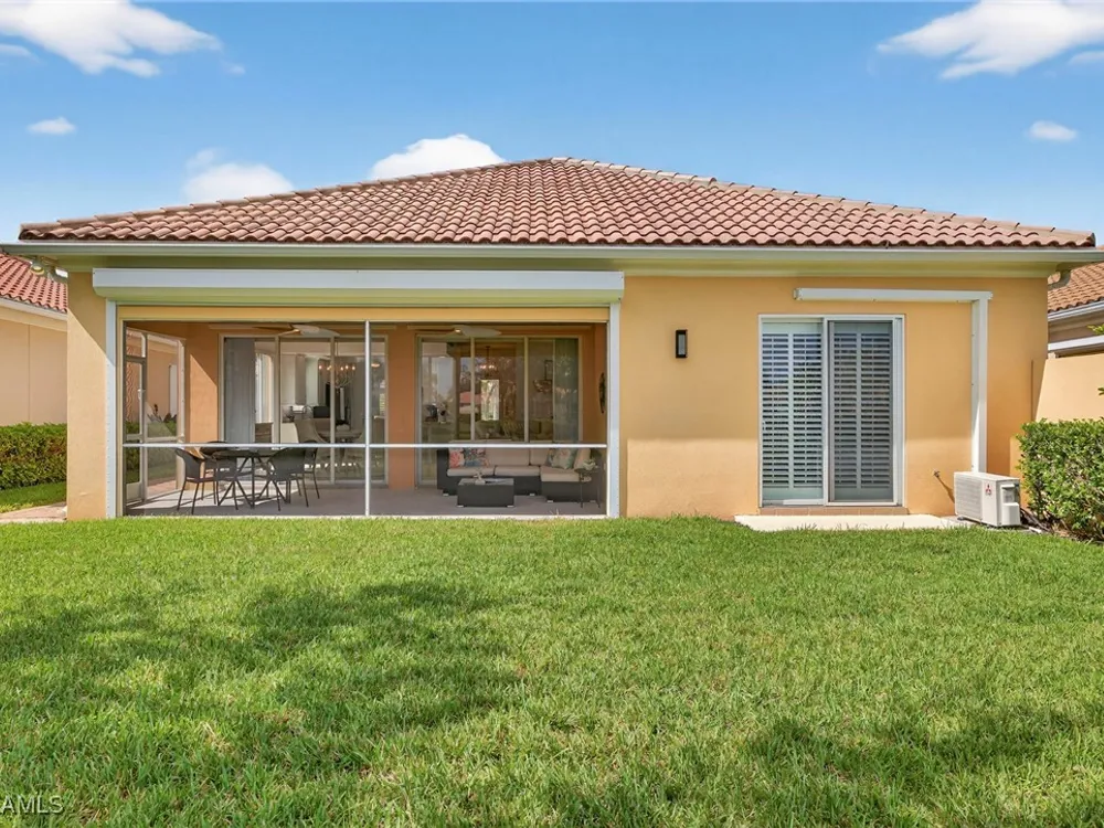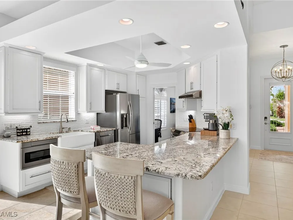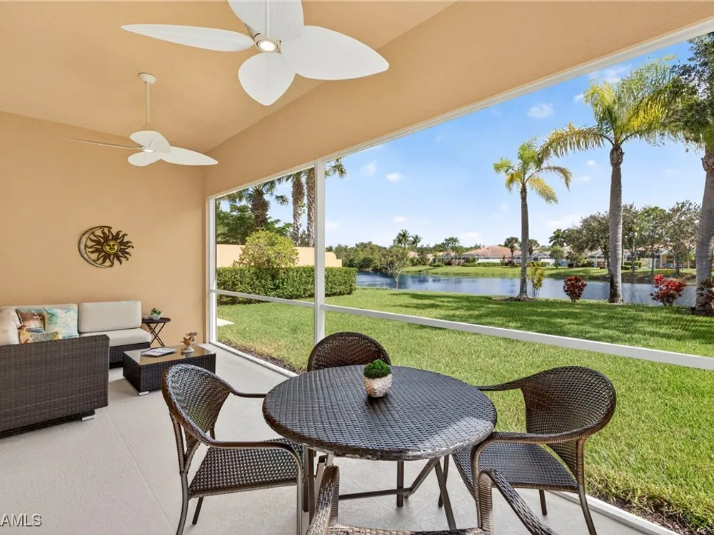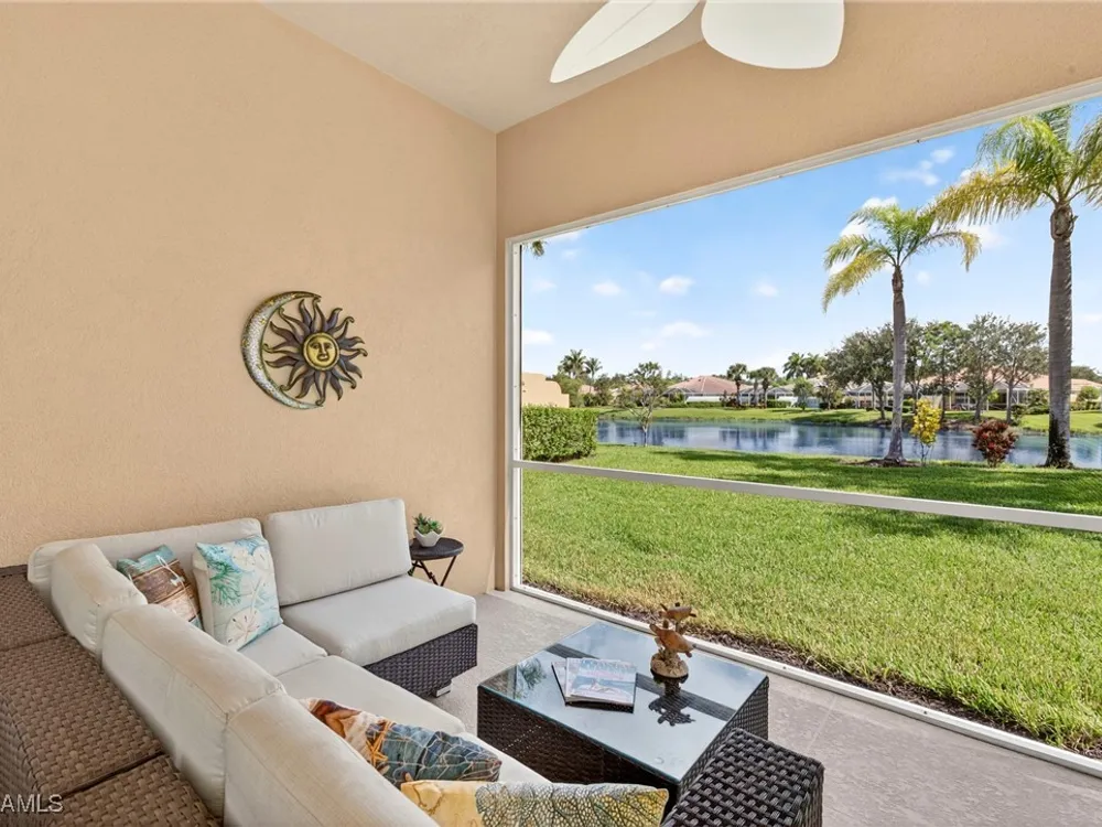 Discover your perfect Florida winter escape or primary residence in this meticulously maintained Oakmont floor plan with 3 spacious bedrooms, 2 full baths plus a versatile den, ideal for a home office or guest space. Home is move-in ready and is stylishly turnkey furnished so the moment you close you can start enjoying all that VillageWalk and SW Florida have to offer. You will love how light and bright this home is with its pleasing neutral color pallet, volume ceilings and lots of windows and sliding glass doors to let in the natural sunlight. The kitchen has been updated with cabinet doors and pull-out drawers, a large Kohler single bowl sink, stylish backsplash, under counter lighting and has a granite island style countertop to gather with your family and friends. Master suite stands out with its abundance of closet space, his and her baths and convenient walk-in shower with seamless glass doors. Throughout the home, you'll enjoy elegant touches such as plantation shutters, 8-foot doors, designer light fixtures, and ceiling fans. Laundry room is equipped with ample storage cabinets, utility sink, and Samsung washer and dryer. Relax outdoors on the screened lanai overlooking the sparkling lake, the perfect spot to enjoy our beautiful weather. There is plenty of room to add a pool. Hurricane protection is easy with accordion and electric shutters on the lanai, offering peace of mind. Wahoo is just a short walk, bike or golf cart ride to the amenity rich town center that offers something for everyone: resort style & lap pools, 24/7 fitness center, lighted Har-Tru tennis courts, pickleball center and bocce all with active leagues. In addition, there is a lighted basketball court, tot lot, full-service restaurant w/indoor and outdoor dining, beauty salon, bagel shop, spa, ice cream shop, and lots of planned activities by the full-time activities director. VillageWalk of Bonita is unique with it’s pretty butterfly gardens, miles of lakes, sidewalks, walkways over connecting bridges and impressive wildlife. It’s a great location to our beautiful sandy beaches, SW Florida International Airport, shopping and entertainment destinations. Guard gated, golf cart and pet friendly. Come LIVE PLAY and RELAX in the amazing community of VillageWalk of Bonita!