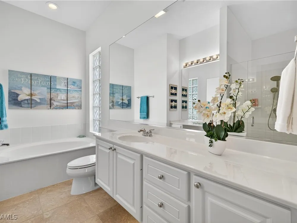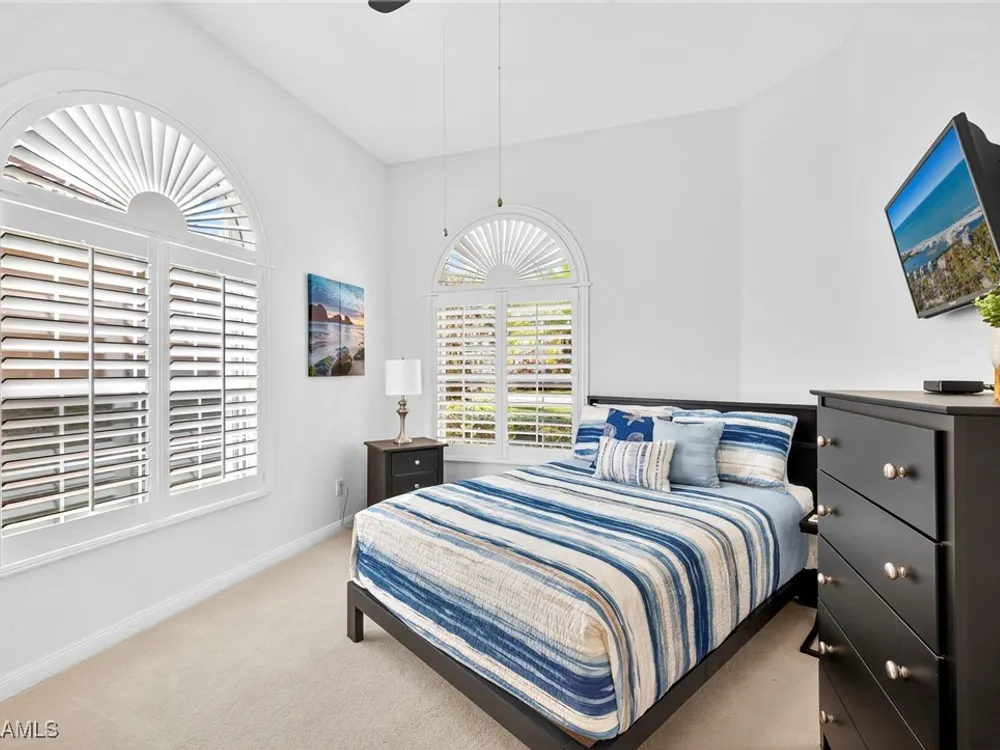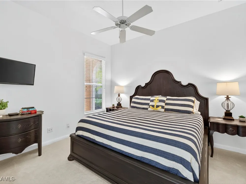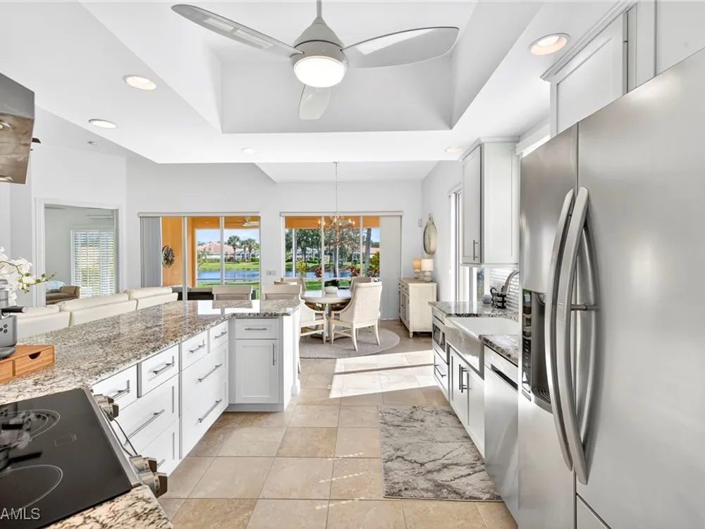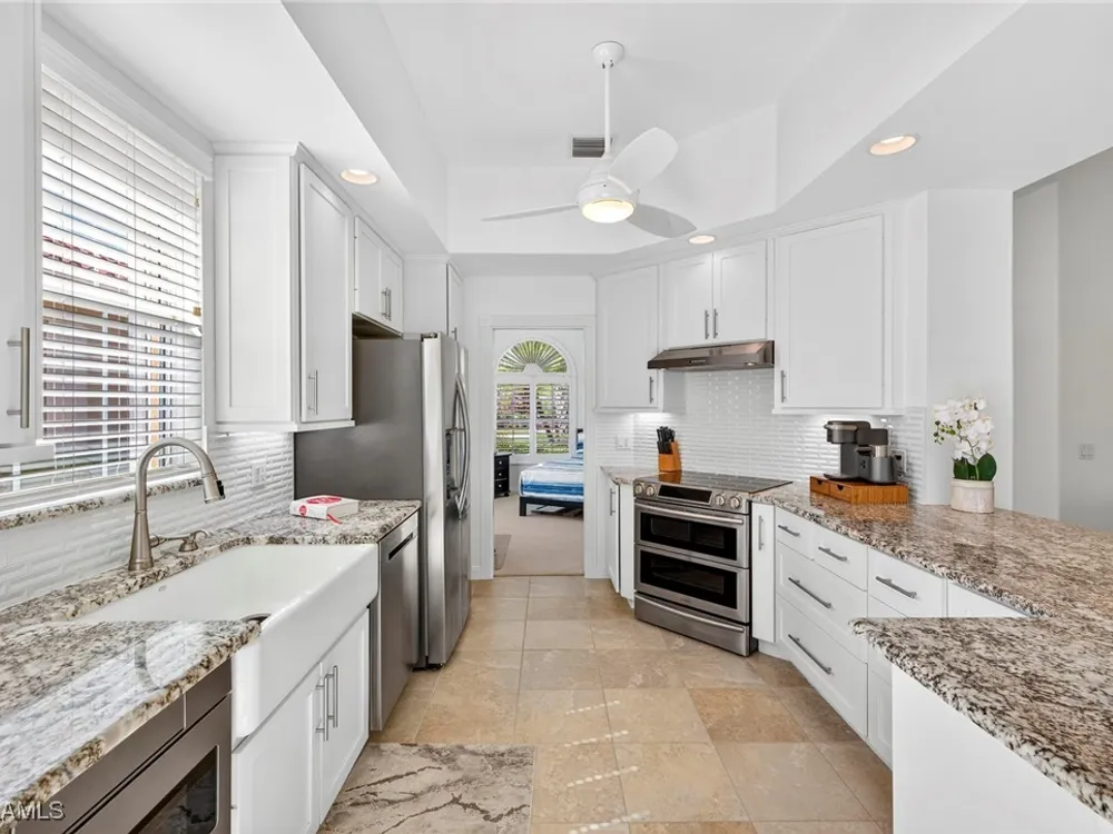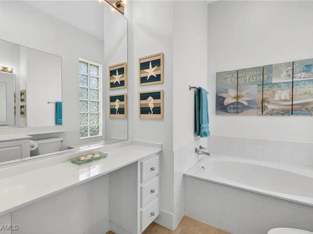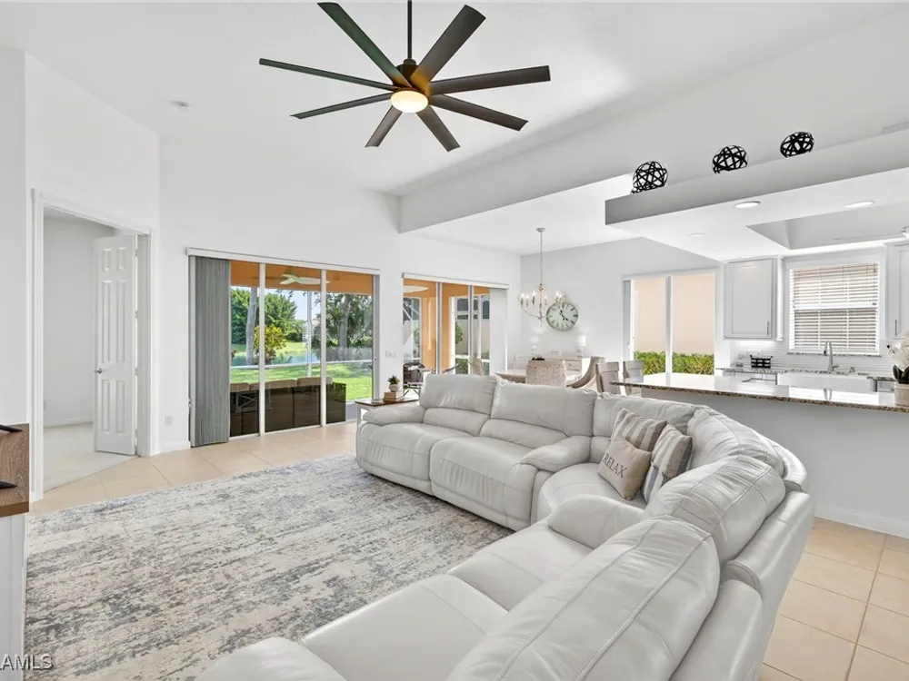 Discover your perfect Florida winter escape or primary residence in this meticulously maintained Oakmont floor plan with 3 spacious bedrooms, 2 full baths plus a versatile den, ideal for a home office or guest space. Home is move-in ready and is stylishly turnkey furnished so the moment you close you can start enjoying all that VillageWalk and SW Florida have to offer. You will love how light and bright this home is with its pleasing neutral color pallet, volume ceilings and lots of windows and sliding glass doors to let in the natural sunlight. The kitchen has been updated with cabinet doors and pull-out drawers, a large Kohler single bowl sink, stylish backsplash, under counter lighting and has a granite island style countertop to gather with your family and friends. Master suite stands out with its abundance of closet space, his and her baths and convenient walk-in shower with seamless glass doors. Throughout the home, you'll enjoy elegant touches such as plantation shutters, 8-foot doors, designer light fixtures, and ceiling fans. Laundry room is equipped with ample storage cabinets, utility sink, and Samsung washer and dryer. Relax outdoors on the screened lanai overlooking the sparkling lake, the perfect spot to enjoy our beautiful weather. There is plenty of room to add a pool. Hurricane protection is easy with accordion and electric shutters on the lanai, offering peace of mind. Wahoo is just a short walk, bike or golf cart ride to the amenity rich town center that offers something for everyone: resort style & lap pools, 24/7 fitness center, lighted Har-Tru tennis courts, pickleball center and bocce all with active leagues. In addition, there is a lighted basketball court, tot lot, full-service restaurant w/indoor and outdoor dining, beauty salon, bagel shop, spa, ice cream shop, and lots of planned activities by the full-time activities director. VillageWalk of Bonita is unique with it’s pretty butterfly gardens, miles of lakes, sidewalks, walkways over connecting bridges and impressive wildlife. It’s a great location to our beautiful sandy beaches, SW Florida International Airport, shopping and entertainment destinations. Guard gated, golf cart and pet friendly. Come LIVE PLAY and RELAX in the amazing community of VillageWalk of Bonita!