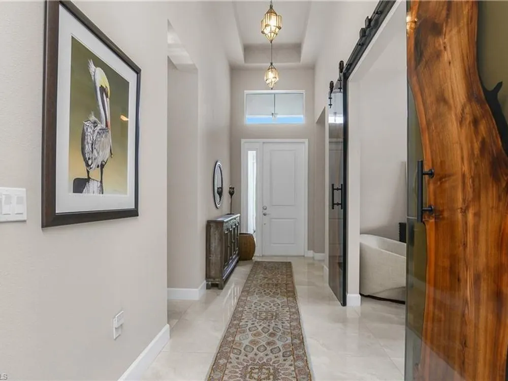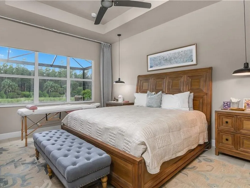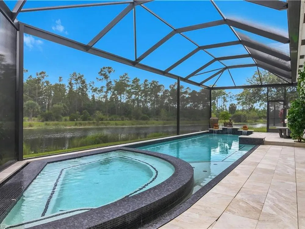 Welcome to this stunning Chandon model home in the highly sought-after 55+ community of Valencia Bonita. This beautiful Chandon model has one of if not the BEST WATER AND PRESERVE VIEWS on a perfectly, extremely private pie shaped lot. This home has been significantly upgraded which features upgraded porcelain tile throughout (no carpet), gorgeous custom barn doors to den, a gourmet kitchen with 6 burner professional grade gas stove, beautiful granite, stone farmhouse sink, counter depth refrigerator, open lighted shelves and lighted cabinets going to ceiling, along with a custom glass back splash and a double dishwasher. The living room features a stone accent wall with custom built in cabinets, open lighted shelves, electric fireplace, and recessed TV. The hurricane sliding doors collapse on both sides to allow for true open indoor/outdoor living. The outdoor space includes gas plumped to the fire pit and outdoor tiki Hut. The tiki hut has 2 under counter refrigerators, a tv, and large grill with logs of counter space to entertain. The hot tub seats 12+ people! The pool is long enough to do laps and afterwards you can rinse off with your outdoor shower which has both hot and cold water. Valencia Bonita offers a premier active adult lifestyle, with full-time sports and social directors, eight pickleball courts, eight tennis courts, state-of-the-art fitness facilities, art and activity studios, and a full calendar of entertainment and social clubs. As a newer community, it is easy to connect with neighbors and build lasting friendships. This home is attractively priced for a quick sale and is available for closing as soon as 30 days. For more information or to schedule a private showing, please contact the homeowner, Nancy Wilson, at 704-651-5181.