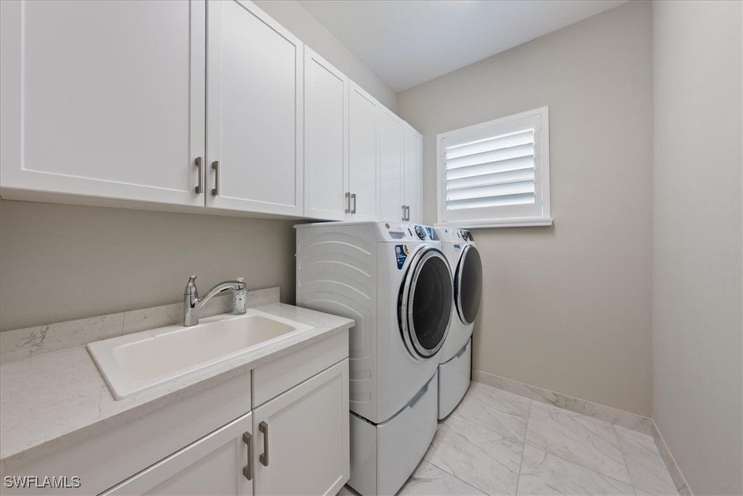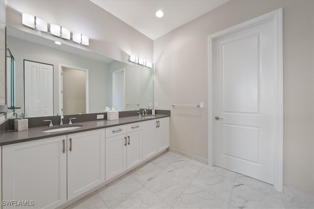 Welcome to the highly sought after Hampton Villa home spanning almost 2,000 sq ft. From the moment you walk in, you will feel the difference as this residence is in pristine condition and offers clean lines, tasteful upgraded finishes and an open living concept with a light and airy spacious family room, gourmet kitchen, and dining area. The upgrades and extras which totaled more than $150,000 are all designed to preserve your investment and simplify daily life. The gourmet kitchen is the centerpiece of the home, offering 42-inch upper cabinets, expansive quartz countertops, natural gas stove featuring griddle and air fryer. Lower cabinets and the double pantry features pull out shelves. The primary suite offers a spacious bedroom and bathroom with exceptionally large vanity with dual sinks and walk in shower. The toilet has provisions to add a bidet. The walk-in closet boasts a custom design with built-in drawers, shelving, dual his/her laundry bins and a hideaway full length mirror. The upgraded laundry room features upper cabinetry, built in large sink, and upgraded front load washer and dryer on pedestals. This home comes with remote control ceiling fans and custom remote blinds, as well as plantation shutters that add privacy and elegance throughout. The expanded lanai with custom pavers boasts a breath taking, unobstructed view of the natural beauty of the preserve offering a quiet and serene setting. There is a gas line already in place for your future outdoor kitchen, firepit or heater. The garage features an epoxy coated floor. The home has a whole house surge protector. There is also a Culligan water filtration and softening system. Valencia Bonita is a 55+ active adult community featuring a 45,000-square-foot resort-style clubhouse and offers outstanding world-class amenities. The amenities include a member-only restaurant, a Social Hall with regularly scheduled entertainment and activities, a fitness center, a spa, a culinary studio, an arts and crafts studio with a kiln, card rooms, and a billiard and sports lounge. Outside the clubhouse, there are pickleball courts, tennis courts, bocce courts, a resort pool with covered cabanas, a lap pool, a resistance pool, a heated spa, and a dog park. Activities include art classes, cooking classes, dozens of special interest clubs, and card and game clubs. Located just minutes from I-75 and close to beaches, fine dining and the up-and-coming downtown Bonita Springs featuring popular places like Sugar Shack, Rooftop at Riverside and much more! Only 30 minutes to famous 5th Ave. Naples, and world-class entertainment like Artis–Naples and the Baker Museum, this home truly offers resort living 365 days a year.