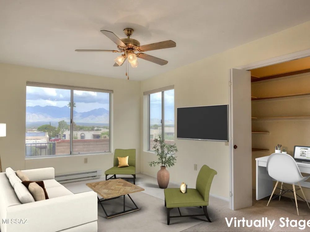 This 2-bedroom, 2-bath townhouse in Desert Hills 2 is all about location and views. Perched high above neighboring homes, it captures sweeping mountain and valley vistas that make every day feel special. A versatile, fully finished Arizona room provides the perfect spot for a studio, office, or sunroom to soak in those views. While the townhouse offers plenty of opportunity for updates, it's the ideal canvas to create your own Green Valley retreat--whether as a full-time residence or a lock-and-leave getaway.