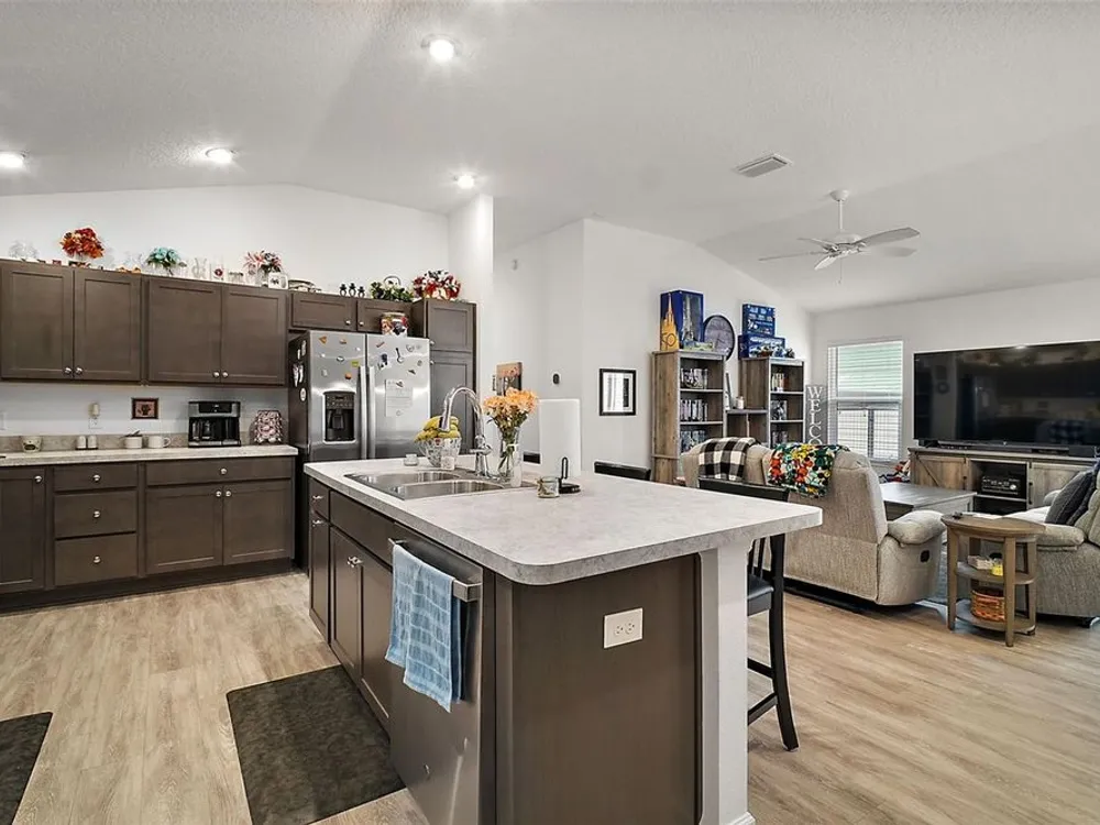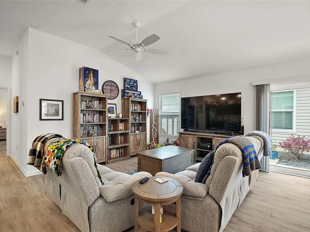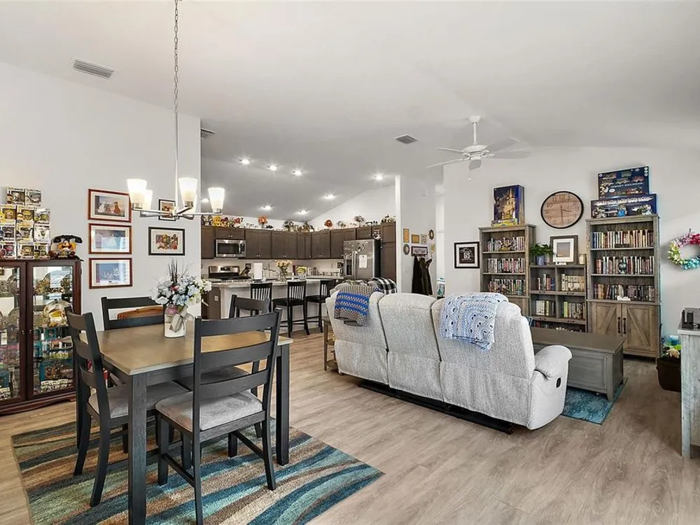 - Cathedral Ceiling(s), Ceiling Fan(s), Eat-in Kitchen, Living/Dining Room, Open Floorplan, Walk-In Closet(s)