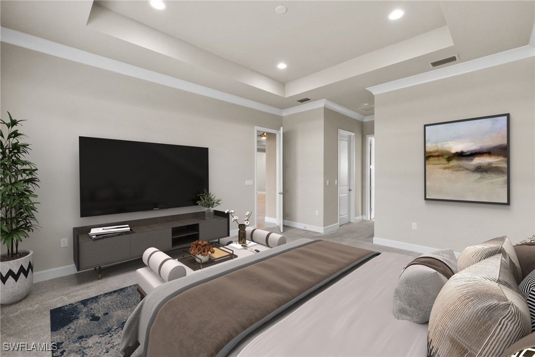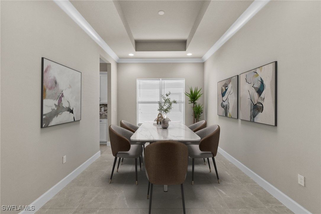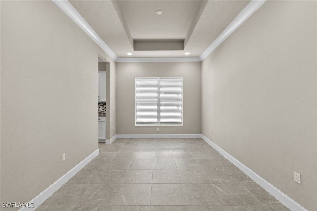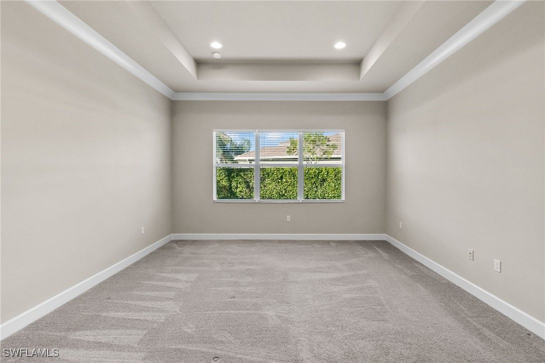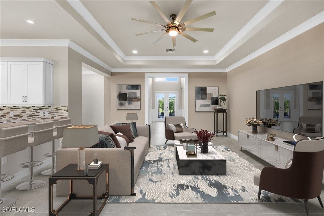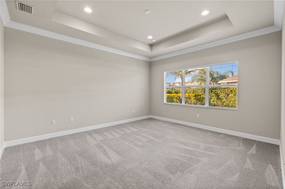 Welcome to Valencia Bonita, one of Southwest Florida’s most desired resort communities! This thoughtfully designed Caroline floor plan, features a kitchen that is a chef’s dream, boasting NATURAL GAS cooking, a rarity in most southwest Florida homes. The custom cabinets, two toned, quartz countertops and tiled back splash make the kitchen pop and the large breakfast room off the kitchen is a great place to grab your morning coffee. The large, open concept floor plan opens up to your large lanai surrounded by beautifully manicured landscaping on one of the largest private Corner lots in all of Valencia. Let your imagination run wild as you create the outdoor living space of your dreams with additional electric and outside shower already in place! You’re ready to create your own paradise with a swimming pool and outside kitchen if desired. The expensive primary bedroom with luxury bath offers great space and privacy along with custom master closets. Step through the hall off the foyer into your spacious flex room featuring large double doors entrance, private courtyard entrance and separate garage great for a third bedroom, In-law suite or office. Other areas include an additional bedroom with large walk-in lit closet and custom bathroom. Take advantage of the owners upgrades with plumbing and electric in laundry room for sink and folding table, as well as custom cabinets for additional storage. Upgraded millwork throughout including primary bedroom. Electrical upgrades include additional outlets and high hats for plenty of overhead lighting. The third car garage offers room for storage or a golf cart. This home is Perfect for those seeking a tranquil retreat without sacrificing proximity to all the amenities Valencia has to offer. Valencia is a 55+ community that offers incredible amenities such as a 45,000 sf clubhouse, resort pool, eight pickleball courts, eight tennis courts, pool bar, restaurant, full service spa, resort pool, lap pool, dog park, bocce and an extensive social calendar! Home has been virtually staged.