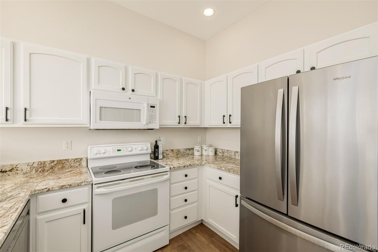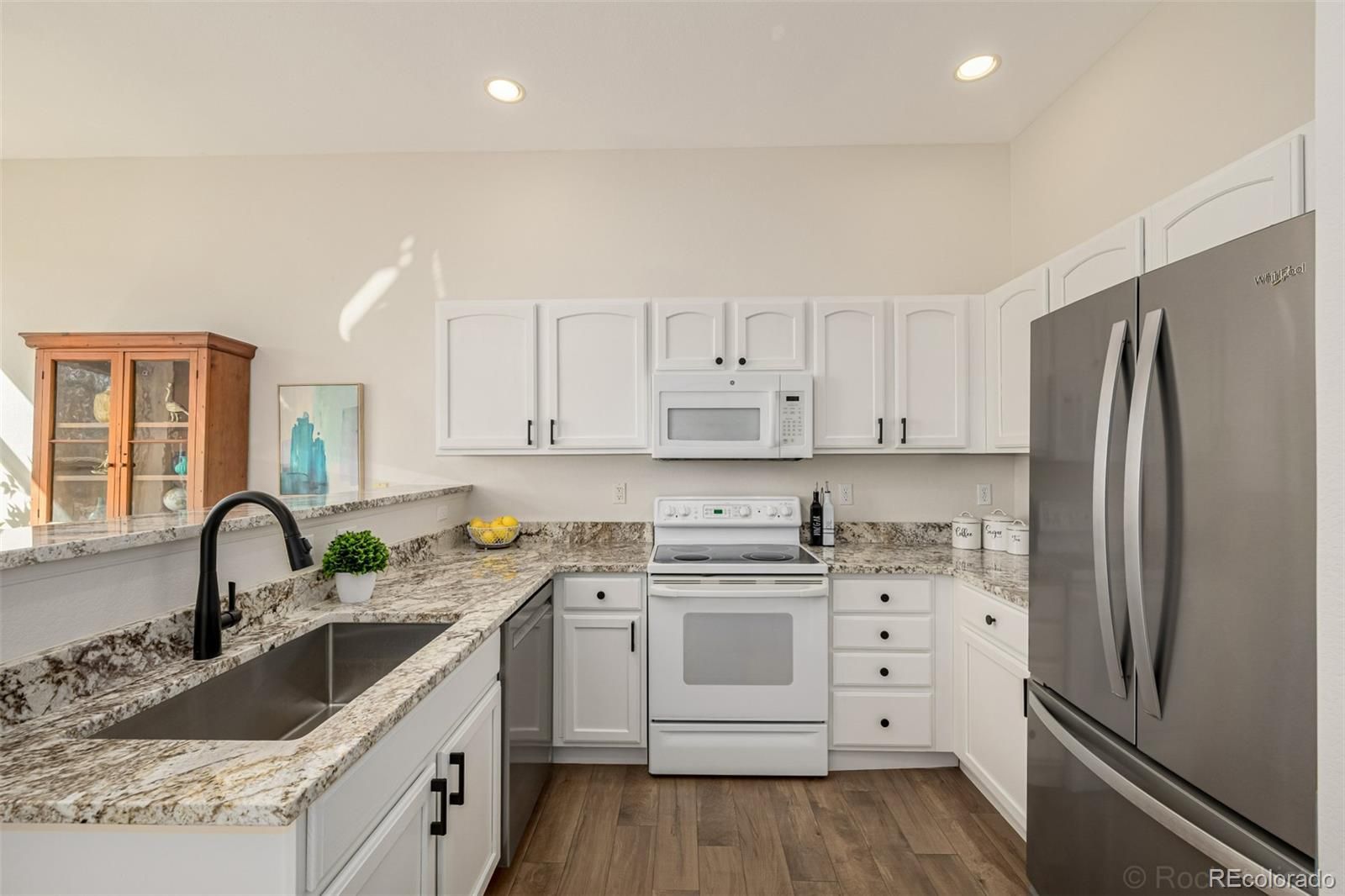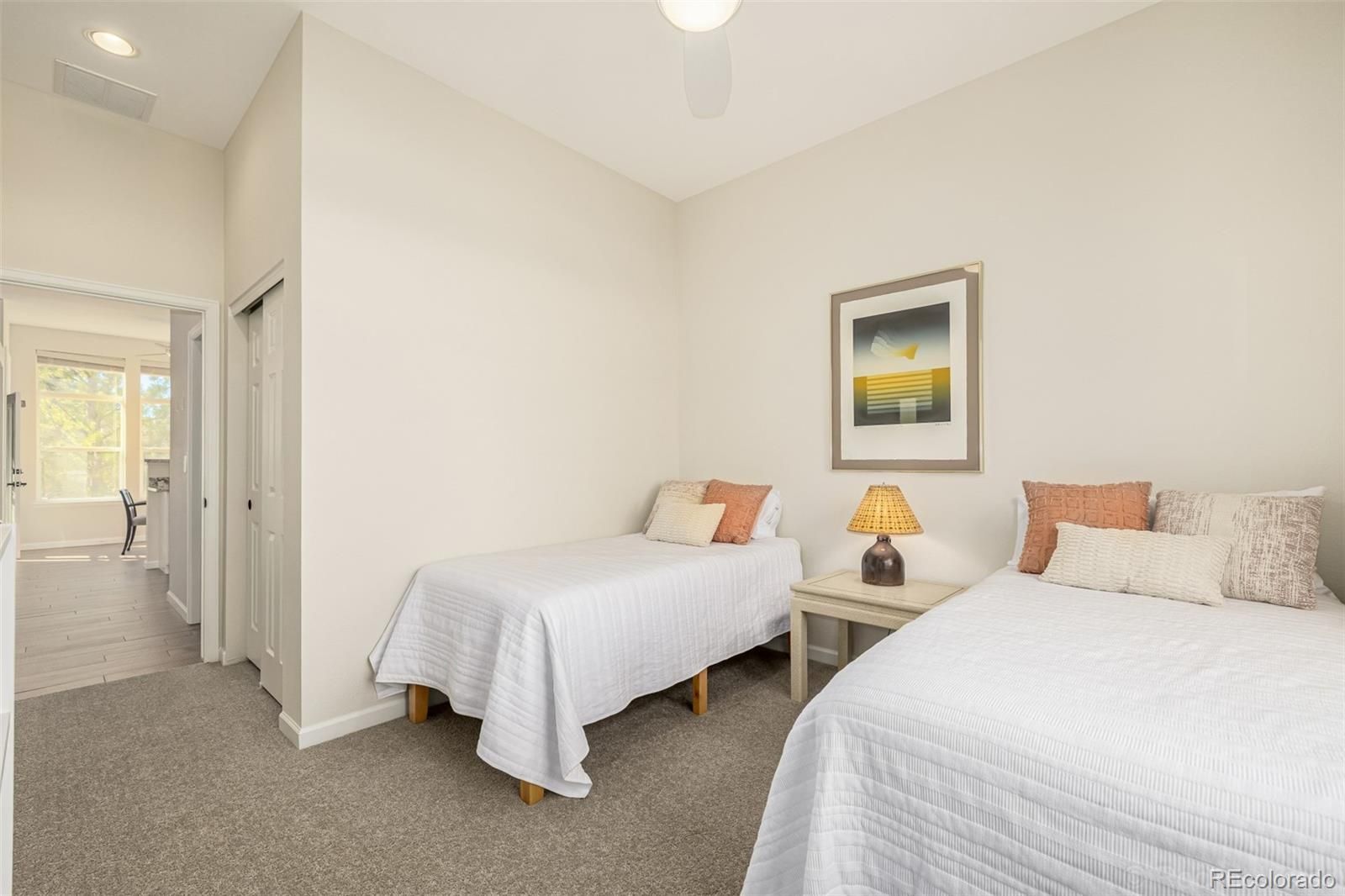 Enjoy effortless single-level living with no interior steps in this beautifully updated ranch-style townhome backing to the 3rd fairway of Littleton Golf Course in the sought-after Riverwalk community. Light, bright, and sun-filled, the home enjoys golf course views from the living room, kitchen, primary suite, and back patio, creating a peaceful and inviting setting. The home has been thoughtfully upgraded throughout, including fresh interior paint, painted cabinets with new hardware, granite countertops, new carpet, updated lighting, a new kitchen faucet, new dishwasher, and new door knobs and hinges throughout. Both bathrooms feature new toilets, faucets, lighting, and hardware, and the primary bath now includes dual sinks and a huge walk-in closet. In 2022, additional improvements included wood-look tile flooring, a new furnace, and a new water heater. Relax on the private back patio overlooking the fairway, perfect for enjoying Colorado sunshine and serene golf course views. Riverwalk residents enjoy a 12,000 sq ft clubhouse with fitness center, billiards room, pool and hot tub, along with nearby Platte River walking trails, Old Town Littleton, light rail, shopping, and restaurants.