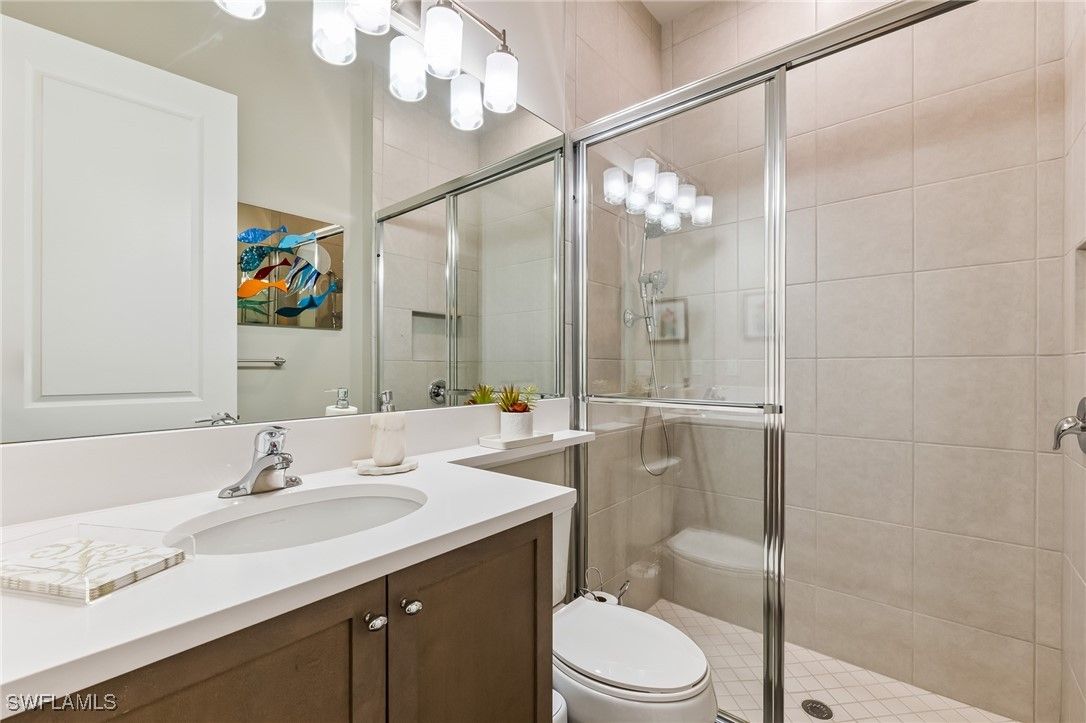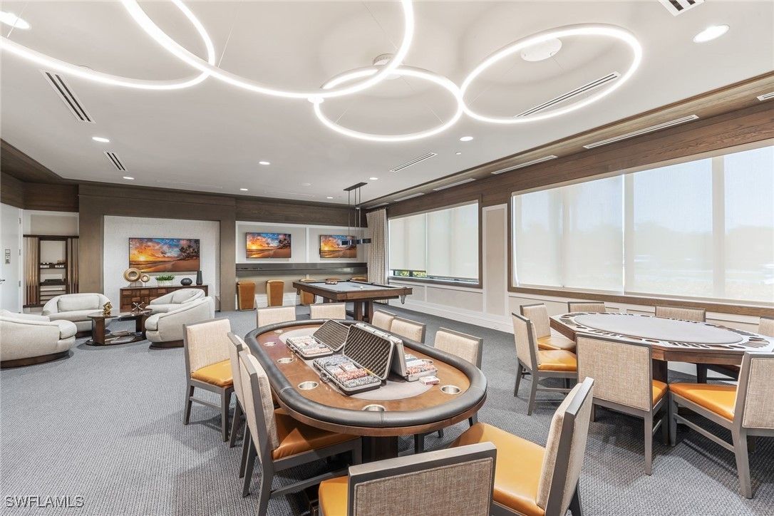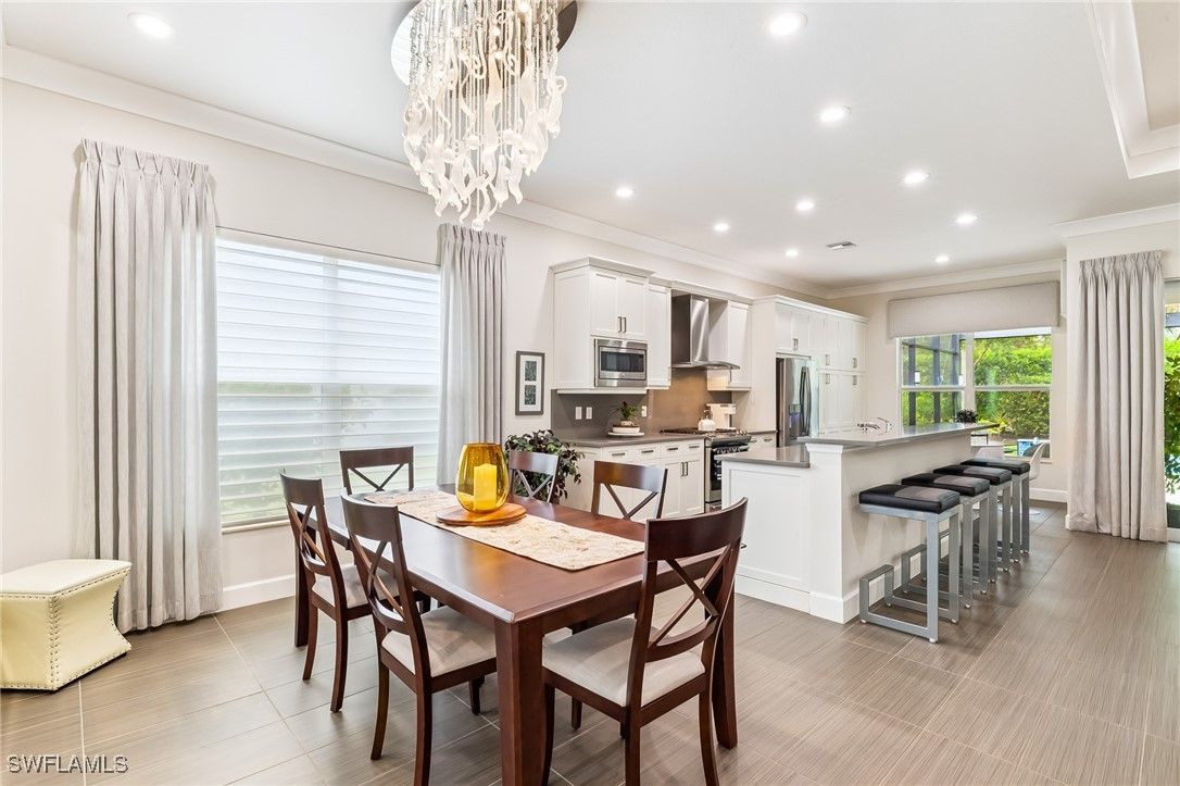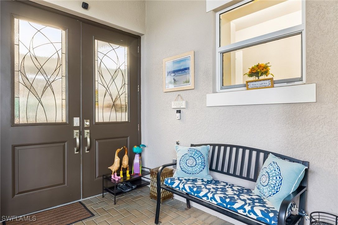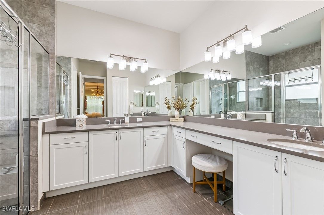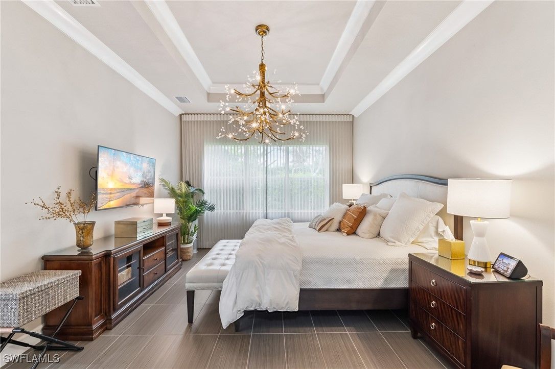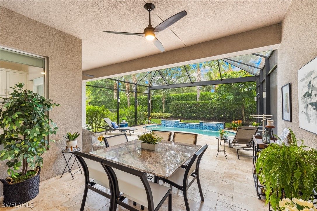 Price Improvement! Is the active adult lifestyle calling you? This well-appointed move-in ready “Cabernet” floorplan is positioned on a lushly landscaped PRIVATE lot with no homes behind. Built with storm protection in mind, the home includes hurricane-impact windows and doors as well as Storm Smart hurricane-rated motorized shades and a WHOLE-HOUSE NATURAL GAS GENERATOR (providing uninterrupted power and peace of mind). Throughout the home you will see embellishments of designer LED lighting, premium fixtures and ceiling fans, crown molding, and custom motorized window treatments, tankless hot water heater, whole-house water treatment system, and landscape lighting. The great room features a custom bar with cabinetry and a wine refrigerator, perfect for hosting guests. Offering nearly 2,200 square feet of refined living space, this residence features gorgeous porcelain tile flooring throughout (no carpet anywhere) creating a sleek, clean, and low-maintenance environment that enhances both style and comfort. The thoughtfully designed layout includes 3 spacious bedrooms, 2 full bathrooms, plus a gourmet kitchen with a breakfast bar and casual dining area, a light-filled great room, formal dining room, a versatile den or office, and a large laundry room. Storage is abundant, with custom closets, an oversized walk-in storage room complete with built-ins and a 2.5 car air-conditioned including attached freshaire UV Light System garage to accommodate a golf cart or more storage. Enjoy both front and rear screened lanais for maximum outdoor living space. The kitchen is beautifully appointed with upgraded appliances, soft-close cabinetry, pull-out shelves, quartz countertops, boasting a perfect open layout ideal for entertaining. The expanded rear lanai is a private oasis, complete with panoramic no-see-um screening, travertine pavers, and a heated saltwater pool with spa jets at both ends and dual waterfalls. Valencia Bonita’s resort-style amenities are unparalleled, featuring a spectacular 40,000-square-foot Clubhouse and Sports Center. Residents enjoy an indoor-outdoor restaurant and bar, a vibrant social hall for concerts and themed events, a luxurious spa, multiple pools including resort, lap, and resistance pools, private cabanas, a fully equipped and staffed fitness center, billiards lounge, card rooms, pottery and crafts studio, a professional cooking studio, and courts for tennis, pickleball, and bocce. With dog parks, a pro shop, dozens of fitness classes, a full calendar of resident clubs, and a full-time lifestyle director, this community offers a vibrant lifestyle that rivals the finest resorts. Ideally located just minutes from the white-sand beaches of Southwest Florida, RSW International Airport, and the cultural, dining, and shopping destinations of Bonita Springs, Naples, and Fort Myers.