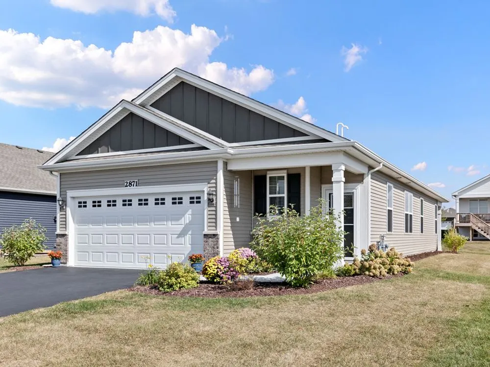 INCREDIBLE BLAKE RANCH IN ALGONQUIN GRAND RESERVE 55+ COMMUNITY! BETTER THAN NEW CONSTRUCTION WITH TONS OF OWNER UPGRADES * FULL TRANSFERABLE BUILDER WARRANTY * 2 BEDROOM 2 BATHROOM PLUS DEN! 1459 SQUARE FEET * EV READY WITH 240V OUTLET * UNDERSINK REVERSE OSMOSIS SYSTEM * OWNED WATER SOFTENER * ALL NEW LEVOLOR BLINDS AND WINDOW TREATMENTS * BIDET READY WITH ELECTRICAL OUTLET IN PRIMARY BATHROOM * FULL COMPLETE SIMPLY SAFE SECURITY ON EVERY DOOR AND WINDOW * HOUSE PAINTED NATURAL LINEN IN DURATION BY SHERWIN WILLIAMS * HOUSE COMES WITH FULL SET OF APPLIANCES WHICH INCLUDE NEW LG WASHER AND DRYER & WHIRLPOOL KITCHEN APPLIANCES * LARGE EAT IN ISLAND WITH QUARTZ COUNTERTOP * 42 INCH WHITE SHAKER CABINETS * PEACEFUL AND PRIVATE LOT FACES GREEN SPACE * ALL SMART HOME ACCESSORIES ~ GARAGE DOOR OPENER, DOOR BELL, THERMOSTAT * WALKING DISTANCE TO SPELLA PARK AND ALGONQUIN LIBRARY, MILES OF WALKING PATHS, CLOSE TO ALGONQUIN COMMONS SHOPPING CENTER AND EVERYTHING RANDALL ROAD HAS TO OFFER * LOW $100 MONTHLY HOA THAT INCLUDES GRASS CUTTING & SNOW REMOVAL!