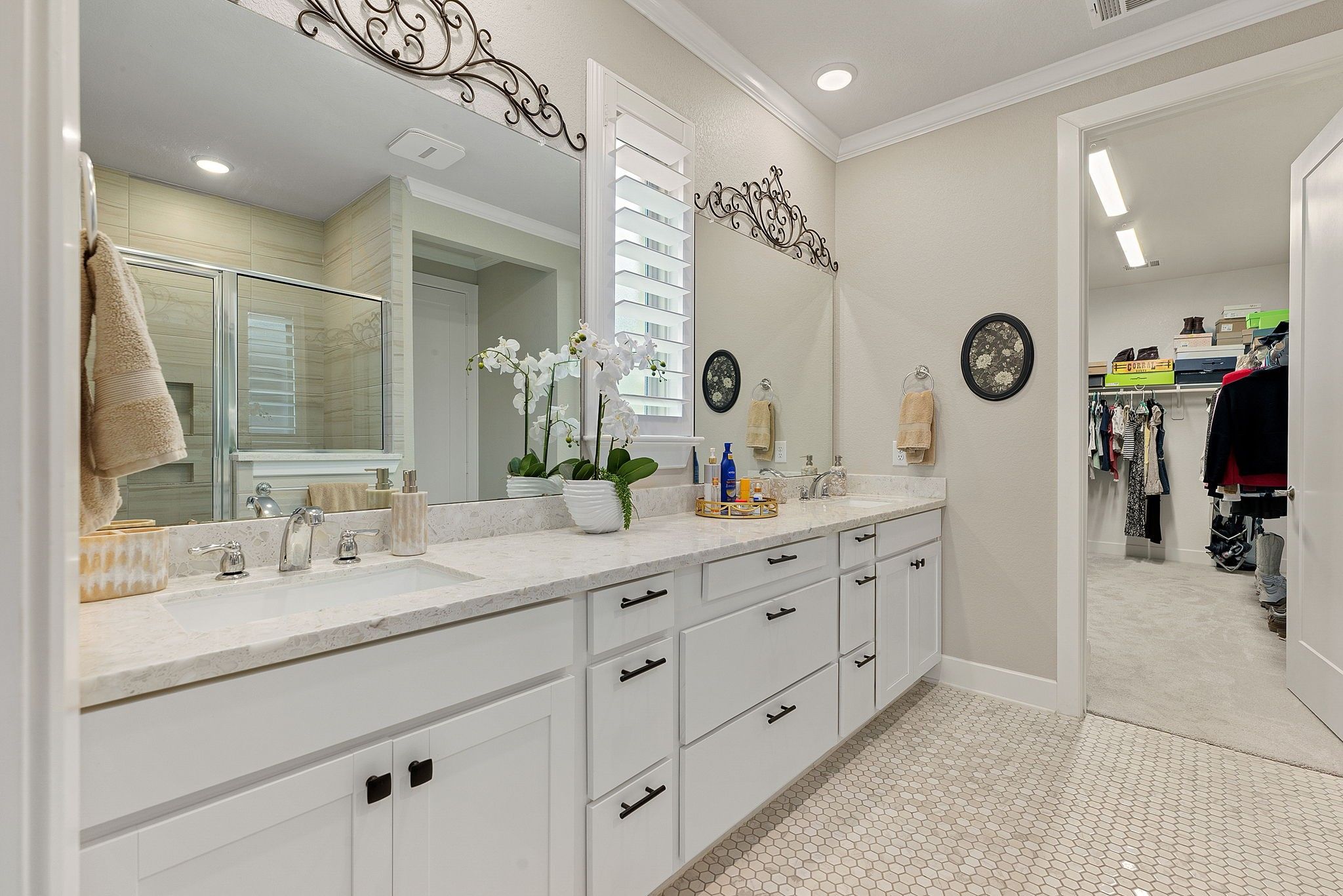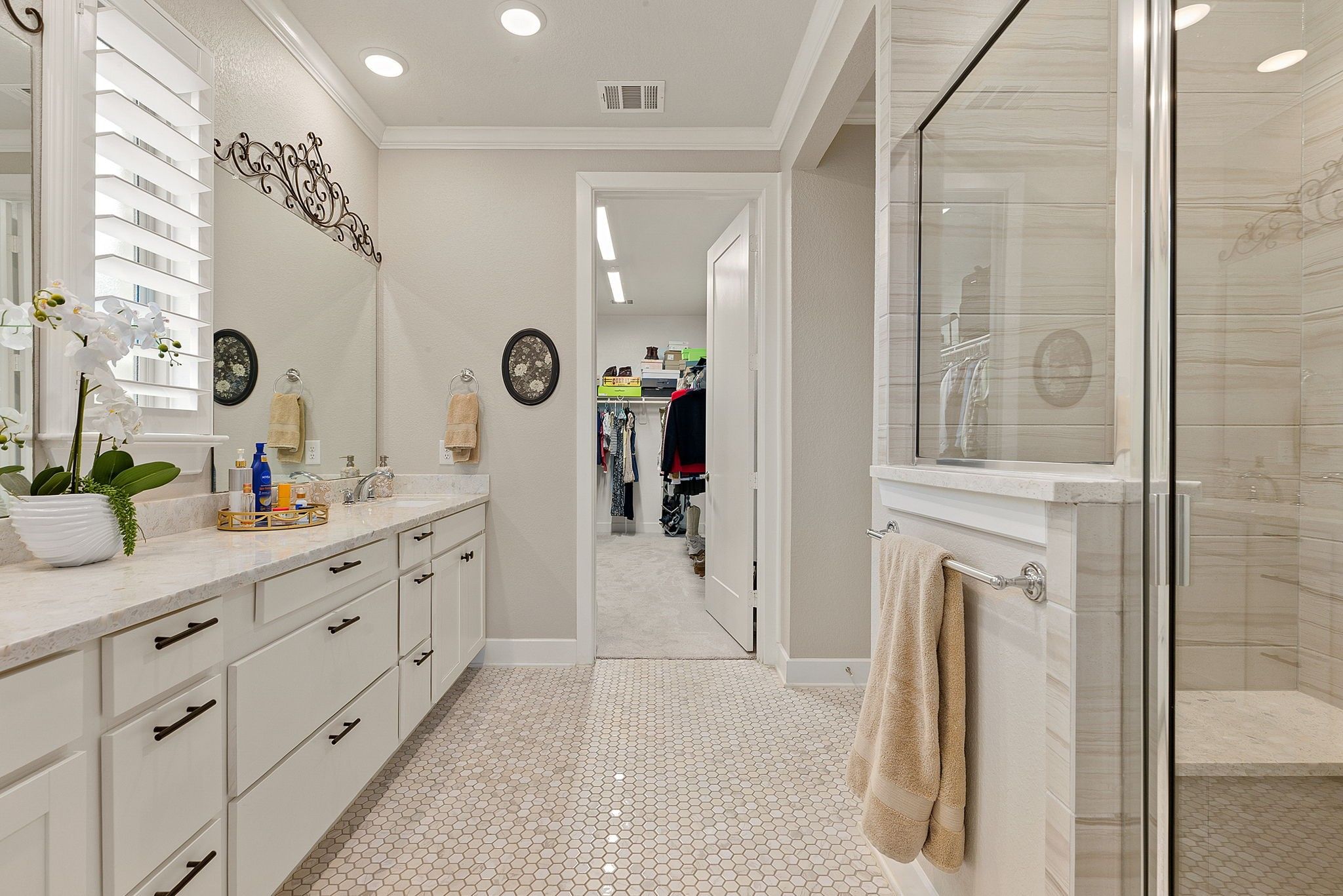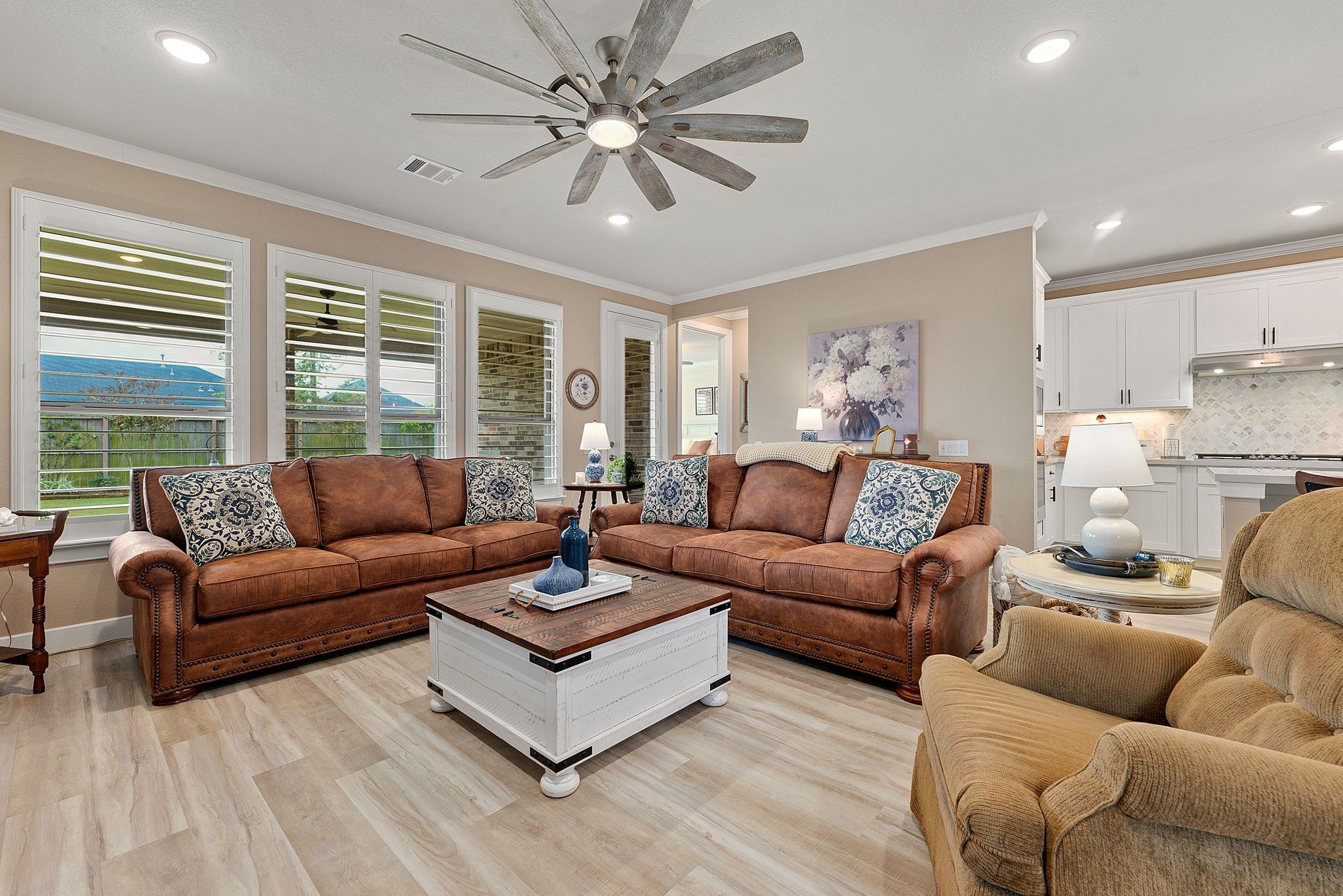 - Breakfast Bar, Crown Molding, Double Vanity, Kitchen/Family Room Combo, Pantry, Quartz Countertops, Tub Shower, Window Treatments, Ceiling Fan(s), Kitchen/Dining Combo, Programmable Thermostat