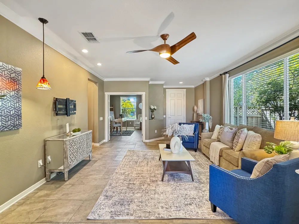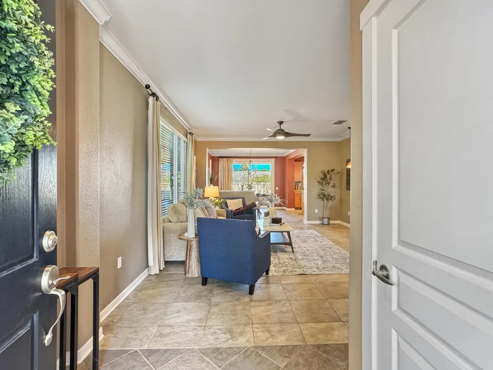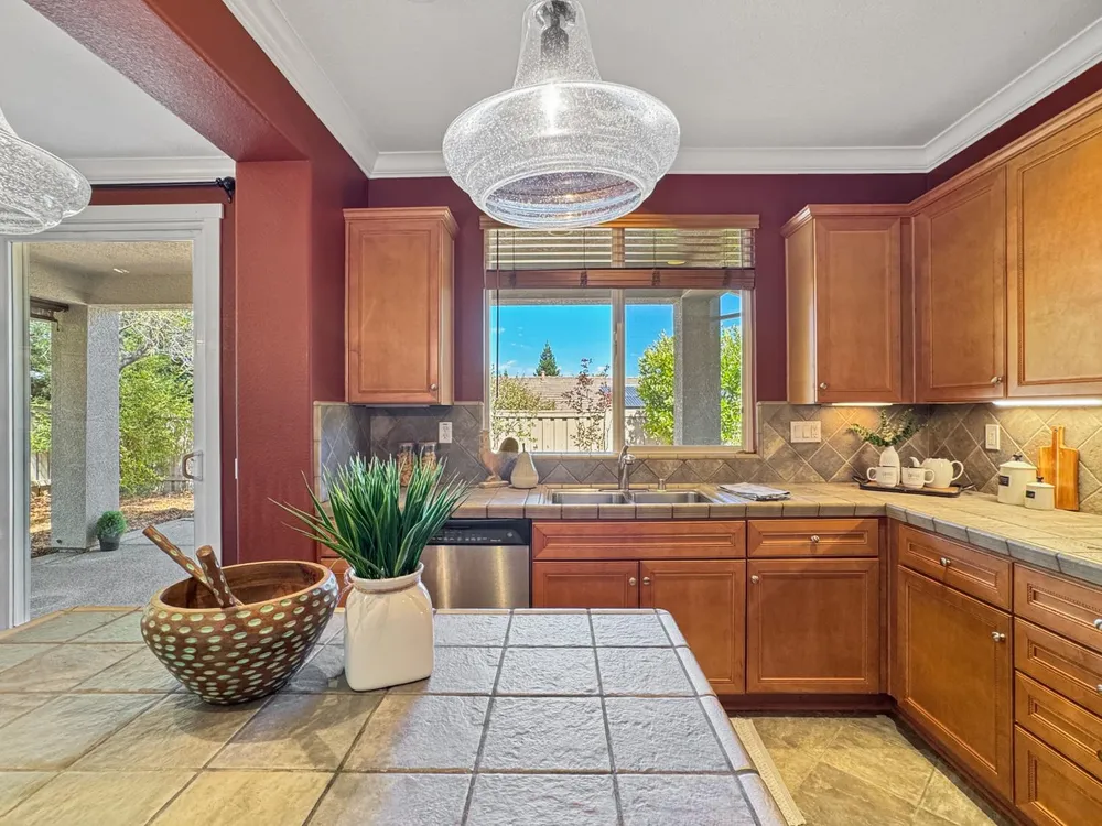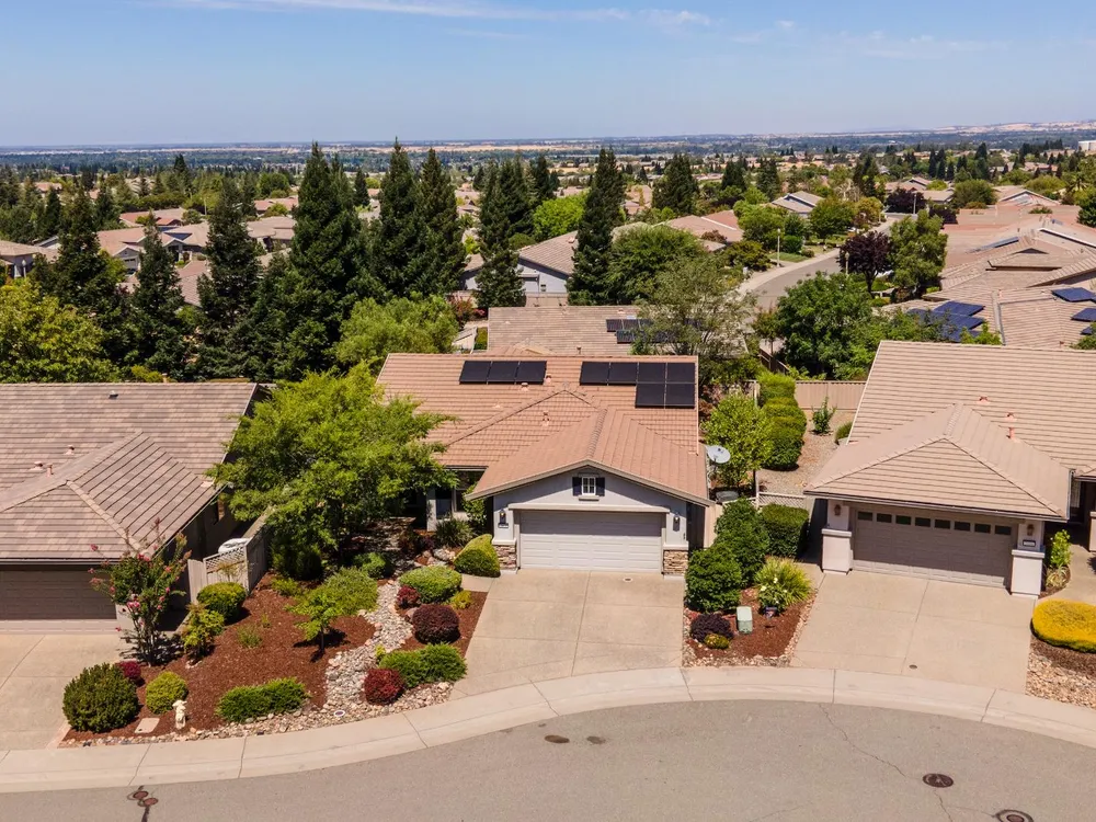 Beautiful Trinity Model home in the hills of Sun City Lincoln Hills with a private backyard on an elevated lot featuring 2 bedrooms, 2 bathrooms, and a versatile office/den with double doors and closet. The spacious kitchen showcases stainless steel appliances, upgraded honey maple cabinets, tile counters with matching backsplash, and pendant lighting. Slate-style tile and vinyl flooring flow throughout, while the bathrooms offer updated countertops and a new walk-in shower in the primary suite. Customized closets. Energy efficiency shines with a newer HVAC system, newer water heater, and a solar power system with back-up battery. Enjoy resort-style 55+ active adult living in Sun City Lincoln Hills with golf courses, fitness centers, swimming pools, clubhouses, walking trails, and a wide range of social clubs and activities. Be sure to see the video walkthrough.