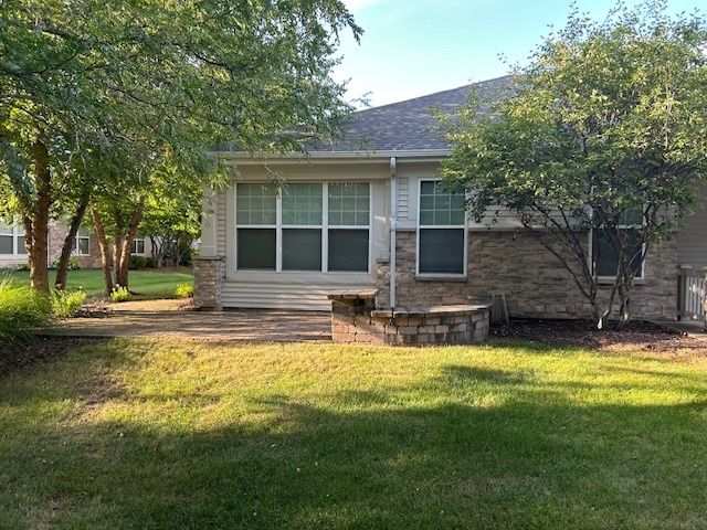 Sought after and rarely available Palmer model ranch home, 1885 sq. ft., (2) Bedrooms and a Den (possible 3rd Bedroom) in one of Naperville's finest 55+ communities. This unit is just a stones throw for the clubhouse. The unit is undergoing some improvements including complete interior painting and newly installed carpeting that will make this a move-in ready home. You enter into a Great Room flanked by the Den/possible 3rd Bedroom and the 2nd bedroom on the right. On the left the Kitchen & Breakfast area. The kitchen has Granite counter tops and SS appliances, 42" cabinets and Hardwood floors as does the Breakfast area. Out the door is a 11 x 7 paver brick patio. The Primary Bedroom Suite, has a large walk-in closet and a second 6 ft. closet. The Bath with a double sink, soaking tub and separate shower completes the Bedroom area. There is also a large laundry room and a separate storage room across from the 2 car attached garage. Carillon Club has an abundance of amenities: Guard gated 24 hour secure entry, Super clubhouse w/on site management , 3 pools, ( indoor, outdoor and children's), tennis & pickleball courts, (3)par 3 hole golf course, exercise facilities, walking /jogging path, park, lots of clubs and activities, trips and so much more. Forget lawn care and snow shoveling.