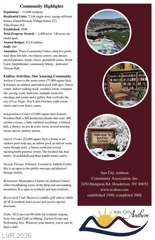 - See Sun City Anthem amenities