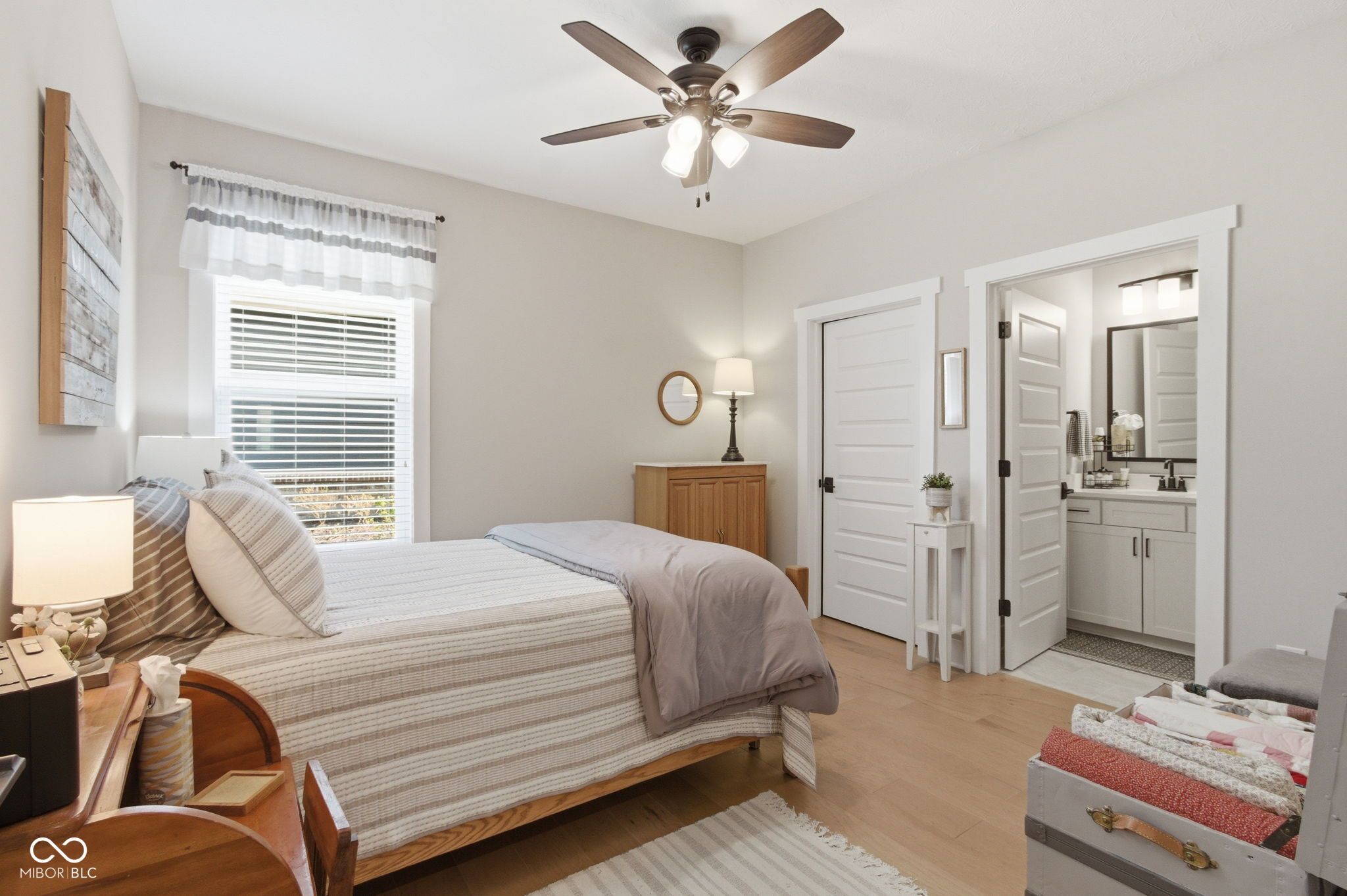 Welcome to this meticulously maintained showpiece in Kimblewick! The coveted Renown plan includes three bedrooms, all with en-suite bathrooms plus a half-bath for guests. The primary suite features hardwood floors, a dramatic tray ceiling, dual walk-in closets with direct access to the laundry room, and a large walk-in, zero threshold shower. The heart of the home is open, inviting and well-equipped! You'll love cooking in and gathering around the gorgeous kitchen complete with an expansive center island, walk-in pantry, and loads of cabinet space with soft-close doors and pull-out shelves. This home is wired for a security system and ceiling speakers in the living room, kitchen and primary bedroom for an immersive sound experience. Enjoy peace and privacy on the extended covered patio with a gas line for a grill. There's plenty of space for storage and hobbies in the 3-car garage with epoxied floors. No expense has been spared with incredible after-market additions including window blinds throughout, custom closets and mirrors, Powder Room Vanity, landscaping, irrigation and new water heater (2025). This home is situated within walking distance to the resort-style amenities at the Clubhouse!