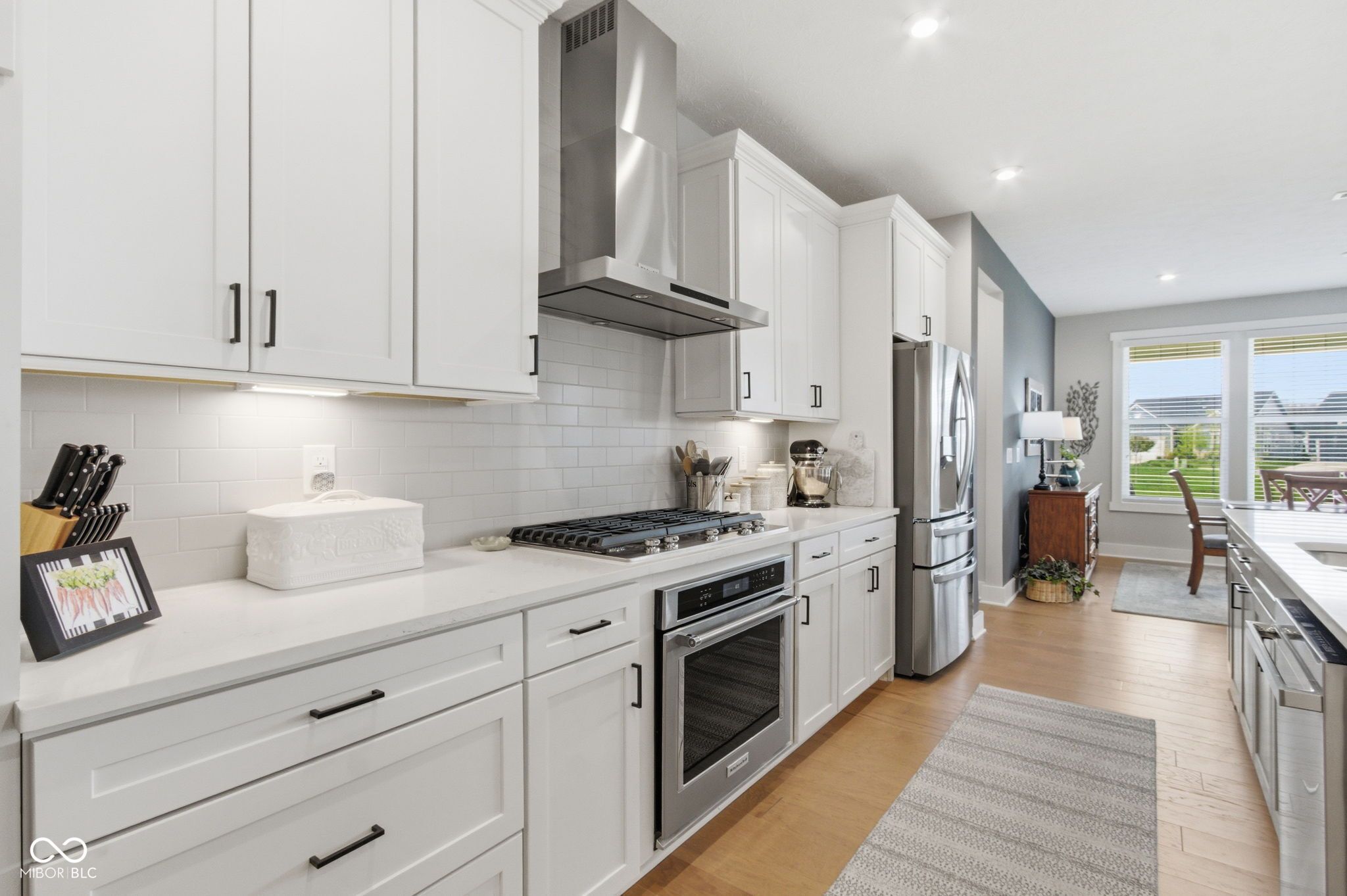 - Gas Cooktop, Dishwasher, Dryer, ENERGY STAR Qualified Appliances, Disposal, Gas Water Heater, Exhaust Fan, Microwave, Double Oven, Range Hood, Refrigerator, Washer