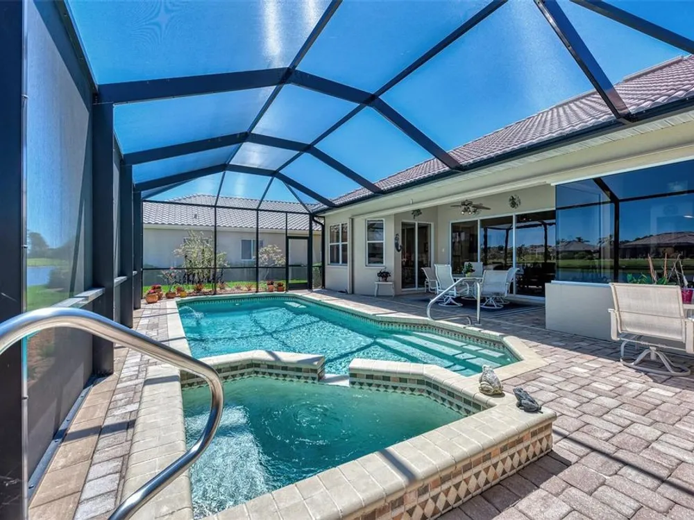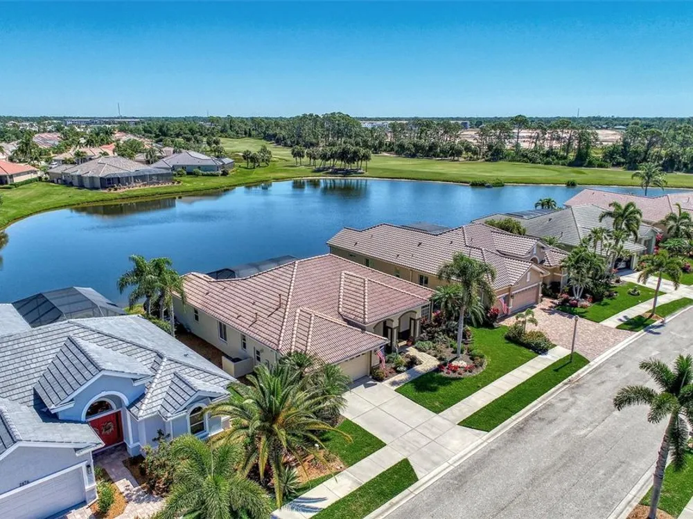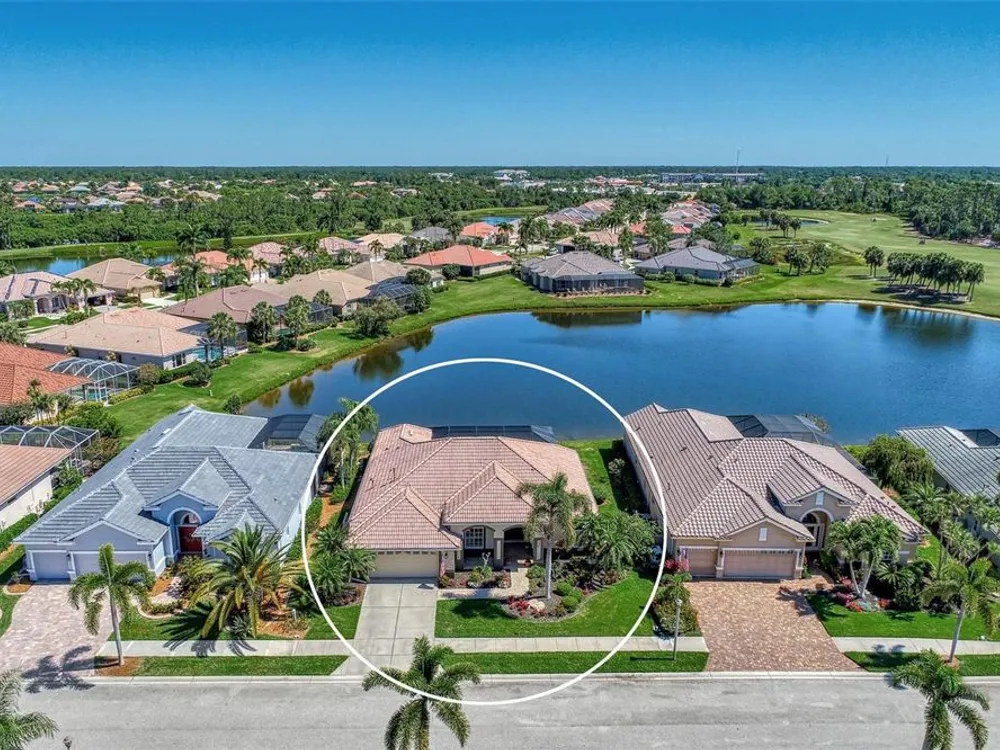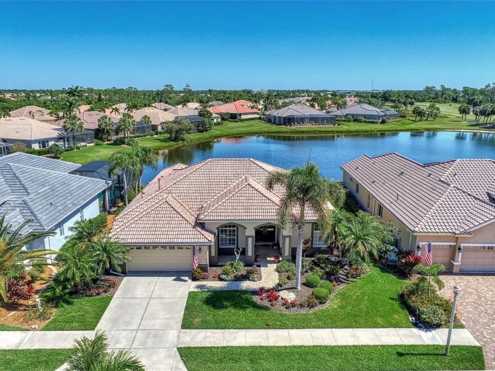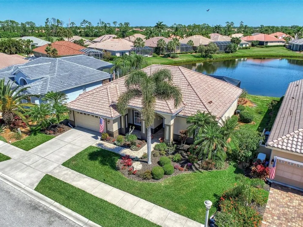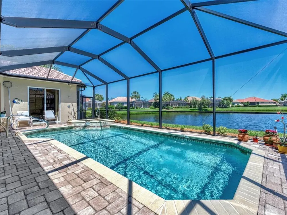Heron Creek Golf & CC *STUNNING LAKE VIEW * Estate home on a wide premium lot w/ 3 BEDROOMS. 2 BATHS, HEATED POOL & SPA!! ==NEW BARREL TILE ROOF 2024 ++ Savor PANORAMIC Lake and long Golf (Marsh #5) views and enjoy the tranquility and natural beauty of this private home site. This casually elegant WHITEHALL EXECUTIVE home boasts a popular floor plan well suited to "easy living" & entertaining alike with just under 2100 square ft under air, 3 bedrooms, 2 full baths, and inviting POOL/SPA. This beautiful Lake Front Home site is located on a cul-da-sac and is just a quick cart ride to the Clubhouse/ Fitness center & Publix. She has lovely curb appeal accentuated with colorful tropical landscaping, swaying palms and a handsome pavered walkway, as well as attractive architectural accents like a wonderful covered entry with double arches, stately columns, and beautiful glass front doors to welcome you in! Once you step inside you can leave the world behind as the view will immediately take your breath and worries away and welcome you home to your private oasis!! This home shows bright & light, and the flowing layout features a desirable GREAT ROOM, open kitchen, separate dining room, 2 guestrooms w/full bath (easy access to pool), and a spacious master bedroom w/ en-suite bath. The Great room, kitchen and Master suite open and look on to the pool area and sparkling lake! Interior design features include a calming neutral color pallet cool ceramic tile , and volume and vaulted ceilings that create a lovely open and airy vibe. The smartly designed kitchen has generous counter space with lots of room for party prep, STAINLESS STEEL appliances including a KITCHEN AID double oven NATURAL GAS RANGE with griddle accessory, closet pantry & steepled rich wood cabinetry and granite countertops. You can enjoy your morning cup of coffee in the adjacent dinette area and watch the native wildlife enjoying the lake through the clear view aquarium glass window. There is also separate laundry room that has lots of storage space with a handy laundry sink. The great room is the perfect place for family & friends to gather & cascading sliding glass doors open to the lanai and pool area bringing the outside in. After a long day on the course, you can retire to the Master Retreat which has a en suite bath w/split vanities, relaxing garden tub, large shower and double closets! This home home is perfectly suited to the buyer looking for a meticulously maintained home that's not too big and not too small with a fabulous view .....Don't hesitate come see this home ASAP as these "just right" sized homes don't last long on the market !! Heron Creek offers exceptional amenities including a 21,000 sq ft club house, 27 holes of Championship golf Arthur Hills design, resort style pool & spa, a robust social activity calendar, fitness center, Tennis courts & formal & casual dining options! Club Membership is required w/3 membership levels offered beginning at $268/month.*NO CDD FEES * LOW HOA FEES include lawn care, trimmings mulching, irrigation, Cable & HIGH-SPEED INTERNET & Gated entry, conveniently located w/easy access to I-75 &US-41, the Cocoa Plum Shopping , Myakkahatchee Creek trails, Blue Ridge Park, WELLEN PARK, Braves Stadium, COSTCO & the SMH health SYSTEM++++ FLOOD ZONE X ++++NO FLOOD INSURANCE REQUIRED