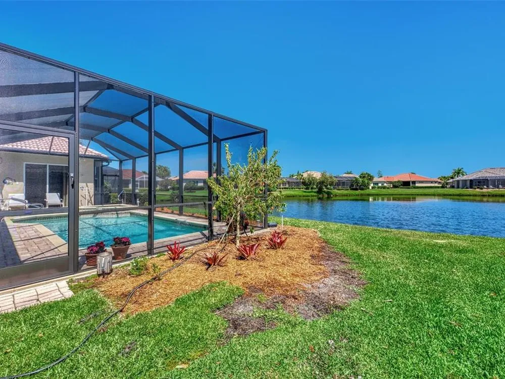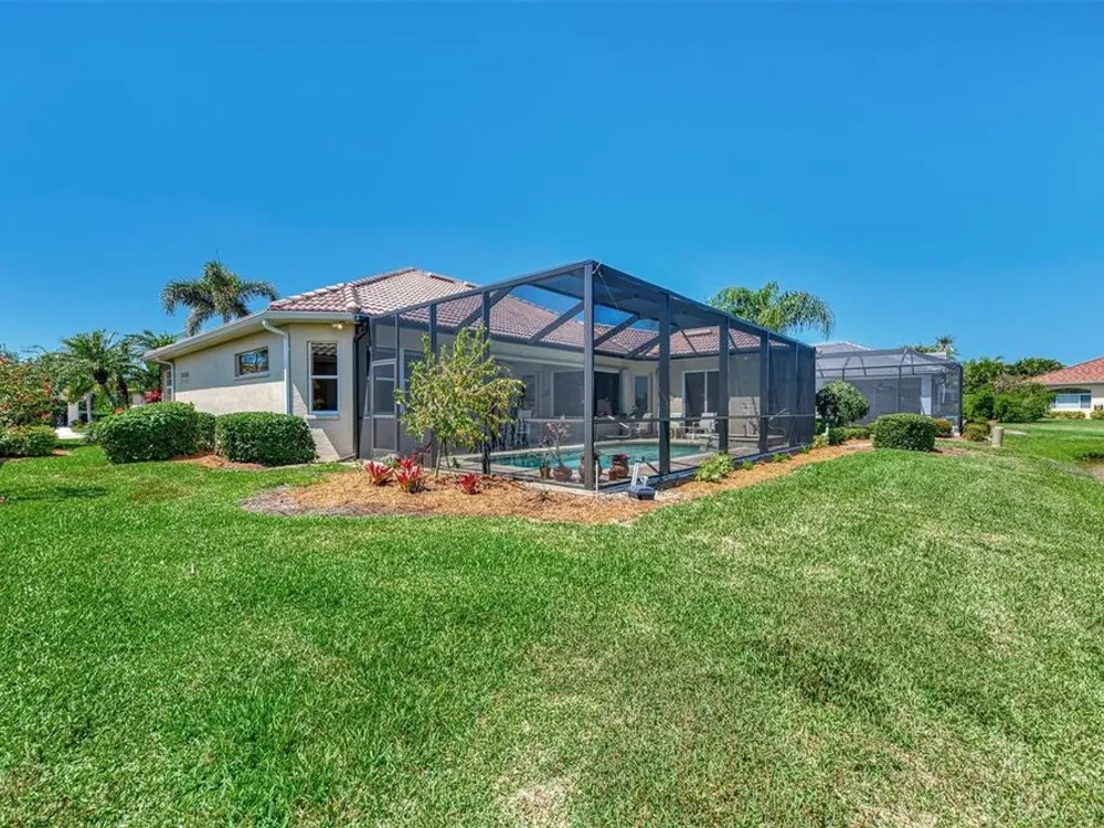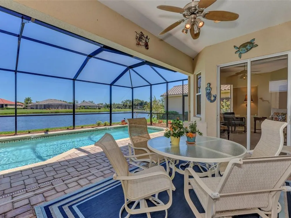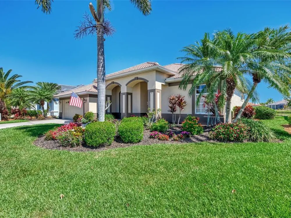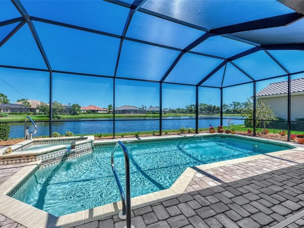 Heron Creek Golf & CC *STUNNING LAKE VIEW * Estate home on a wide premium lot w/ 3 BEDROOMS. 2 BATHS, HEATED POOL & SPA!! ==NEW BARREL TILE ROOF 2024 ++ Savor PANORAMIC Lake and long Golf (Marsh #5) views and enjoy the tranquility and natural beauty of this private home site. This casually elegant WHITEHALL EXECUTIVE home boasts a popular floor plan well suited to "easy living" & entertaining alike with just under 2100 square ft under air, 3 bedrooms, 2 full baths, and inviting POOL/SPA. This beautiful Lake Front Home site is located on a cul-da-sac and is just a quick cart ride to the Clubhouse/ Fitness center & Publix. She has lovely curb appeal accentuated with colorful tropical landscaping, swaying palms and a handsome pavered walkway, as well as attractive architectural accents like a wonderful covered entry with double arches, stately columns, and beautiful glass front doors to welcome you in! Once you step inside you can leave the world behind as the view will immediately take your breath and worries away and welcome you home to your private oasis!! This home shows bright & light, and the flowing layout features a desirable GREAT ROOM, open kitchen, separate dining room, 2 guestrooms w/full bath (easy access to pool), and a spacious master bedroom w/ en-suite bath. The Great room, kitchen and Master suite open and look on to the pool area and sparkling lake! Interior design features include a calming neutral color pallet cool ceramic tile , and volume and vaulted ceilings that create a lovely open and airy vibe. The smartly designed kitchen has generous counter space with lots of room for party prep, STAINLESS STEEL appliances including a KITCHEN AID double oven NATURAL GAS RANGE with griddle accessory, closet pantry & steepled rich wood cabinetry and granite countertops. You can enjoy your morning cup of coffee in the adjacent dinette area and watch the native wildlife enjoying the lake through the clear view aquarium glass window. There is also separate laundry room that has lots of storage space with a handy laundry sink. The great room is the perfect place for family & friends to gather & cascading sliding glass doors open to the lanai and pool area bringing the outside in. After a long day on the course, you can retire to the Master Retreat which has a en suite bath w/split vanities, relaxing garden tub, large shower and double closets! This home home is perfectly suited to the buyer looking for a meticulously maintained home that's not too big and not too small with a fabulous view .....Don't hesitate come see this home ASAP as these "just right" sized homes don't last long on the market !! Heron Creek offers exceptional amenities including a 21,000 sq ft club house, 27 holes of Championship golf Arthur Hills design, resort style pool & spa, a robust social activity calendar, fitness center, Tennis courts & formal & casual dining options! Club Membership is required w/3 membership levels offered beginning at $268/month.*NO CDD FEES * LOW HOA FEES include lawn care, trimmings mulching, irrigation, Cable & HIGH-SPEED INTERNET & Gated entry, conveniently located w/easy access to I-75 &US-41, the Cocoa Plum Shopping , Myakkahatchee Creek trails, Blue Ridge Park, WELLEN PARK, Braves Stadium, COSTCO & the SMH health SYSTEM++++ FLOOD ZONE X ++++NO FLOOD INSURANCE REQUIRED