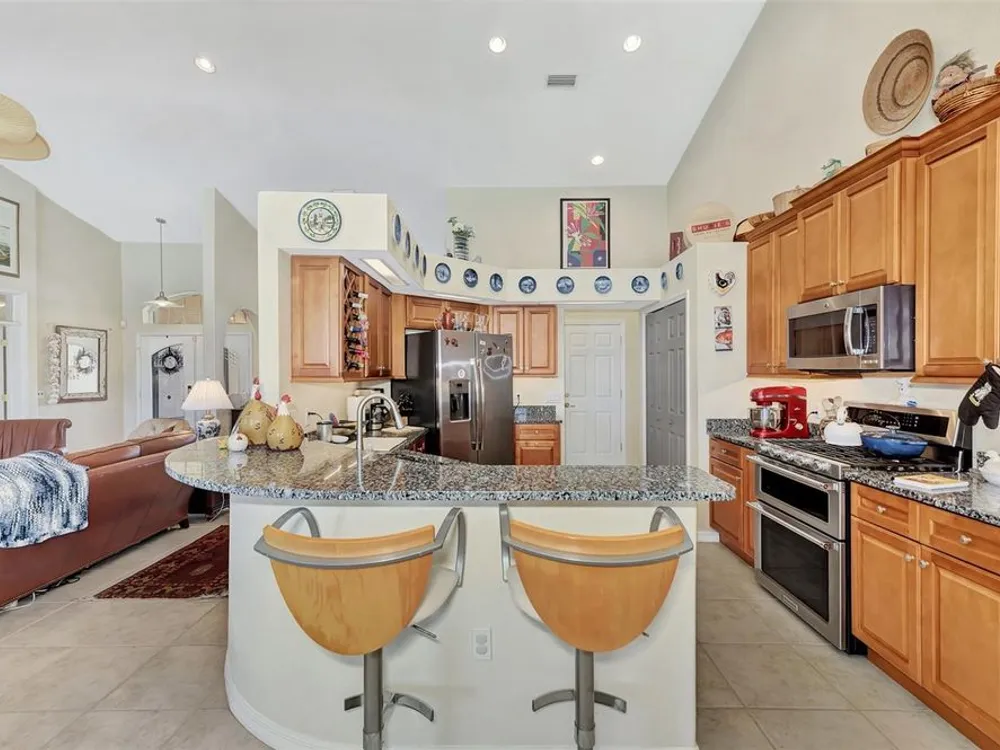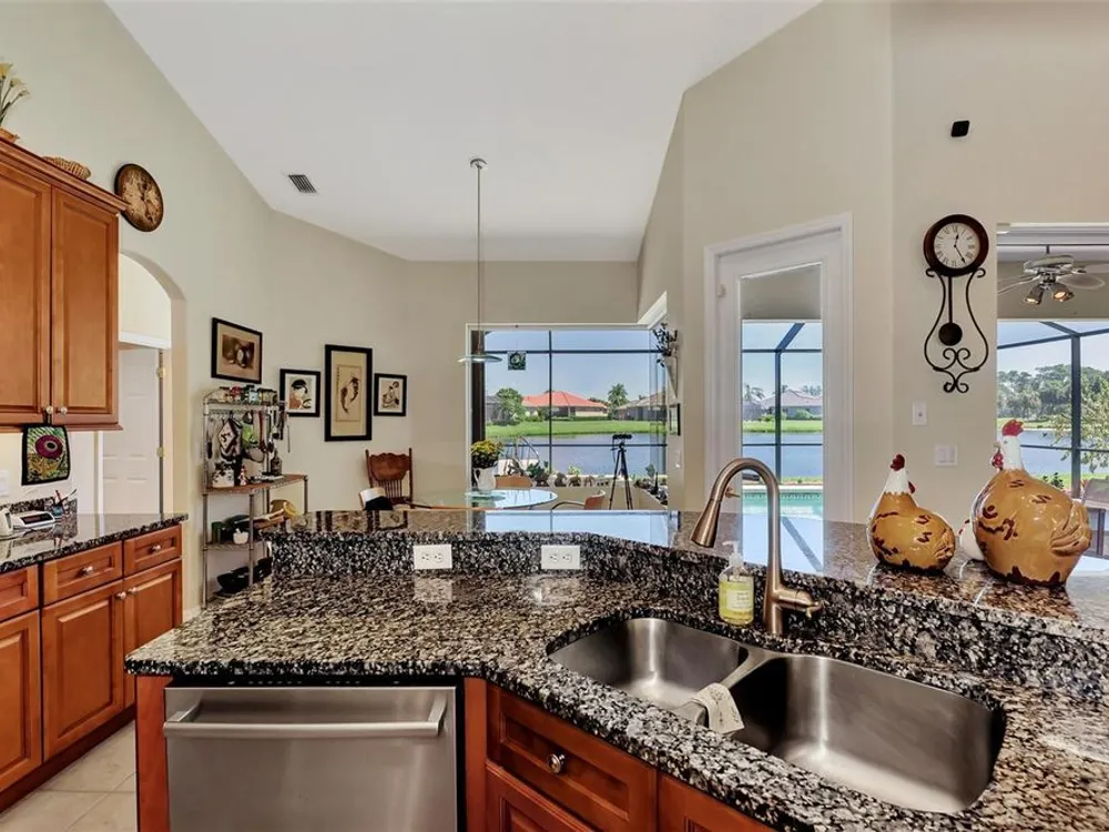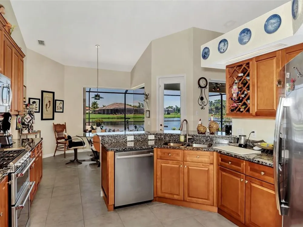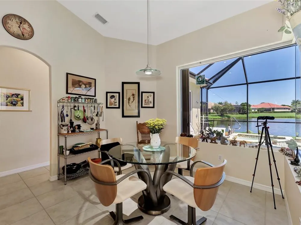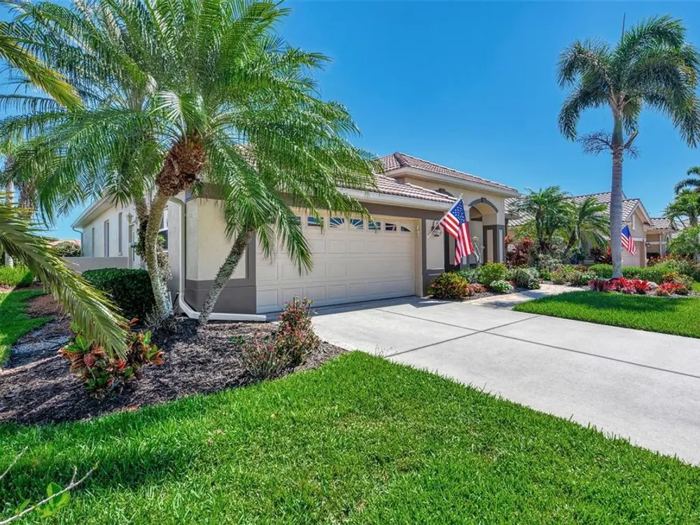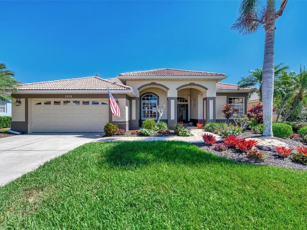 Heron Creek Golf & CC *STUNNING LAKE VIEW * Estate home on a wide premium lot w/ 3 BEDROOMS. 2 BATHS, HEATED POOL & SPA!! ==NEW BARREL TILE ROOF 2024 ++ Savor PANORAMIC Lake and long Golf (Marsh #5) views and enjoy the tranquility and natural beauty of this private home site. This casually elegant WHITEHALL EXECUTIVE home boasts a popular floor plan well suited to "easy living" & entertaining alike with just under 2100 square ft under air, 3 bedrooms, 2 full baths, and inviting POOL/SPA. This beautiful Lake Front Home site is located on a cul-da-sac and is just a quick cart ride to the Clubhouse/ Fitness center & Publix. She has lovely curb appeal accentuated with colorful tropical landscaping, swaying palms and a handsome pavered walkway, as well as attractive architectural accents like a wonderful covered entry with double arches, stately columns, and beautiful glass front doors to welcome you in! Once you step inside you can leave the world behind as the view will immediately take your breath and worries away and welcome you home to your private oasis!! This home shows bright & light, and the flowing layout features a desirable GREAT ROOM, open kitchen, separate dining room, 2 guestrooms w/full bath (easy access to pool), and a spacious master bedroom w/ en-suite bath. The Great room, kitchen and Master suite open and look on to the pool area and sparkling lake! Interior design features include a calming neutral color pallet cool ceramic tile , and volume and vaulted ceilings that create a lovely open and airy vibe. The smartly designed kitchen has generous counter space with lots of room for party prep, STAINLESS STEEL appliances including a KITCHEN AID double oven NATURAL GAS RANGE with griddle accessory, closet pantry & steepled rich wood cabinetry and granite countertops. You can enjoy your morning cup of coffee in the adjacent dinette area and watch the native wildlife enjoying the lake through the clear view aquarium glass window. There is also separate laundry room that has lots of storage space with a handy laundry sink. The great room is the perfect place for family & friends to gather & cascading sliding glass doors open to the lanai and pool area bringing the outside in. After a long day on the course, you can retire to the Master Retreat which has a en suite bath w/split vanities, relaxing garden tub, large shower and double closets! This home home is perfectly suited to the buyer looking for a meticulously maintained home that's not too big and not too small with a fabulous view .....Don't hesitate come see this home ASAP as these "just right" sized homes don't last long on the market !! Heron Creek offers exceptional amenities including a 21,000 sq ft club house, 27 holes of Championship golf Arthur Hills design, resort style pool & spa, a robust social activity calendar, fitness center, Tennis courts & formal & casual dining options! Club Membership is required w/3 membership levels offered beginning at $268/month.*NO CDD FEES * LOW HOA FEES include lawn care, trimmings mulching, irrigation, Cable & HIGH-SPEED INTERNET & Gated entry, conveniently located w/easy access to I-75 &US-41, the Cocoa Plum Shopping , Myakkahatchee Creek trails, Blue Ridge Park, WELLEN PARK, Braves Stadium, COSTCO & the SMH health SYSTEM++++ FLOOD ZONE X ++++NO FLOOD INSURANCE REQUIRED