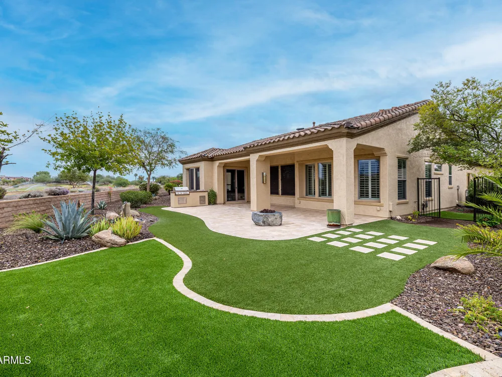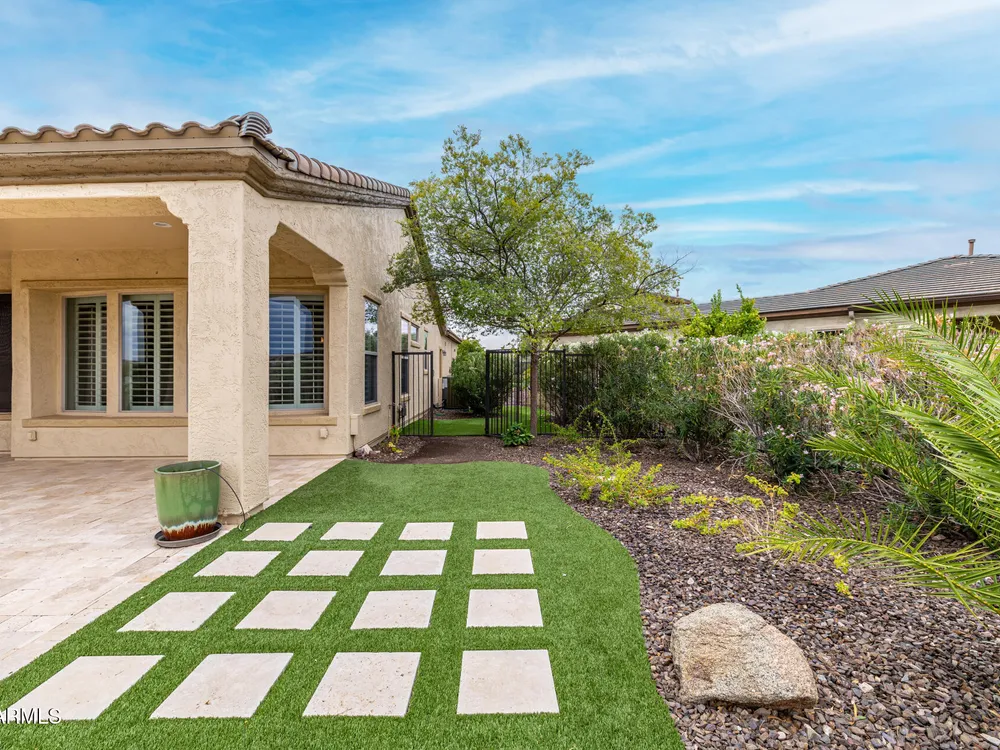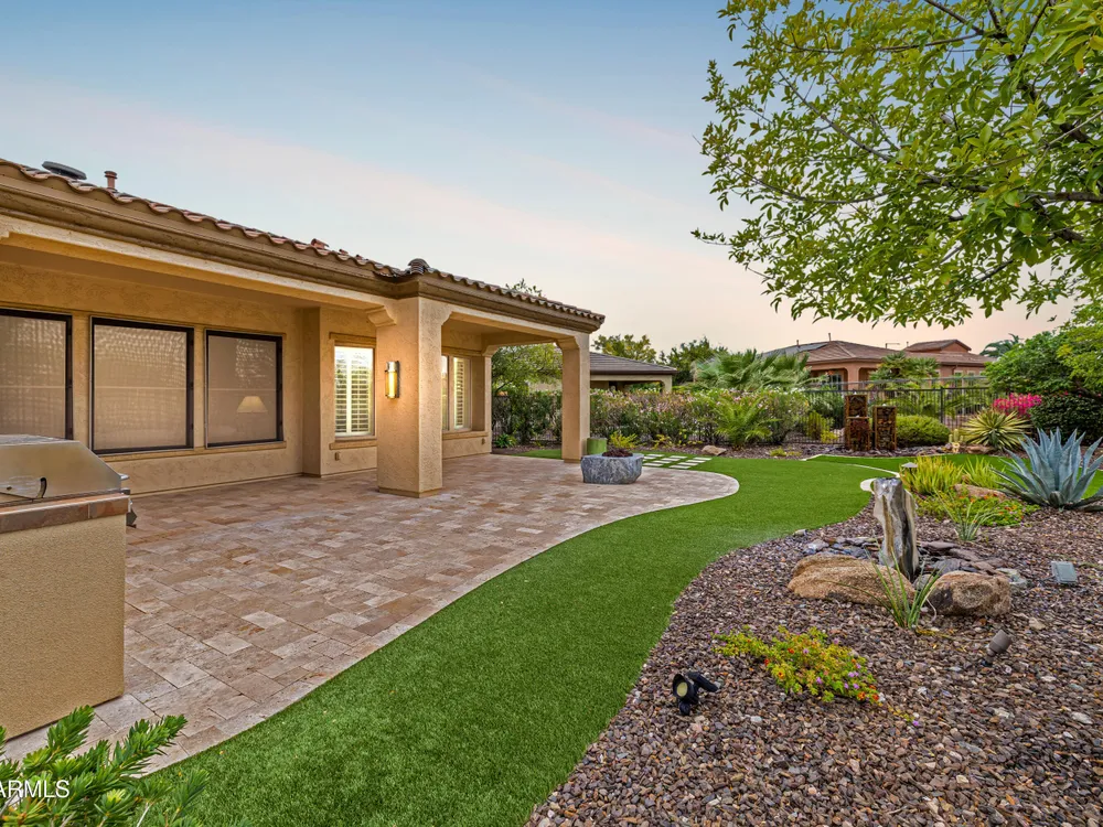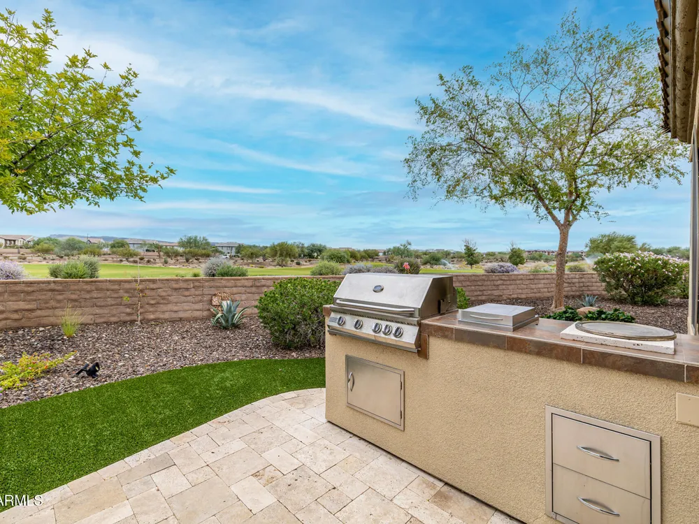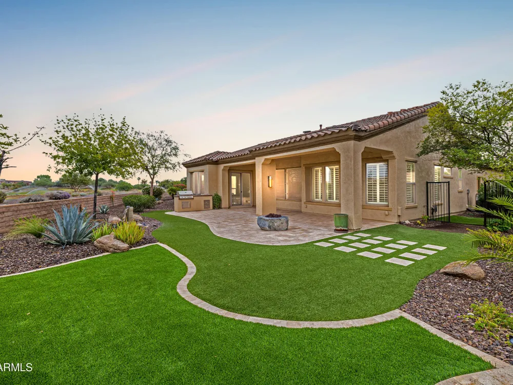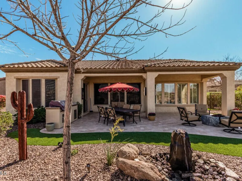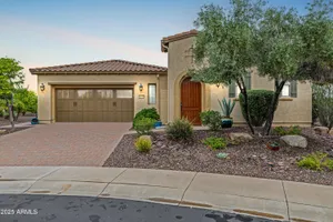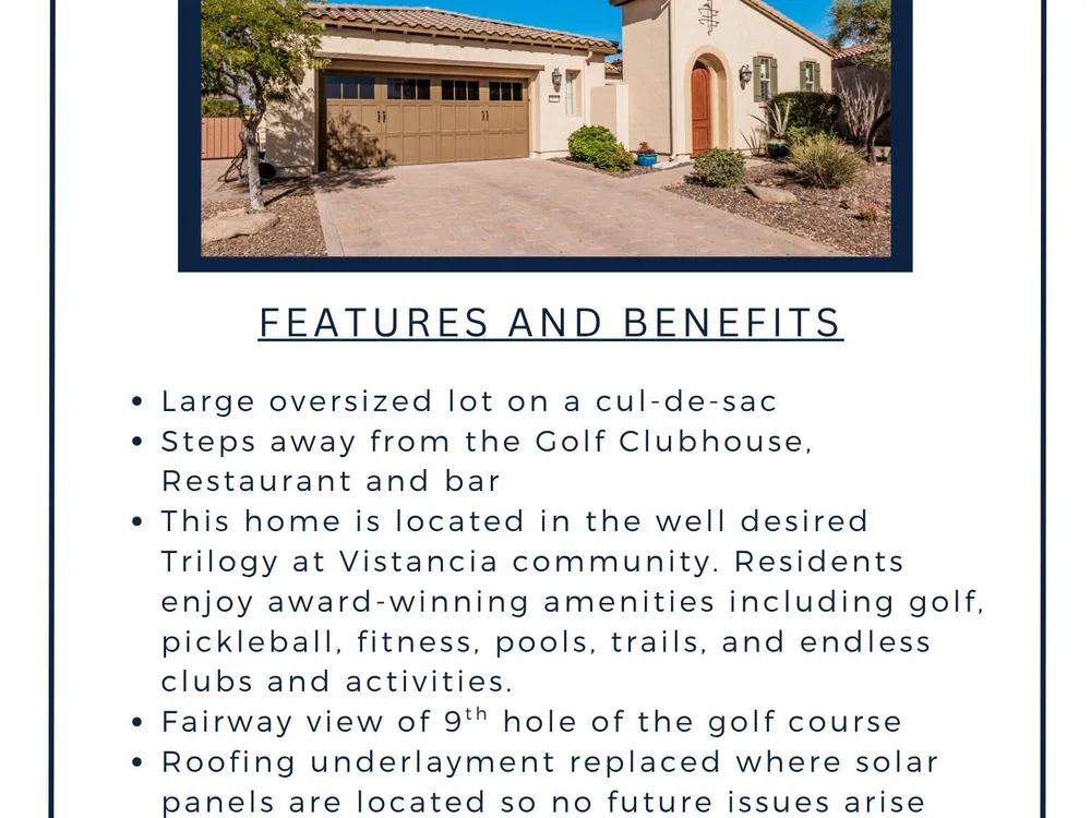Welcome to this beautifully upgraded 3-bedroom, 3-bathroom residence offering 2,120 sq ft of elegant living space nestled on an expansive 11,000+ sq ft lot with breathtaking fairway views of the 9th hole. **Please see the full drone walkthrough video located in photo tab.** Located on a quiet cul-de-sac in the highly coveted Trilogy at Vistancia - one of Arizona's premier 55+ resort-style communities - this home is the epitome of luxury, lifestyle, and comfort. Just steps away from the golf clubhouse, V's Taproom, and the Kiva Club, this home offers the ultimate convenience and resort-style living with award-winning amenities, including championship golf, pickleball, fitness centers, pools, miles of trails, and an abundance of social clubs and activities. Step inside to find a freshly repainted interior, upgraded washer and dryer, and a gourmet kitchen featuring a brand-new reverse osmosis water filtration system in the kitchen, plus a new garbage disposal. The open floor plan is ideal for entertaining or relaxing while taking in the serene golf course views. Practical updates ensure peace of mind, including a replaced AC condenser, updated roofing underlayment beneath the solar panels to ensure a long lasting roof. With over $30,000 in professional landscaping upgrades create a true outdoor retreat including an enclosed area for dogs with turf. This is an incredibly well maintained home you don't want to miss!