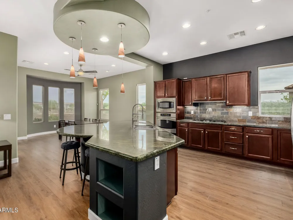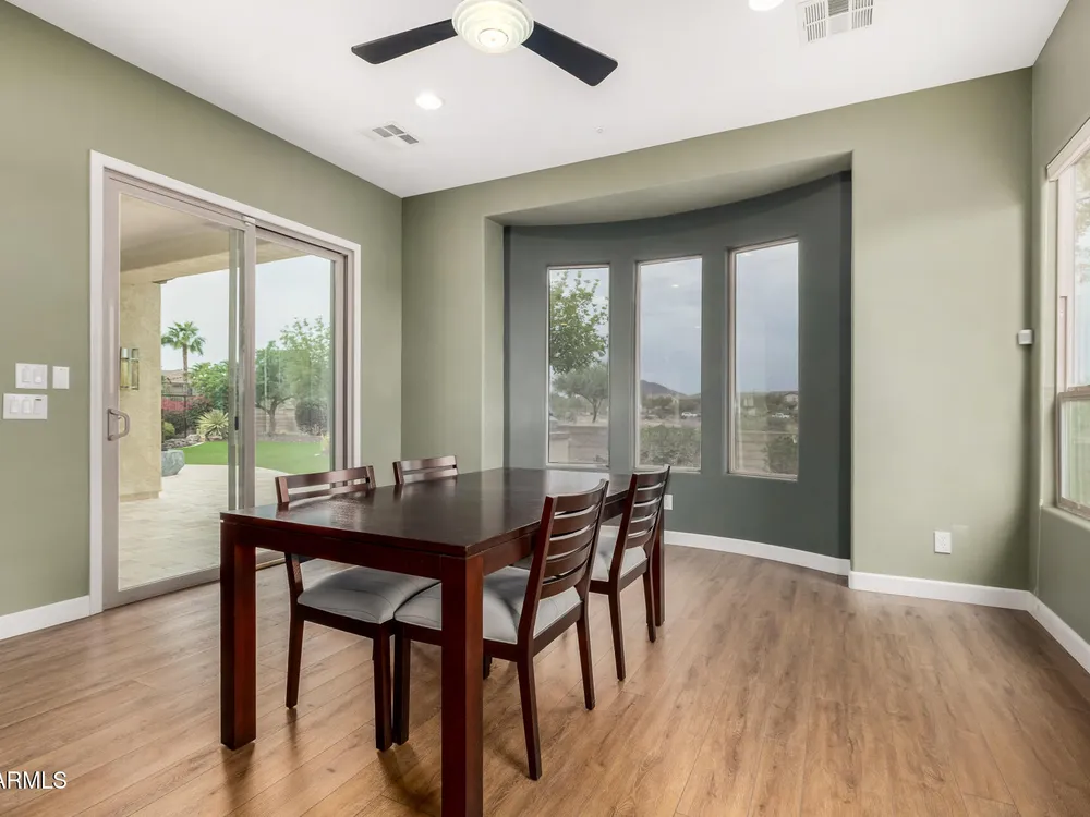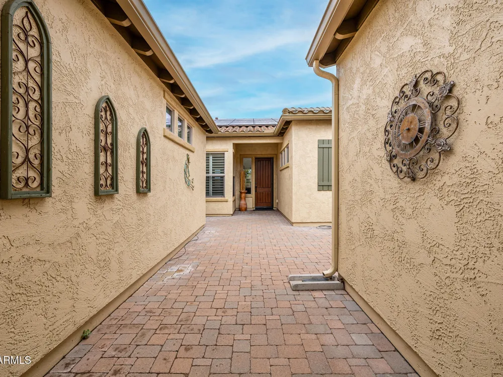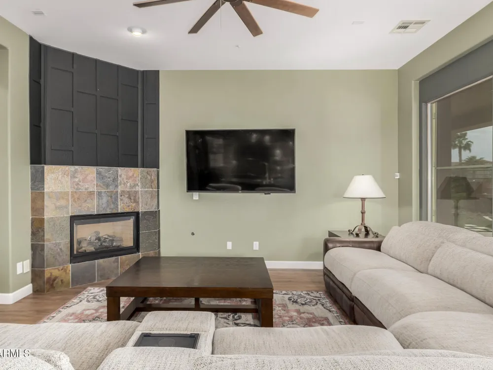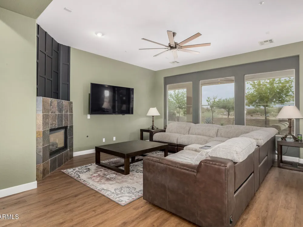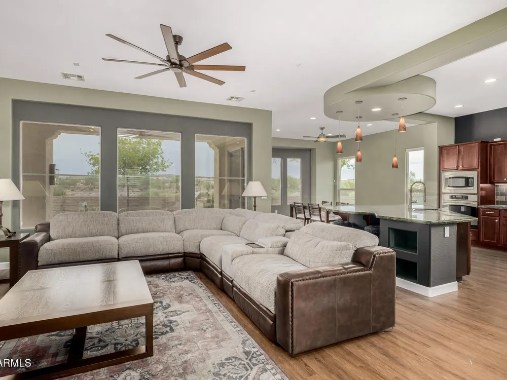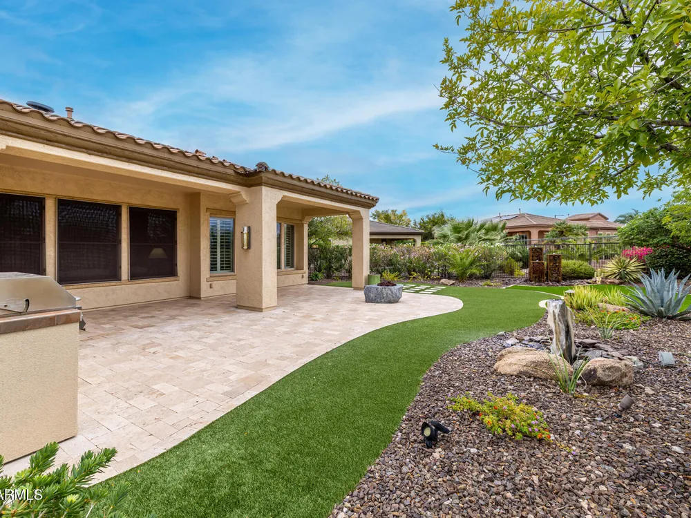 Welcome to this beautifully upgraded 3-bedroom, 3-bathroom residence offering 2,120 sq ft of elegant living space nestled on an expansive 11,000+ sq ft lot with breathtaking fairway views of the 9th hole. **Please see the full drone walkthrough video located in photo tab.** Located on a quiet cul-de-sac in the highly coveted Trilogy at Vistancia - one of Arizona's premier 55+ resort-style communities - this home is the epitome of luxury, lifestyle, and comfort. Just steps away from the golf clubhouse, V's Taproom, and the Kiva Club, this home offers the ultimate convenience and resort-style living with award-winning amenities, including championship golf, pickleball, fitness centers, pools, miles of trails, and an abundance of social clubs and activities. Step inside to find a freshly repainted interior, upgraded washer and dryer, and a gourmet kitchen featuring a brand-new reverse osmosis water filtration system in the kitchen, plus a new garbage disposal. The open floor plan is ideal for entertaining or relaxing while taking in the serene golf course views. Practical updates ensure peace of mind, including a replaced AC condenser, updated roofing underlayment beneath the solar panels to ensure a long lasting roof. With over $30,000 in professional landscaping upgrades create a true outdoor retreat including an enclosed area for dogs with turf. This is an incredibly well maintained home you don't want to miss!