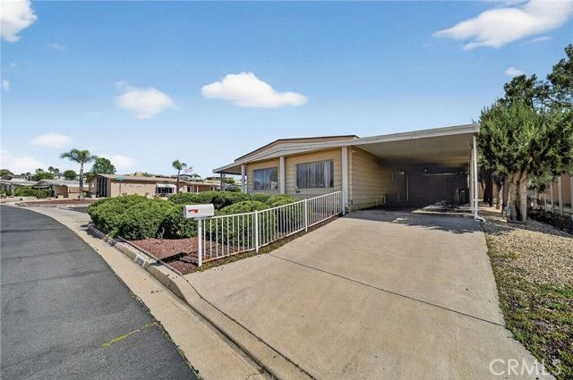 Welcome to this charming 2-bedroom, 2-bathroom manufactured home in the heart of Murrieta! Offering 1,464 sq. ft. of comfortable living space on a 4,356 sq. ft. lot, this home is nestled in a highly desired community, Spring Knolls known for its amenities and convenient lifestyle.Inside, you’ll find spacious living areas filled with natural light and a functional floor plan perfect for everyday living. The community provides access to a sparkling pool, relaxing spa/hot tub, and a clubhouse ideal for social gatherings. Nearby golf courses add to the appeal, while neighborhood streetlights create a welcoming atmosphere.One of the standout features of this home is its centralized location—just minutes from freeway access, the Murrieta Hot Springs Resort, local grocery stores, and fitness centers. Families will also appreciate being part of the Murrieta Valley Unified School District, with Alta Murrieta Elementary, Warm Springs Middle, and Vista Murrieta High School close by. Financing available with 21st mortgage.