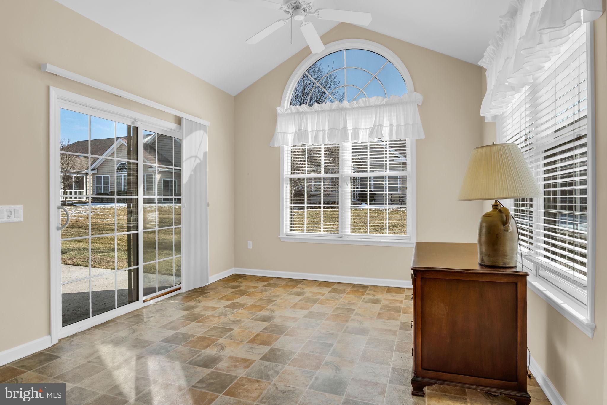 Traditions of America at Silver Spring – Spacious single-story home featuring an open floor plan with 2 bedrooms, 2 bathrooms, and a private flex space that could be an office, den or media room The large kitchen is designed for both everyday living and entertaining, complete with upgraded cabinetry and beautiful quartz countertops, flowing seamlessly into the main living and dining areas. Enjoy the bright and inviting sunroom with a cathedral ceiling, offering additional space to relax and unwind. A neutral palette throughout provides the perfect backdrop for your personal style and finishing touches. Additional highlights include a 2-car garage with extra storage space, providing both convenience and functionality. Located in a sought-after active adult community, residents enjoy resort-style amenities including a clubhouse, indoor and outdoor pools, and pickleball courts, offering a vibrant, low-maintenance lifestyle.