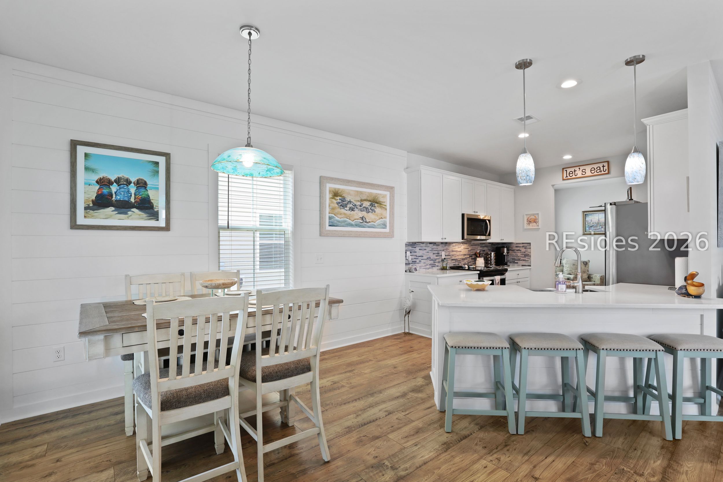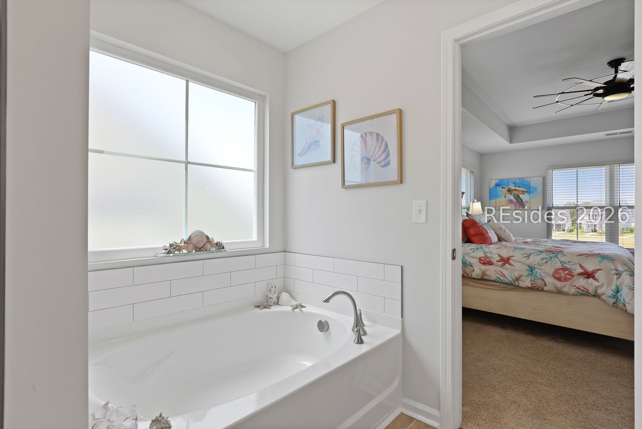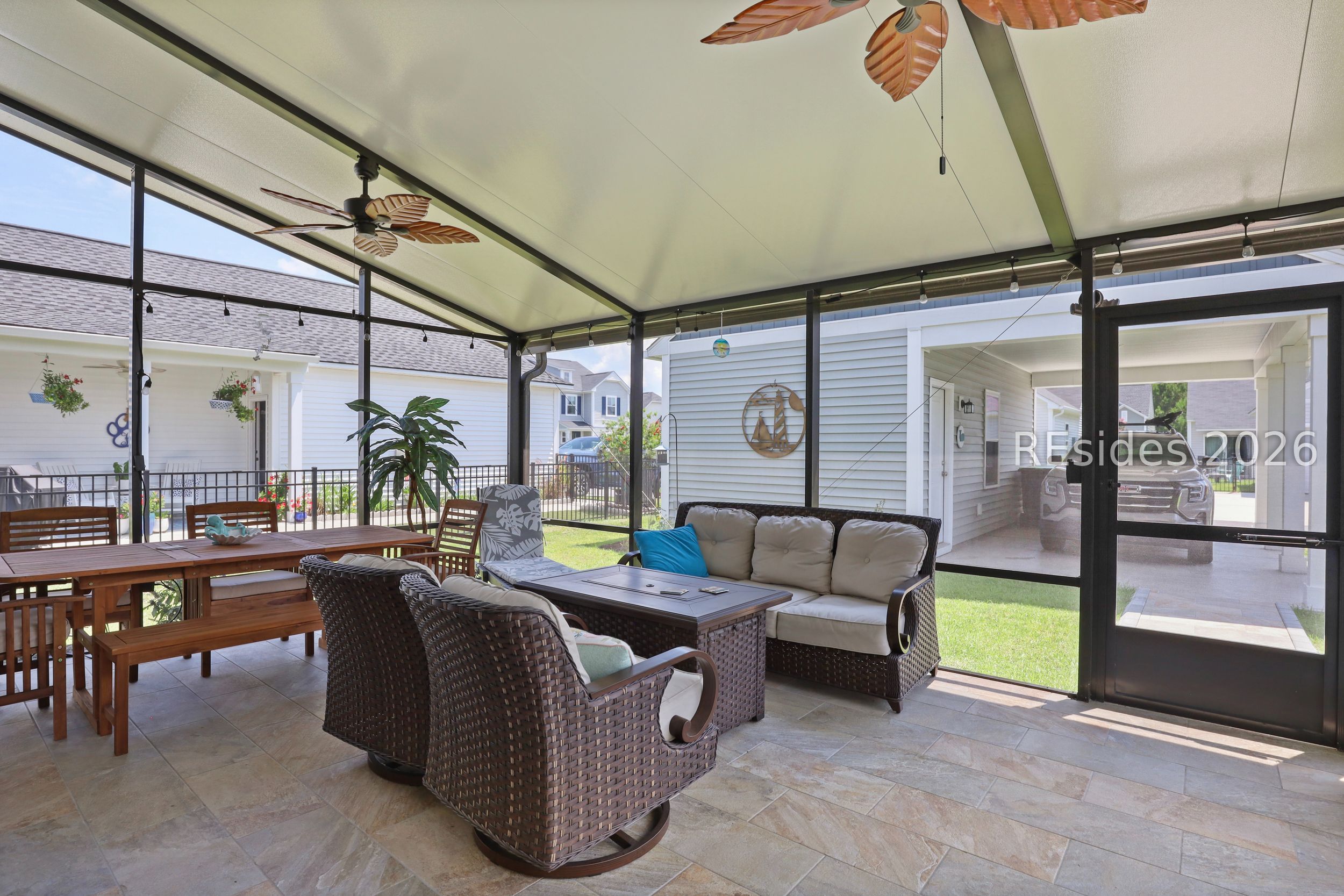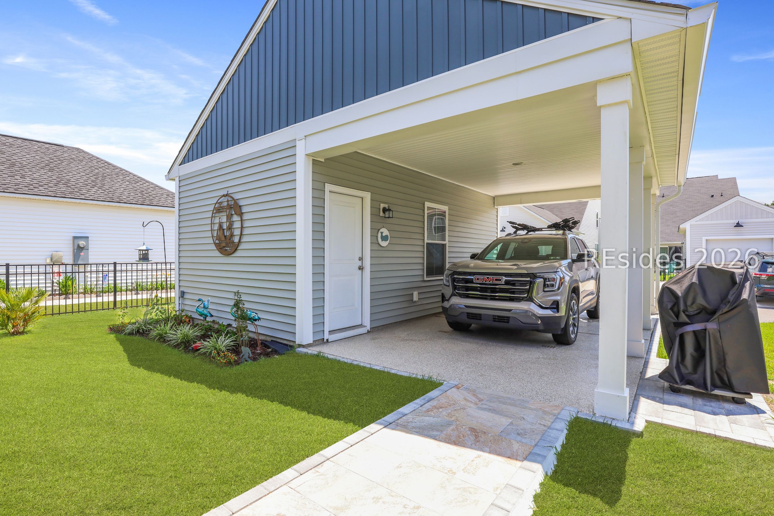 Discover effortless Lowcountry living in Hilton Head Lakes, a sought-after community known for resort-style amenities and leisure trails with scenic lake views. This almost-new home delivers a chic coastal vibe with sparkling quartz countertops, stainless steel appliances, durable LVP flooring, and a cozy electric fireplace anchoring the main living space. There are $65,000 worth of builder upgrades, not to mention another $60,000 by the owner to include custom shiplap in the great room. The thoughtful floor plan offers 3 bedrooms and 2.5 baths, plus a versatile den and airy loft-perfect for a home office, media room, or craft space. The laundry is conveniently located on the 2nd floor. Step outside to the expansive hard-roof lanai, a true extension of the living area or enjoy sunsets from the inviting front porch. Practical touches shine with a one-car garage with storage, added carport with custom tile and parking pad.