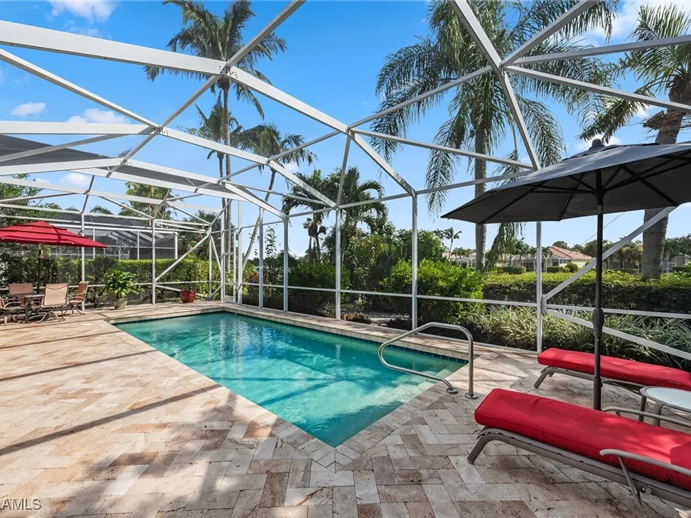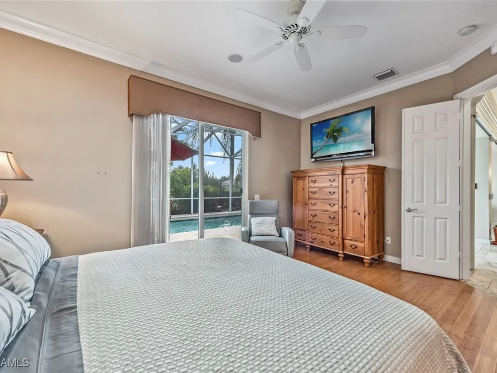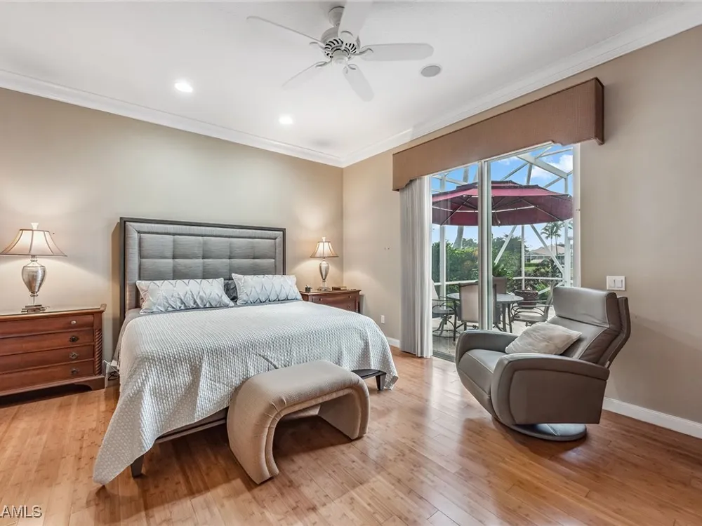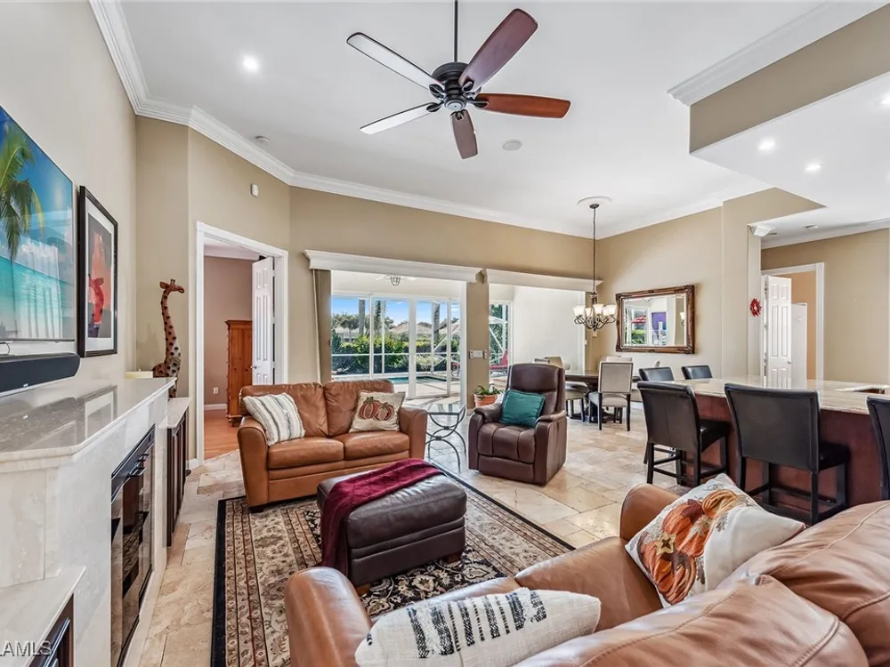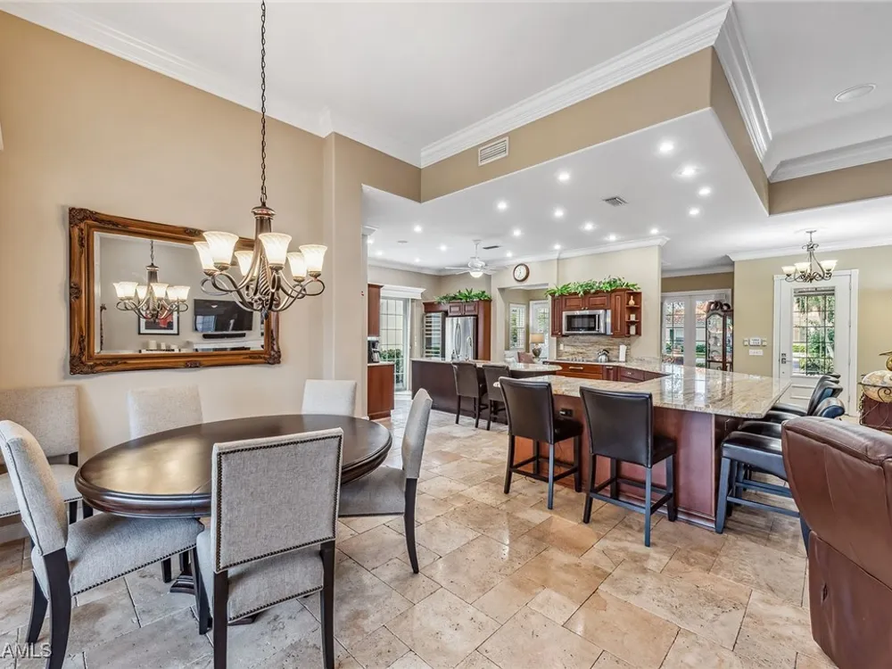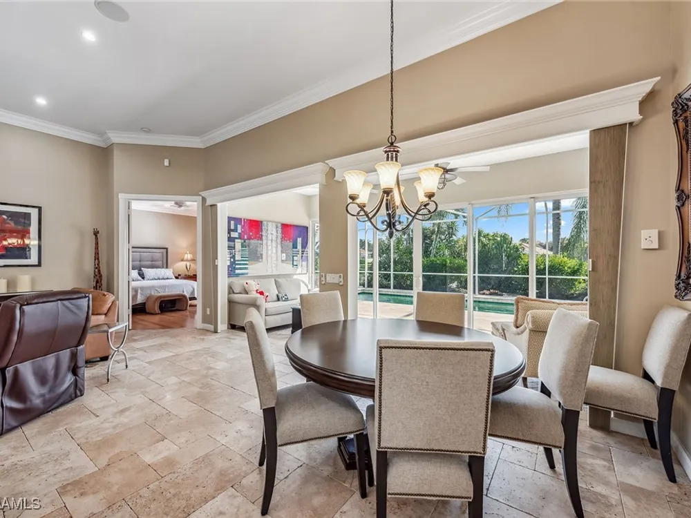 This home will make you the envy of all your neighbors with its extraordinary floor plan improvements and upgrades! Spacious and magnificent, this home strikes a tone. It’s one of a kind. Completely renovated Carlyle pool home features a custom, high-end chef's kitchen featuring self-closing cabinets, quality stainless steel appliances, large flat top granite countertops, large island and it lends itself to the ultimate modern, open floor plan. This home boasts custom, travertine stone flooring throughout and onto the lanai, and is nicely complemented by hardwood bamboo flooring in the flex room and primary bedroom. Crown molding, surround sound and custom cabinets finetune your place in the sun. Granite tops in all the baths, additional custom side-patio off the kitchen with awning. An extra wide driveway further serves your convenience as upgrade. New roof in 2019. New wall oven and new dishwasher in 2018. New refrigerator in 2019. New cooktop in 2019. New washer and dryer in 2021.