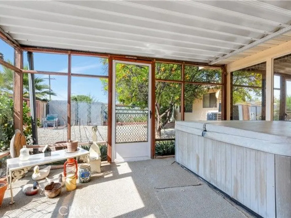 Quaint two bedroom, two bath home in the 55+ community of Sun City. This entry is into the living room. The master bedroom features an ensuite bathroom. There is an additional guest bath next to the guest room. The kitchen is located off of the living area. There is an unpermitted fully enclosed patio room that provides additional living space. The laundry room is off of the enclosed patio.