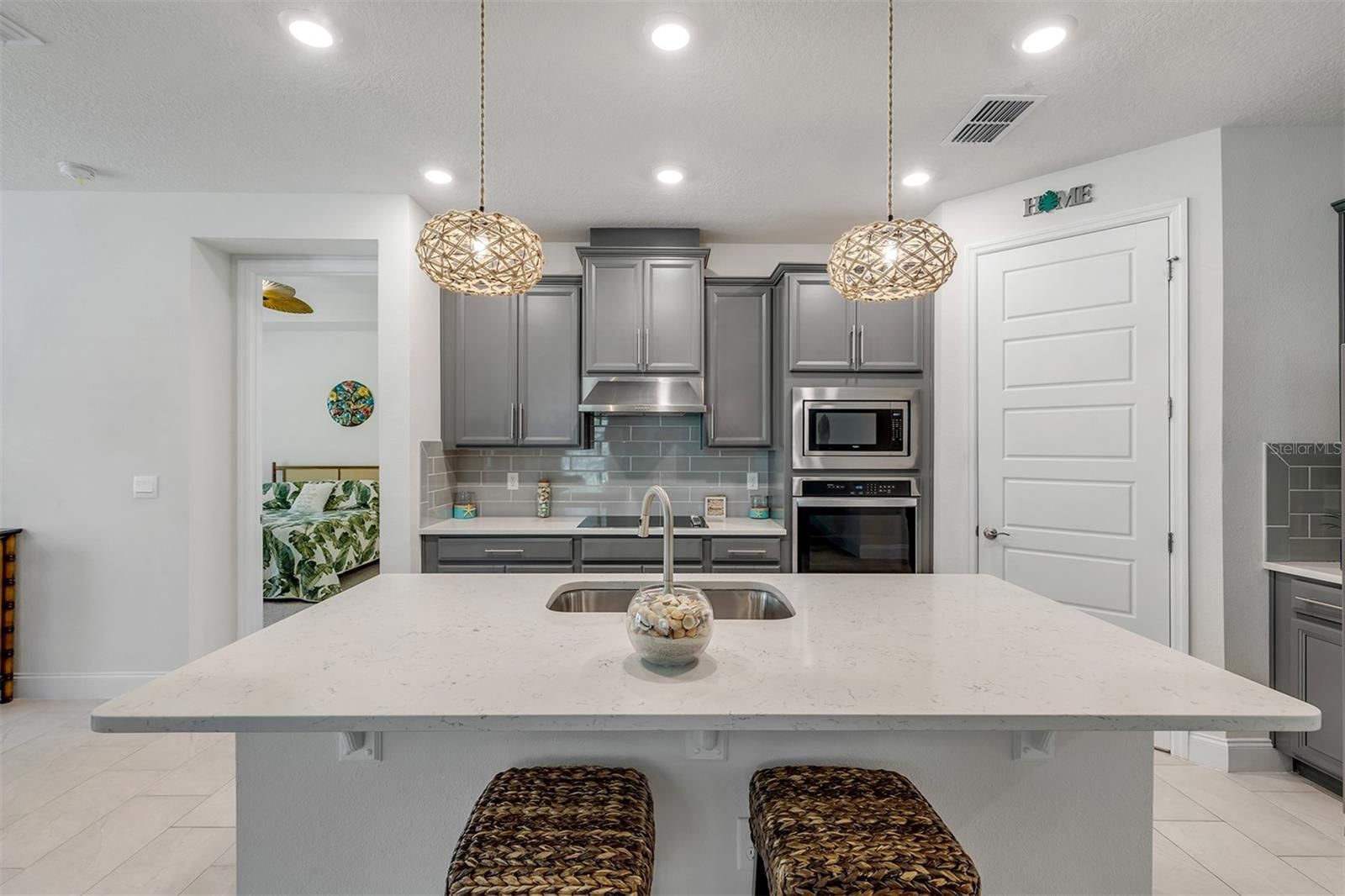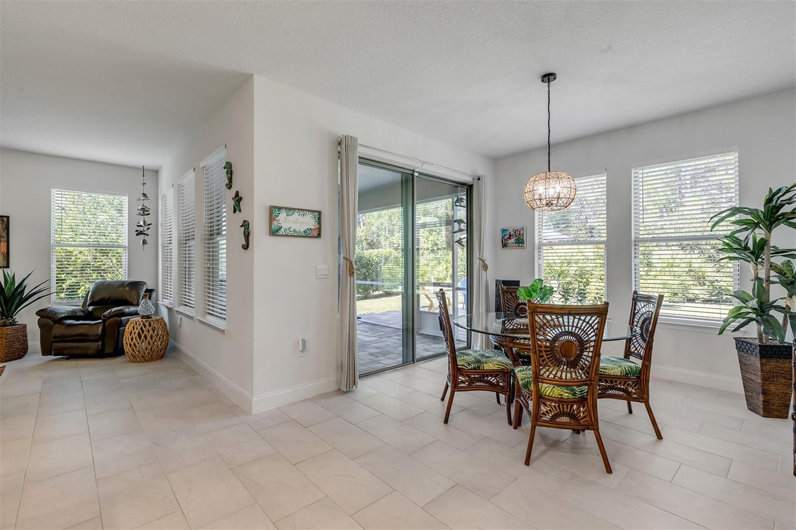 Experience modern elegance and resort-style living in this pristine 2022 concrete block home in Halifax Plantation! This 4-bedroom, 3-full-bath, 2-car garage home spans 2,115 sq ft of light-filled living space on a premium 75-foot-wide lot backing to protected lush vegetation, offering privacy and a serene backyard oasis. The open floorplan features 10-foot ceilings, curved archways, crown molding, 8-foot doors, and abundant natural light. The primary bedroom boasts tray ceilings, adding an elegant touch to your private retreat. The kitchen is a chef's dream, featuring quartz countertops, a large island, and a spacious pantry, flowing seamlessly into the family and dining areas — perfect for entertaining or everyday living. All major appliances (dishwasher, microwave, cooktop, stove, washer, dryer, and refrigerator) come with transferable protection plans, giving added peace of mind for busy households. Tile flooring flows through all main living areas, while bedrooms are carpeted for comfort. Bathrooms feature upgraded vanities, fixtures, and tile finishes. A dedicated laundry room with a window provides a pleasant view of the outdoors while keeping household tasks convenient and organized. The 2-car garage includes a shark-coated floor. Outdoor living shines with a brick-paved screened lanai, extended patio, and front porch, surrounded by tropical landscaping, privacy hedges, and upgraded irrigation. Additional features include gutters, curbing, a total home termite protection, and a whole home water filtration system. Halifax Plantation offers an unmatched lifestyle with an 18-hole championship golf course, 25,000-square-foot clubhouse, on-site pub and restaurant, fitness center, junior-Olympic swimming pool, clay tennis courts, and miles of walking and biking trails. Residents enjoy golf and sports memberships, vibrant social events, and a strong sense of community. Located just minutes from beaches, state parks, and I-95, this move-in ready home combines modern elegance, functional upgrades, and resort-style amenities perfect for families, entertainers, or anyone seeking a private sanctuary in Ormond Beach. Shown by appointment only.