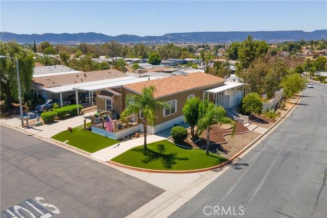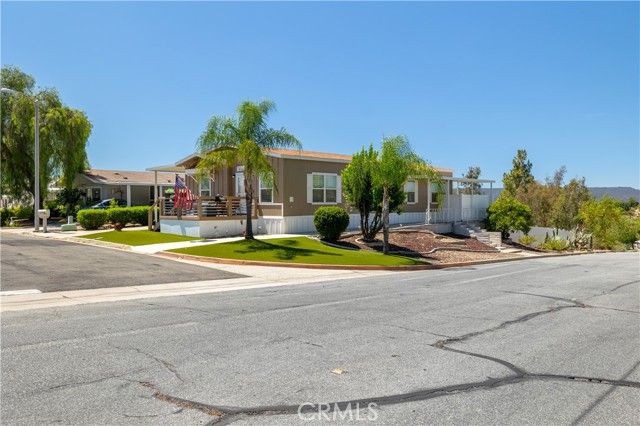 VERY MOTIVATED SELLER IS OFFERING $10,000 INCENTIVE USE FOR YOUR CLOSING COSTS OR TO BUY YOUR RATE DOWN!! DON’T MISS YOUR CHANCE TO OWN THIS NEWER UPGRADED HOME BUILT IN 2015 AND THIS ONE YOU OWN THE LAND!! (NO RENTING A SPACE HERE!!!) IN THE CHARMING 55+ KNOLLS COMMUNITY LOCATED IN MURRIETA. Located in the desirable 55+ community of Spring Knolls in Murrieta, this beautifully maintained manufactured home sits on a spacious corner lot and offers 3 bedrooms, 2 bathrooms, and an inviting open floor plan. Built in 2015, this newer built home features fire sprinklers in the ceiling, newer flooring, granite countertops, stainless steel appliances, a water filtration system and window shutters throughout. The spacious primary suite includes a walk-in closet and a linen closet for extra storage. The other 2 bedrooms are also well sized. The laundry area is conveniently located off the kitchen and includes a storage closet. Fire sprinklers are throughout. There is also a side door here with a ramp to the fenced side yard and a golf cart path on the side to bring your cart behind the fence. Enjoy the outdoors with a lovely front porch, low-maintenance artificial turf, 3 fruit trees(naval oranges, lemon and red plum, vinyl fencing, and an extra large shed. Covered carport and low HOA dues complete this move-in-ready gem! There is no space rent here so call for your private showing today!