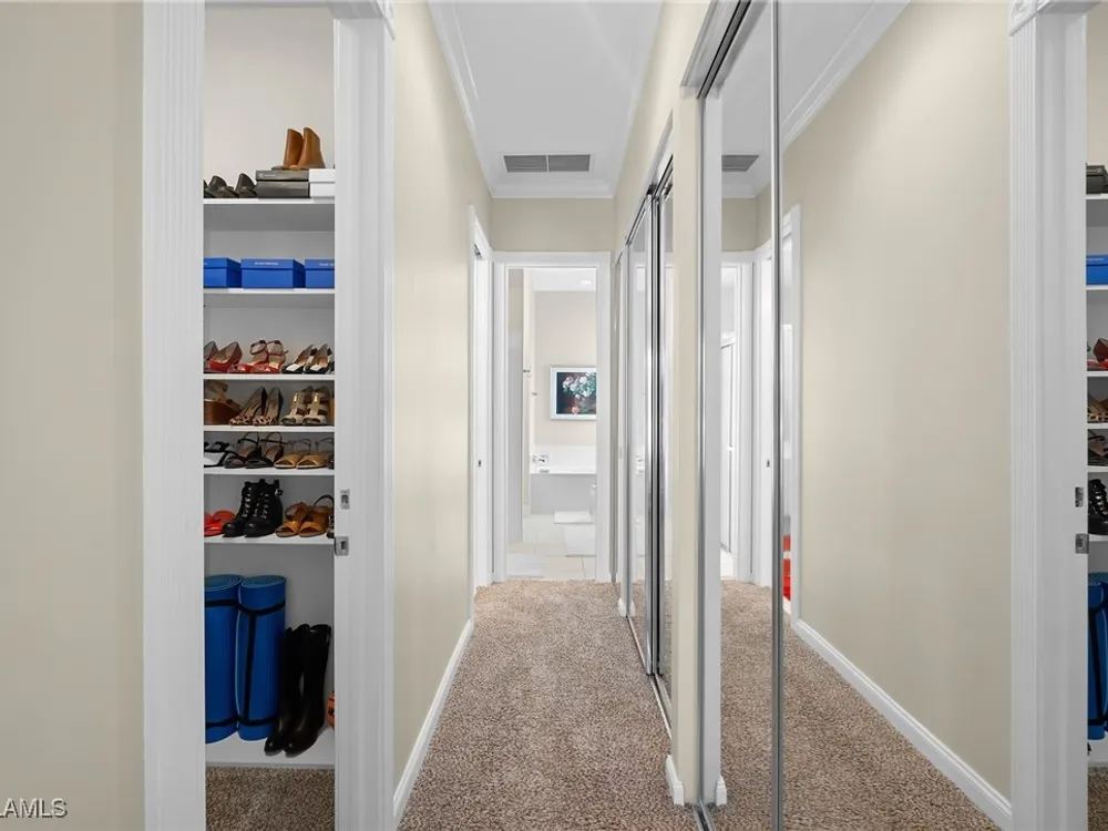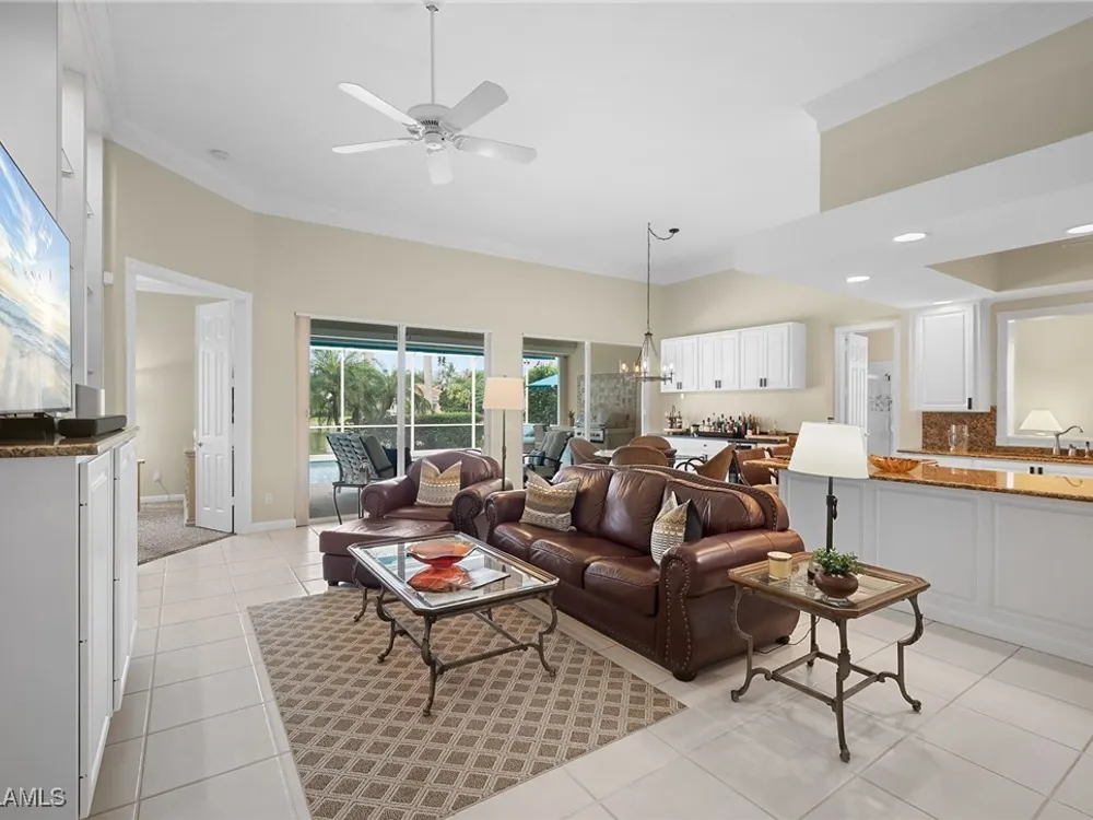 Welcome Home to the elegance, beauty and warmth of your turnkey home at 2888 Hatteras Way! This beautiful 4 bedroom/3.5 bath Carlyle model, nestled in the vibrant and active community of Island Walk, exudes elegance and Florida charm. Step inside the sophisticated living room with floor to ceiling windows with custom millwork and plantation shutters. The warm wood tones of the flooring is both inviting and functional. The large dining room is perfect for family gatherings. Make way to the great room and kitchen, with an informal eating area and service buffet with wine fridge and wonderful additional cabinet storage. The kitchen has been updated with granite countertops and new stainless steel appliances. Wraparound L-shaped island allows for ample breakfast bar seating. Sit back and relax in the family room that has a beautiful floor to ceiling entertainment center. An updated lanai and pool(2018) is a true showstopper! With glass surround tile, LED pool lights, sunshelf and hot tub, you will never want to leave this oasis! The large lanai has a built in grill and mini fridge, perfect for relaxing or entertaining family and friends and watching the big game! There is also a retractable awning for shade on those sunny days. West facing, the lanai is the perfect place to enjoy the beautiful Florida sunsets. Head through the double doors that lead to the master bedroom with newer carpeting and a slider for private access to the spectacular pool and lanai. Two spacious closets with custom built ins allow you to display all your purses and shoes! The bathroom is ingenious layout with his and her vanity sections as well as separate makeup vanity section and dual entry shower. The right wing of the home houses an additional full bath with updated custom tiled frameless glass shower door and hand held shower attachment. The left wing of the home accesses the additional 2 bedrooms and a third full bathroom. The laundry room has a laundry tub, newer washer and dryer, clothes rack and plenty of cabinet storage. From the laundry room, walk into the garage that has new epoxy flooring. Island Walk is one of the most walkable and amenity rich communities in North Naples, you will never want to leave! Fully renovated clubhouse, fitness center, community pool and lap pool, tennis, pickle ball, bocce, gas station, salon, post office putting greens, and the newly updated Casa Cotzelli Italian restaurant, Island Walk is resort living at your finger tips! The community offers convenience and security peace of mind with a 24 hour manned gate and on site management. Island Walk is minutes from the beautiful gulf beaches of Southwest Florida, highway access, Mercato, shopping and award winning restaurants. 2888 Hatteras is turnkey! Just unpack your bags and begin to live the good life! Welcome HOME!!
