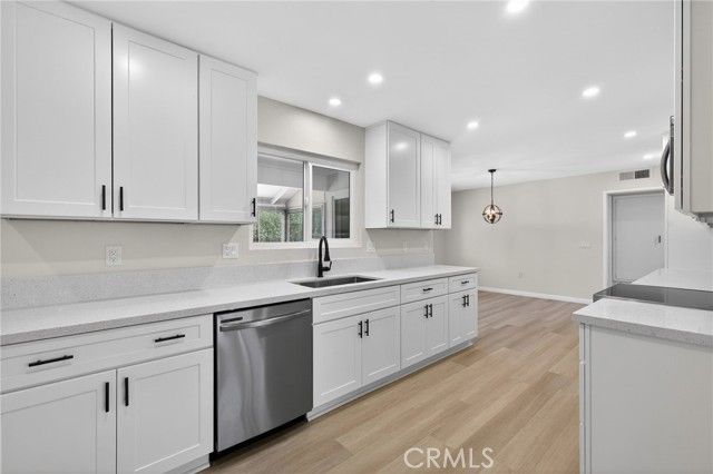 Can be financed with VA or Conventional now. FHA Offers After April 23rd, . Freshly updated 55+ home in the Sun City community of Menifee. With 1,348 square feet, you need to check out the floor plan and 3d tour of the home. With an extravagantly updated open floor plan, you are greeted with a beautiful large open living room, and just around the corner new counter tops, new stainless steel appliances anchoring the open space, with formal living, dining and breakfast nook. Both bathrooms have just been updated with floor to ceiling tile complete with glass enclosures, detailed with new finishes, A large private patio in the backyard offers one more space to enjoy your home and additional side of home parking. mature hedge at rear of the property for privacy. Low maintenance rock landscape, One other great feature of this home in the fully enclosed single car garage and a private large laundry.