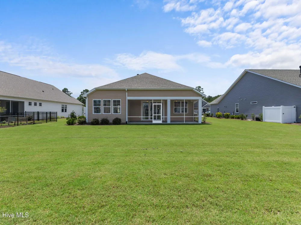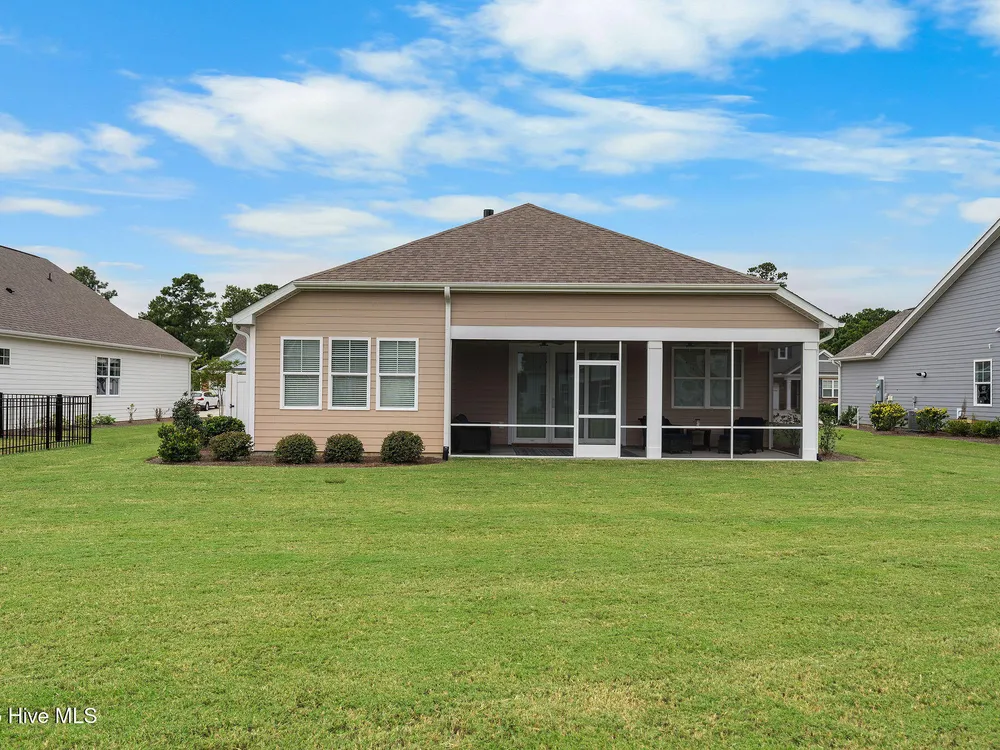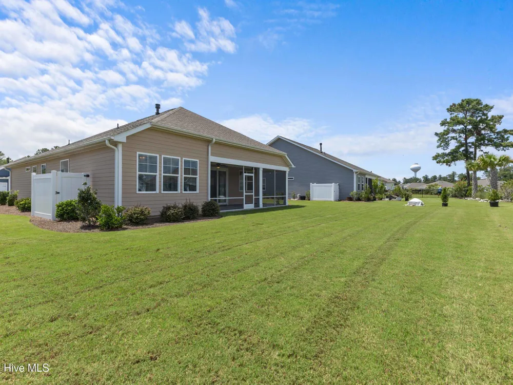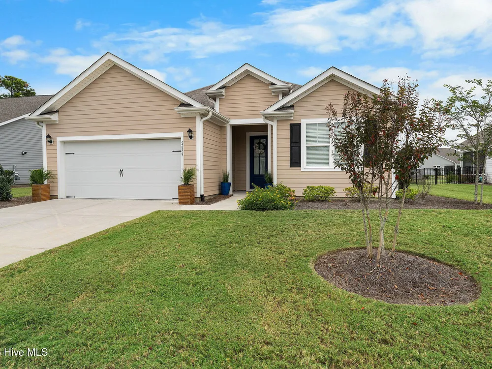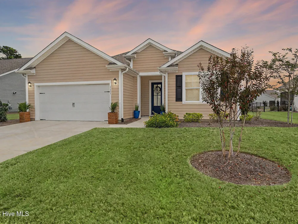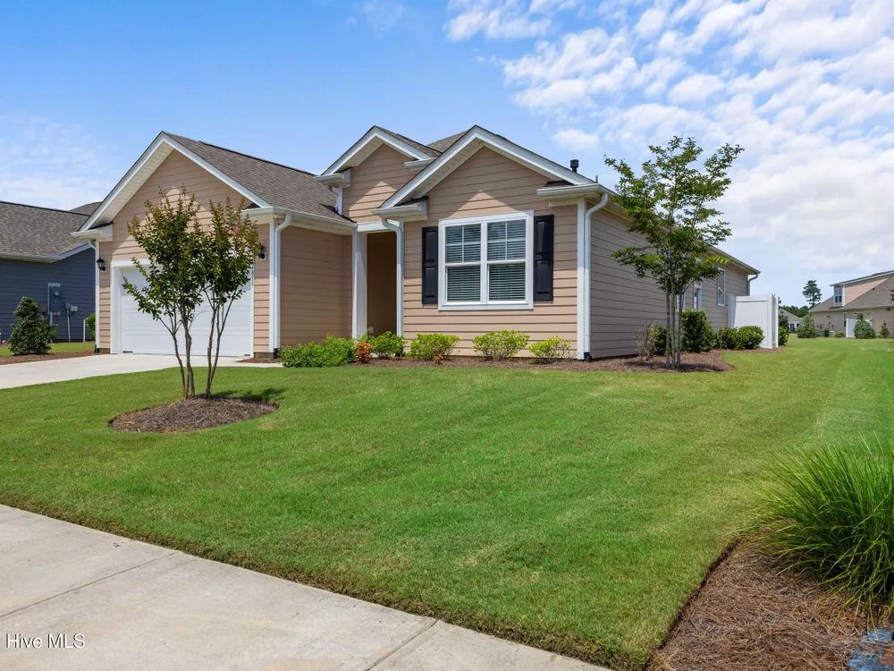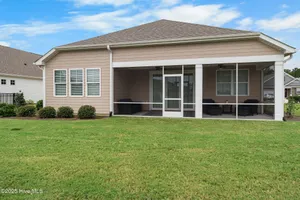 Located in the sought-after Heron Pointe neighborhood of Brunswick Forest--where lawn care is included in the HOA--this 3-bedroom, 2-bathroom home offers 1,764 square feet of thoughtfully designed living space. The open-concept layout features soaring ceilings in the main living area, custom built-ins surround a cozy gas fireplace, and a spacious kitchen with an oversized island, expansive countertops, gas range, pantry, and recessed lighting--ideal for both entertaining and everyday living.The primary suite includes a tray ceiling with ceiling fan, a walk-in closet with custom organizer, and a beautifully appointed en suite with a soaking tub and a walk-in shower with tile surround and framed glass enclosure. Blinds are installed throughout for added privacy, while the front secondary bedroom offers a vaulted ceiling and custom window shade. The other secondary bedroom--perfect as a home office--features a direct fiber internet line for high-speed connectivity.Additional highlights include a dedicated drop zone, separate laundry room, tankless water heater, and a large screened porch with two ceiling fans for year-round outdoor living. Enjoy a low-maintenance lifestyle in a vibrant community just minutes from downtown Wilmington and area beaches. Brunswick Forest offers unmatched amenities including fitness centers, indoor and outdoor pools, golf, pickleball, kayak launch, walking and biking trails, and active social hubs--delivering an exceptional coastal lifestyle.