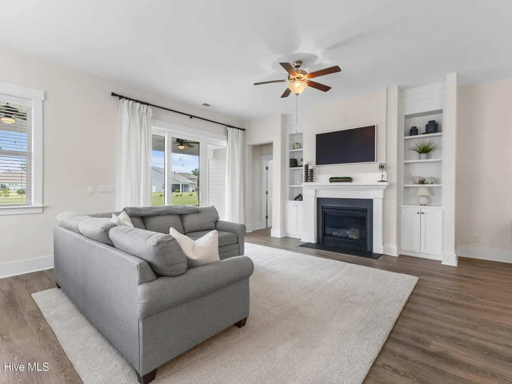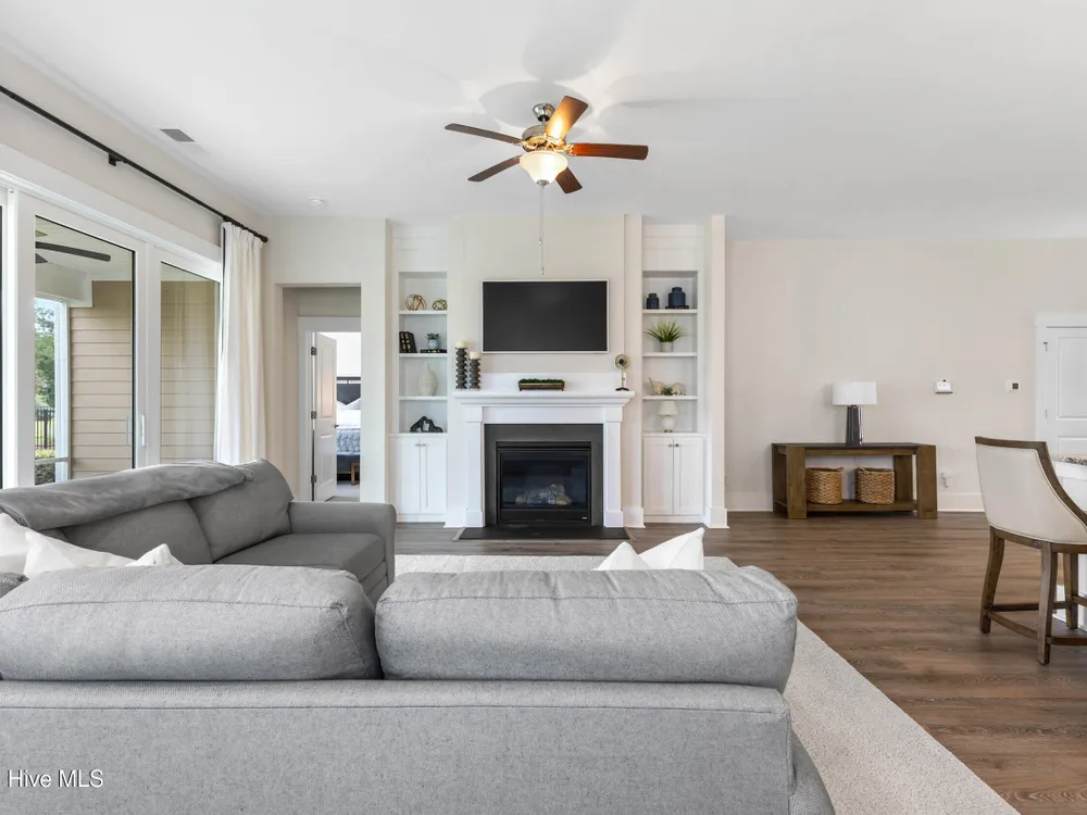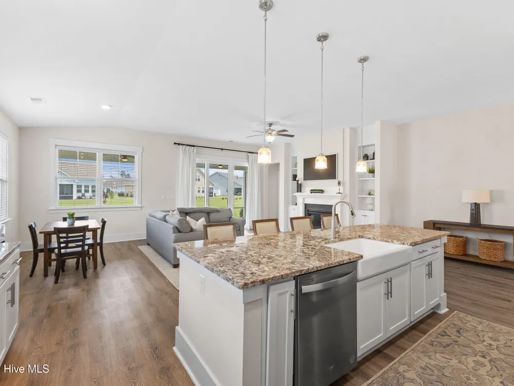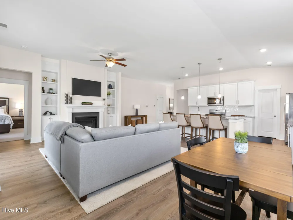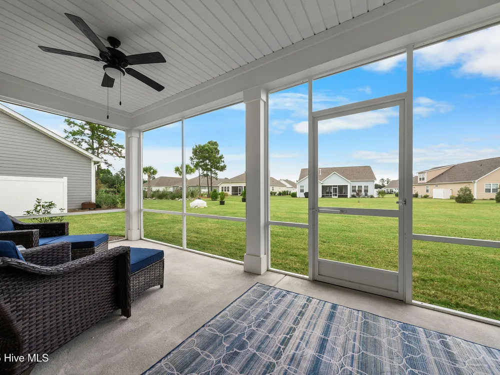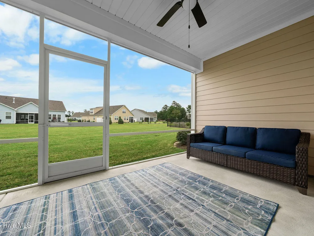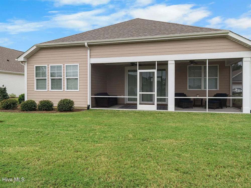 Located in the sought-after Heron Pointe neighborhood of Brunswick Forest--where lawn care is included in the HOA--this 3-bedroom, 2-bathroom home offers 1,764 square feet of thoughtfully designed living space. The open-concept layout features soaring ceilings in the main living area, custom built-ins surround a cozy gas fireplace, and a spacious kitchen with an oversized island, expansive countertops, gas range, pantry, and recessed lighting--ideal for both entertaining and everyday living.The primary suite includes a tray ceiling with ceiling fan, a walk-in closet with custom organizer, and a beautifully appointed en suite with a soaking tub and a walk-in shower with tile surround and framed glass enclosure. Blinds are installed throughout for added privacy, while the front secondary bedroom offers a vaulted ceiling and custom window shade. The other secondary bedroom--perfect as a home office--features a direct fiber internet line for high-speed connectivity.Additional highlights include a dedicated drop zone, separate laundry room, tankless water heater, and a large screened porch with two ceiling fans for year-round outdoor living. Enjoy a low-maintenance lifestyle in a vibrant community just minutes from downtown Wilmington and area beaches. Brunswick Forest offers unmatched amenities including fitness centers, indoor and outdoor pools, golf, pickleball, kayak launch, walking and biking trails, and active social hubs--delivering an exceptional coastal lifestyle.