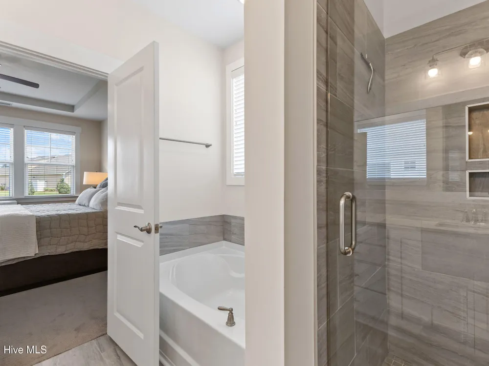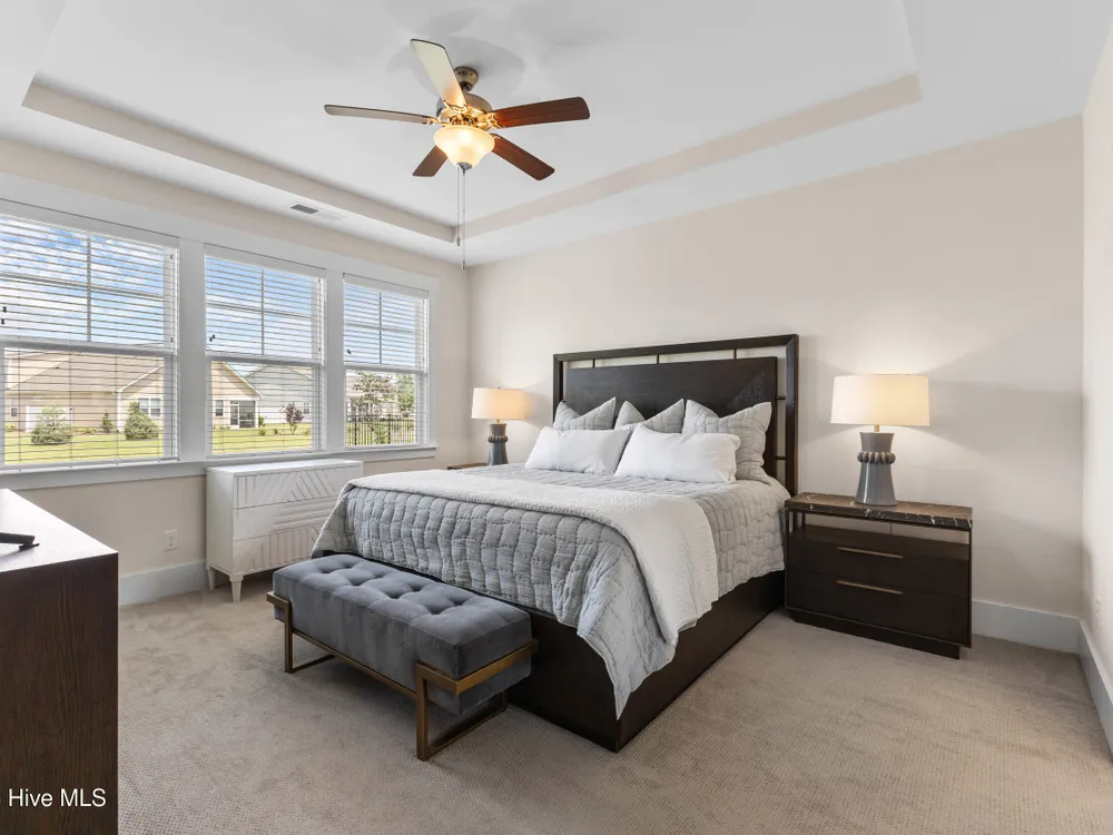 - Blinds/Shades, Tray Ceiling(s), Walk-in Shower, Vaulted Ceiling(s), Gas Log, Pantry, Kitchen Island, High Ceilings, Ceiling Fan(s)