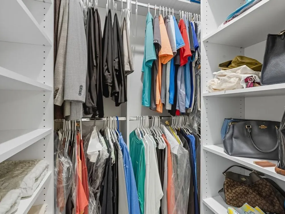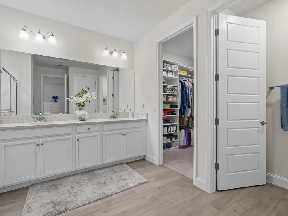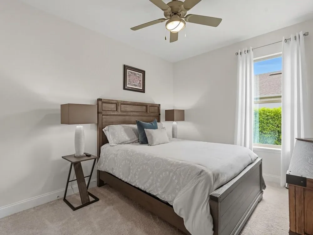 - Open Floorplan, Main Level Primary, Solid Surface Counters, Solid-Wood Cabinets, Split Bedrooms, Stone Counters, Thermostat, Walk-In Closet(s), Window Treatments