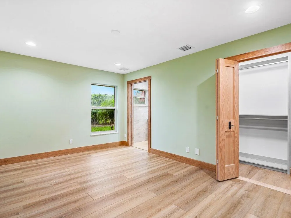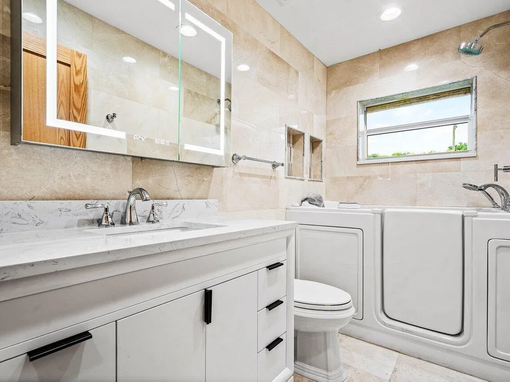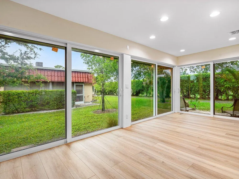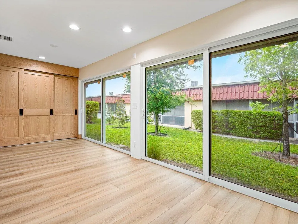 Step into a Completely New Living Experience! This fully redone 2-bed, 2-bath home feels like a brand-new build from top to bottom because it is. Every inch of this residence has been touched - paid new roof (2023), taken down to the concrete and built back, a redesigned open-concept floorplan. Enjoy the sleek look and feel of the flooring, modern LED lighting, custom woodwork throughout and a kitchen that's never been used, stainless steel appliances, contemporary countertops, and generous cabinet space. Both bedrooms are fresh, bright, and the bathrooms feel straight out of a design magazine with a Jacuzzi tub/shower combo. Enjoy an additional permit permitted 168 square feet of newly enclosed patio space. Truly everything is new - just bring your toothbrush!