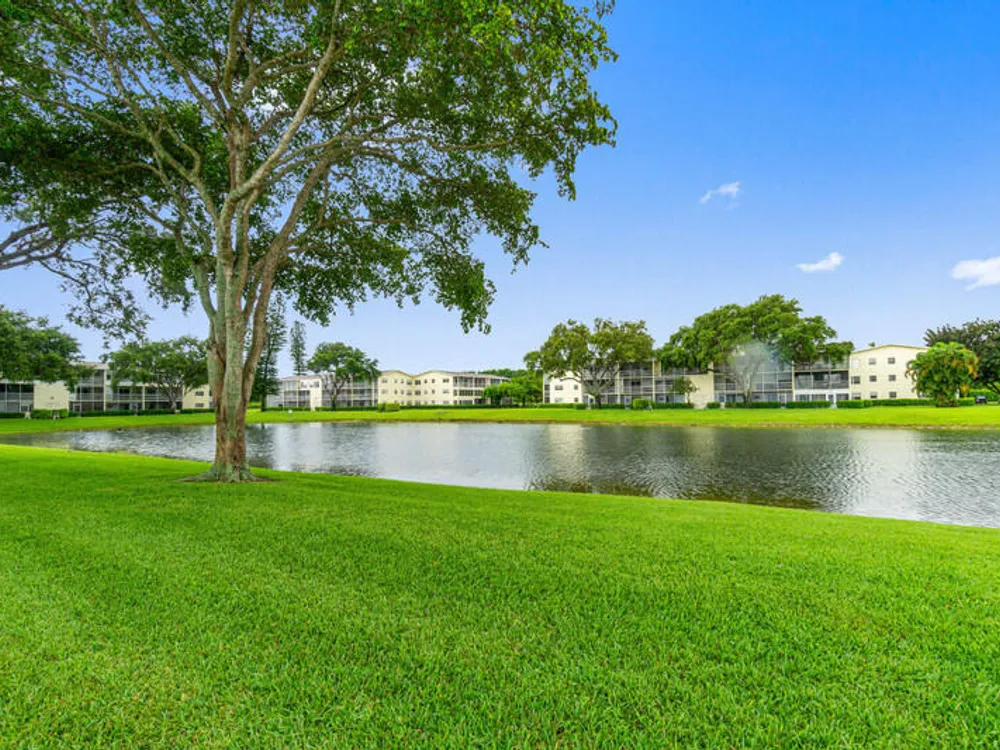Move-in ready 1 bedroom, 1.5 bath 3rd floor apartment just steps from the elevator and laundry room in beautiful Dorset at Century Village. This unit features neutral ceramic tiling throughout the living area, an updated kitchen with granite countertops, recessed lighting, and stainless steel appliances, an updated guest bathroom, and a lovely view of the lake from the living room. Spacious screened in patio in back. Unit is clean and ready for a new owner. Century Village is a premier 55+ community with 24/7 security, a state of the art clubhouse, multiple pools, tennis, pickleball, a theater, library, arts and crafts rooms, a fitness center, and so much more.